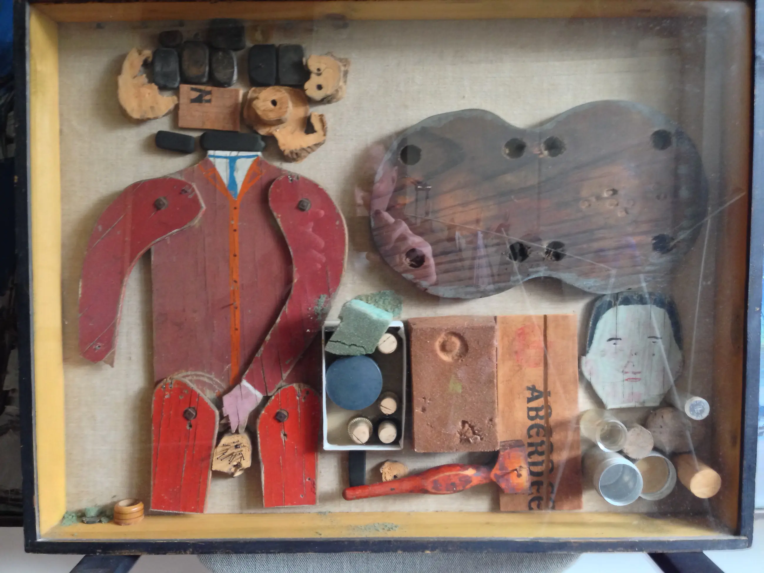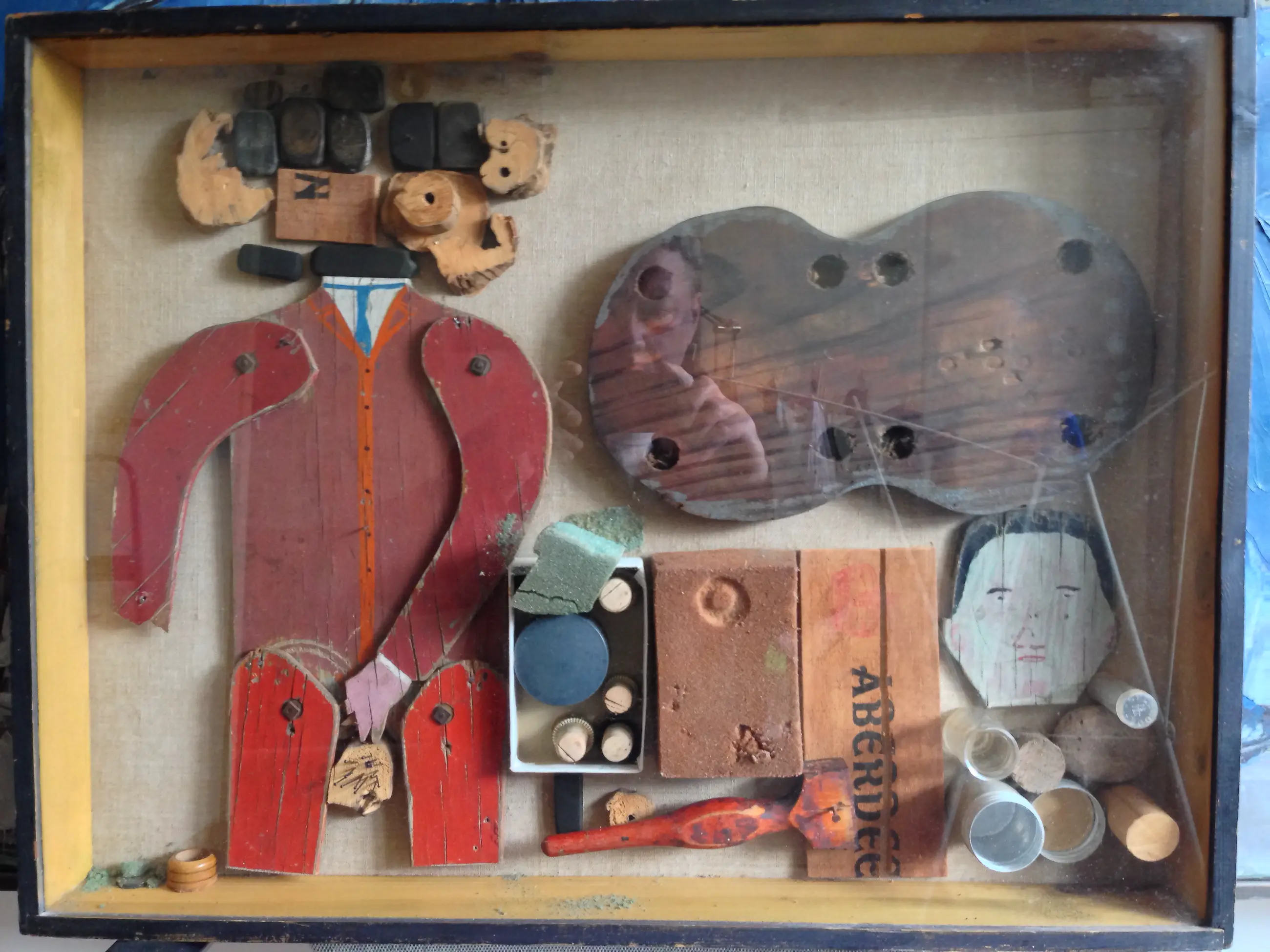 Door veroudering is een PU-schuim deel losgelaten en ligt onderin de vitrine. Het werk kan origineel gehouden worden als een teken van de tijd, of het behoeft restauratie.