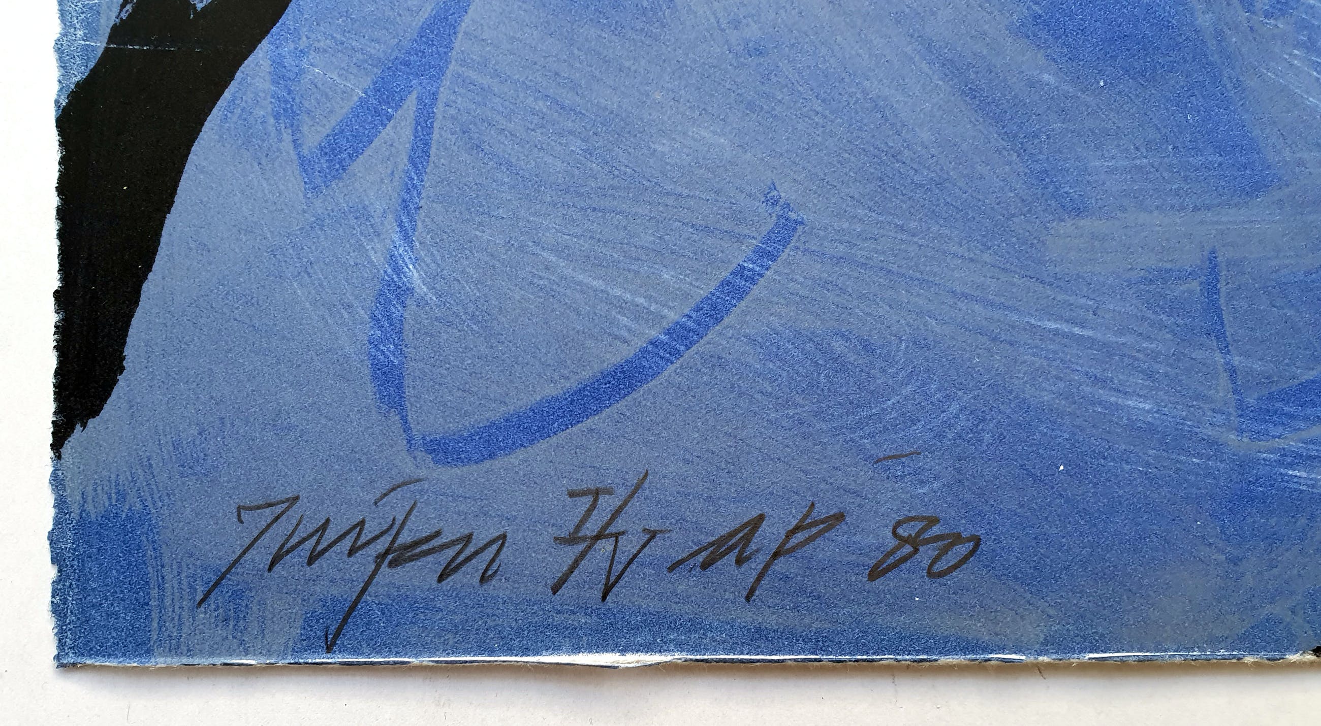 Fraaie kleurenlitho van Jurjen de Haan uit 1980. Het werk is linksonder met de hand gesigneerd door de kunstenaar.
