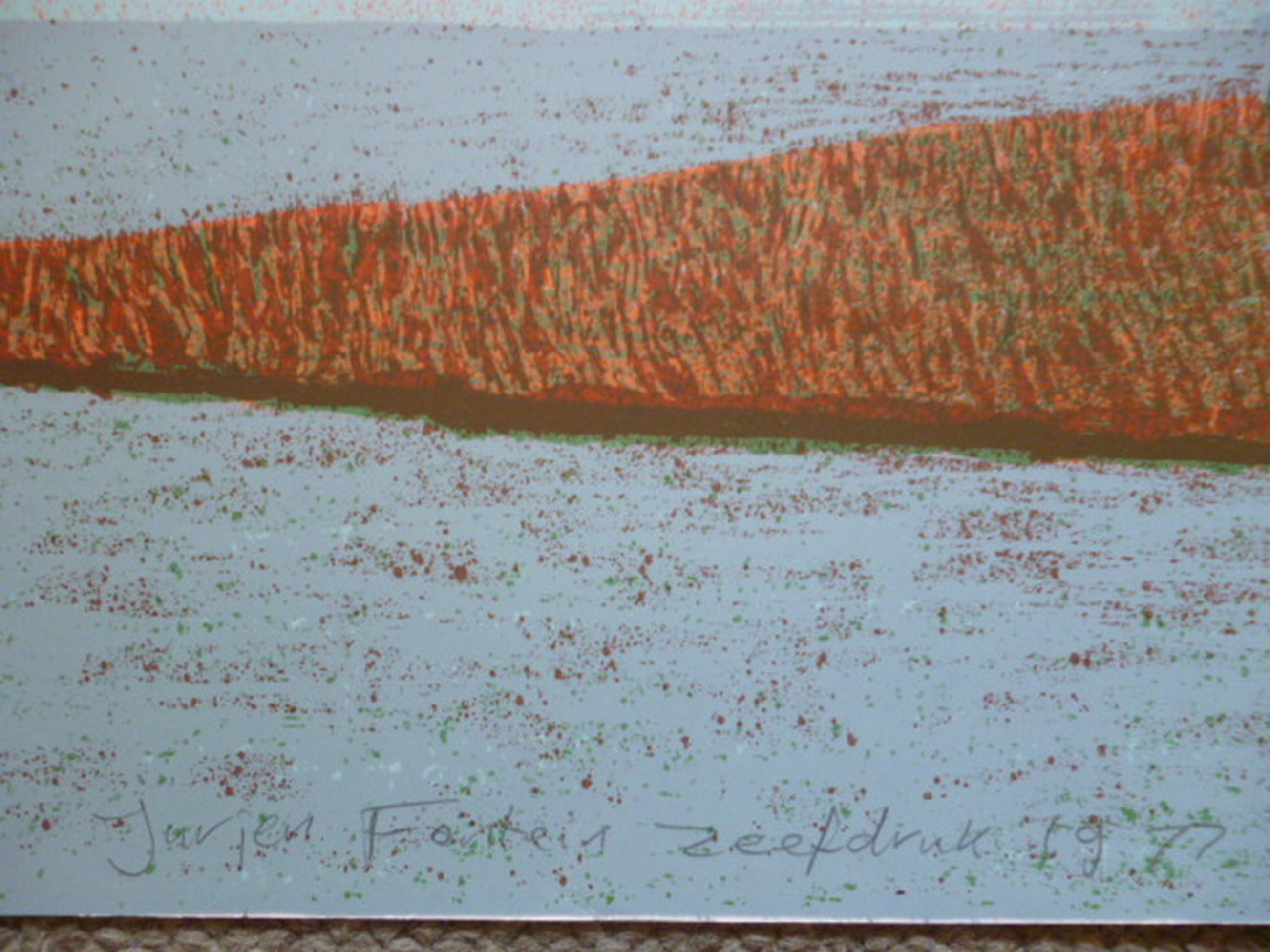 Kleurenzeefdruk uit 1977. Potlood gesigneerd en gedateerd linksonder.