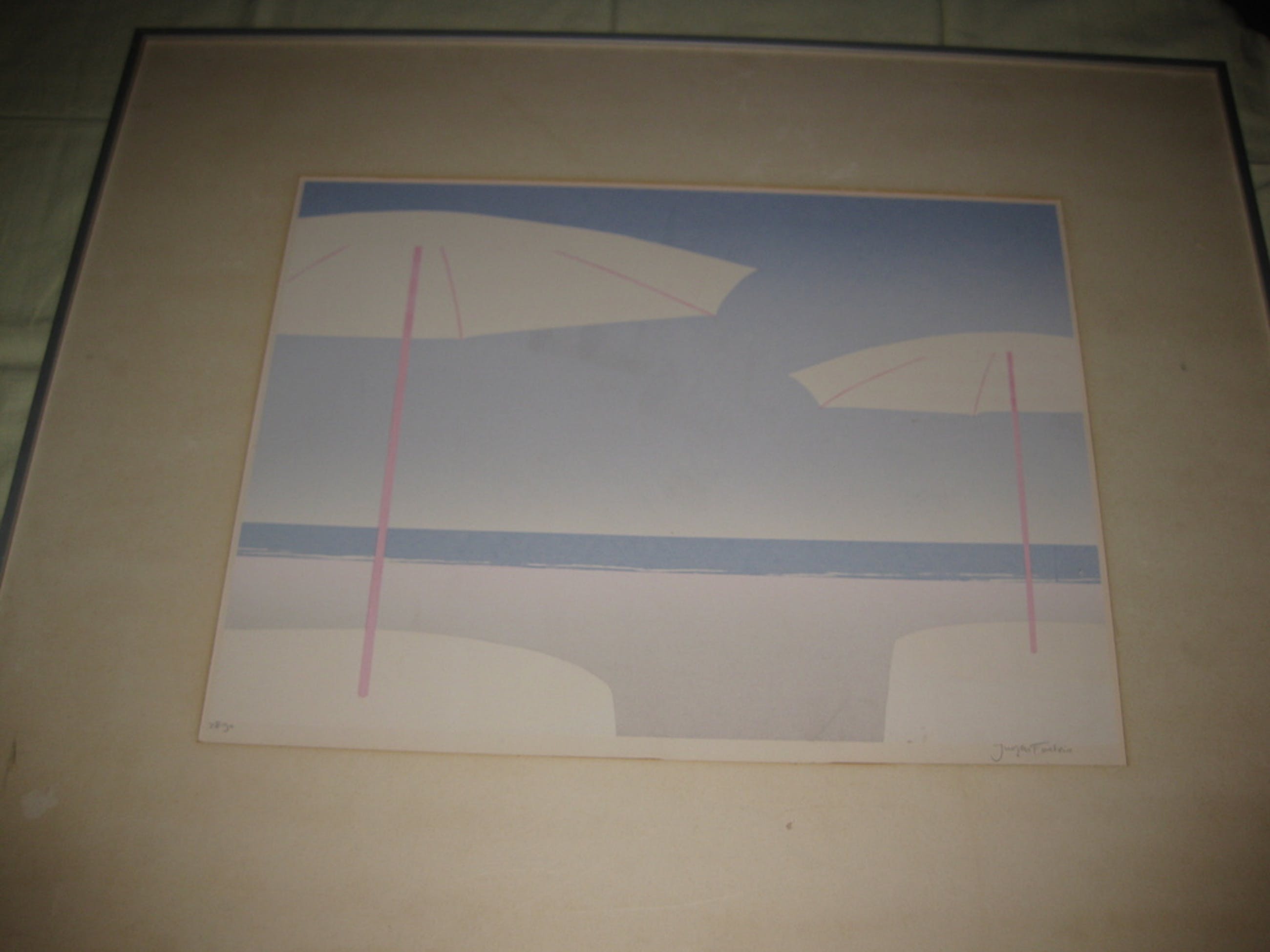 Voor schilderijen en ander ingelijst werk geldt het volgende: bij verzending kan ik geen garanties geven op het heel overkomen van het glas van een lijst, wel zal ik mijn uiterste best doen het werk zo goed mogeljik te verpakken. Kleine gebreken aan de lijst in de vorm van stootplekjes en krassen vermeld ik niet.