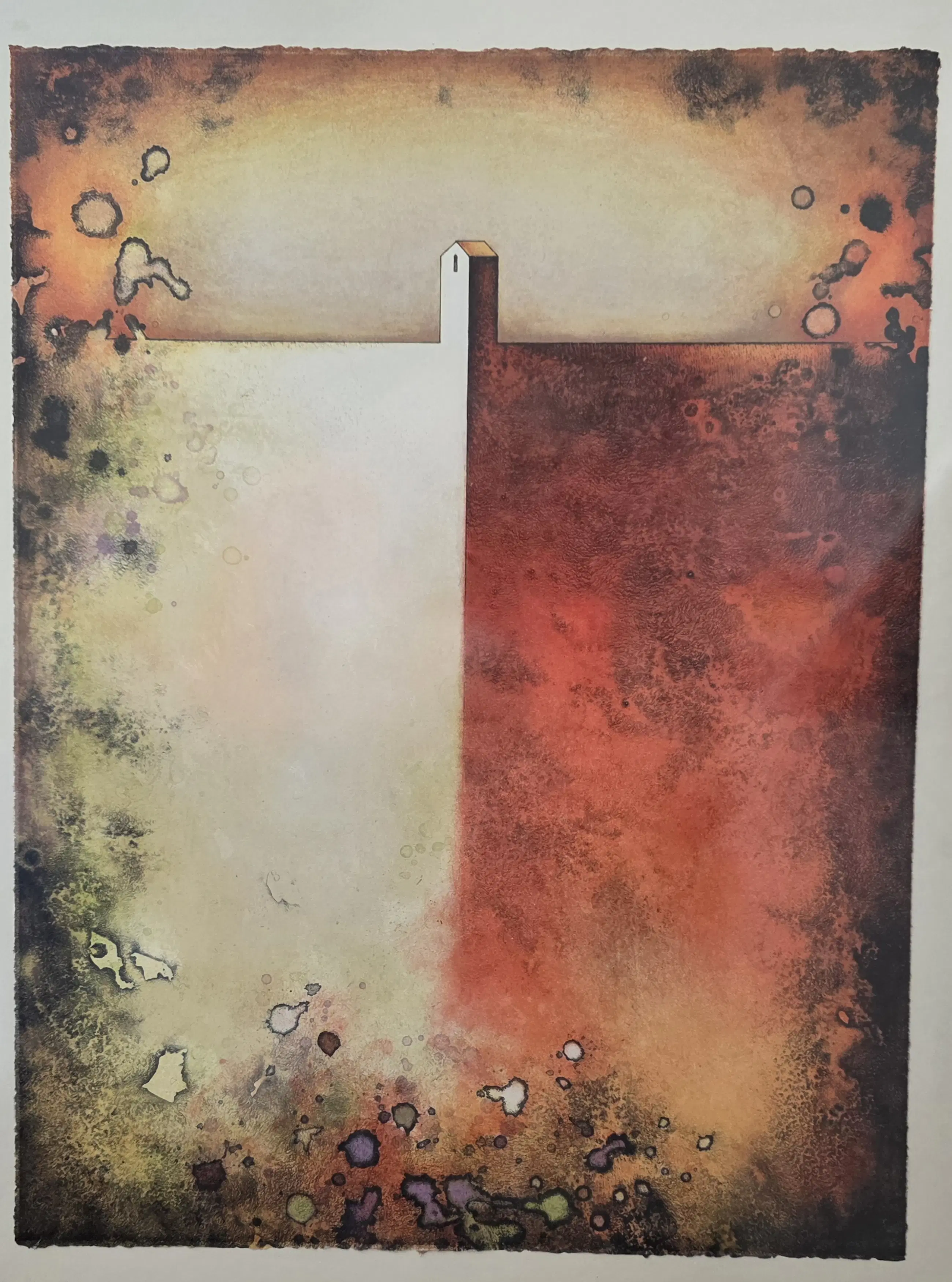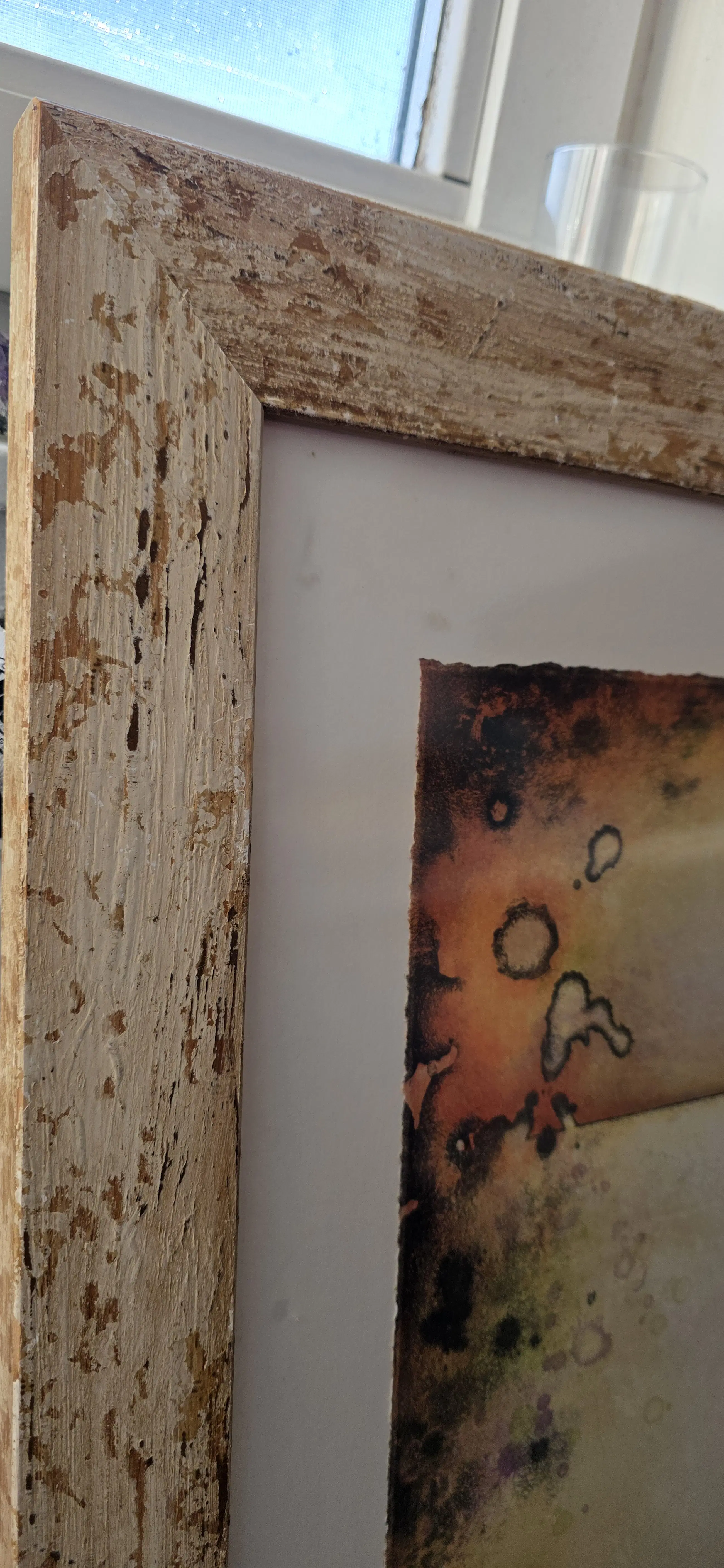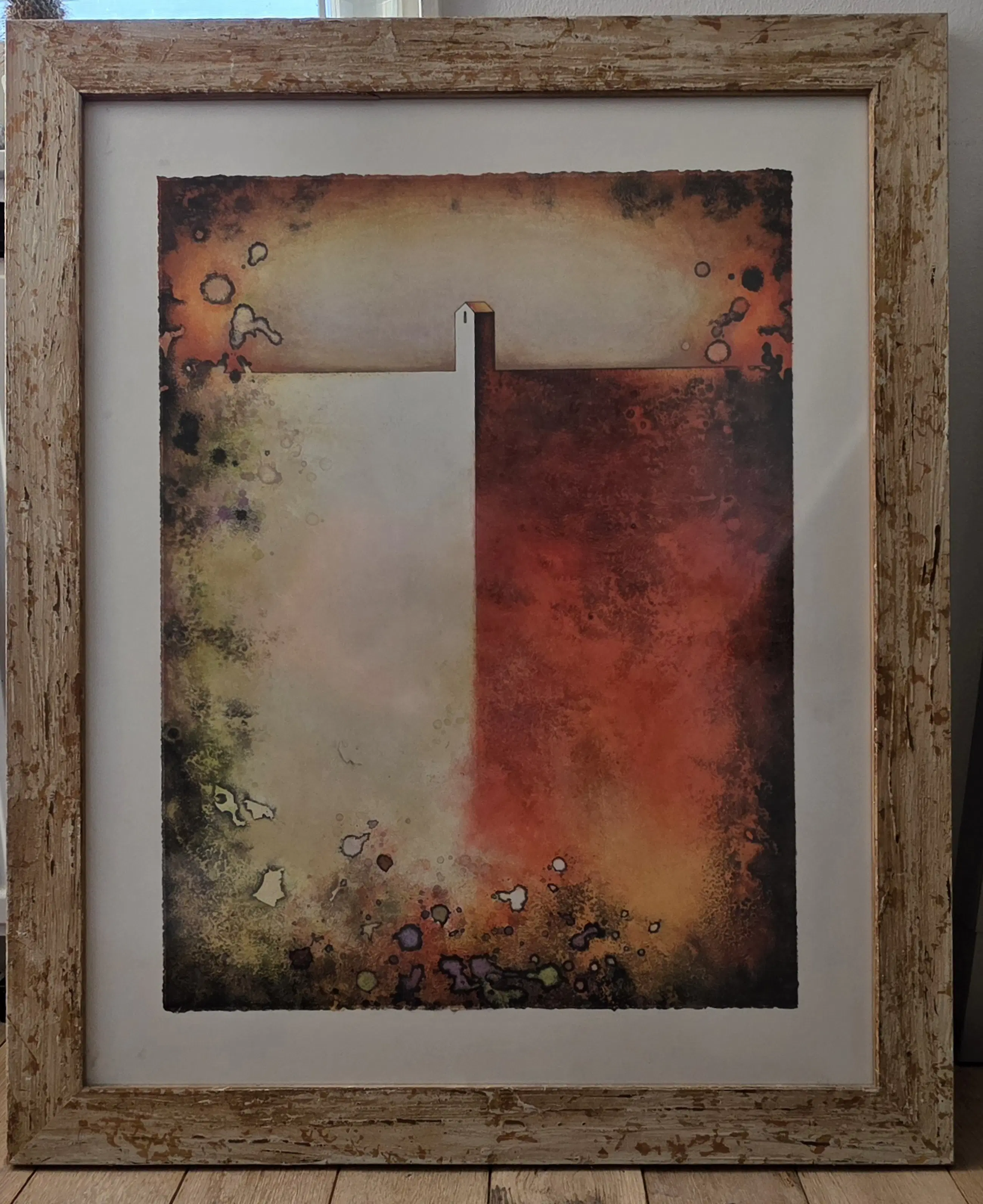 Heeft maar kort gehangen en na de scheiding altijd in doek gewikkeld in een kast gestaan.