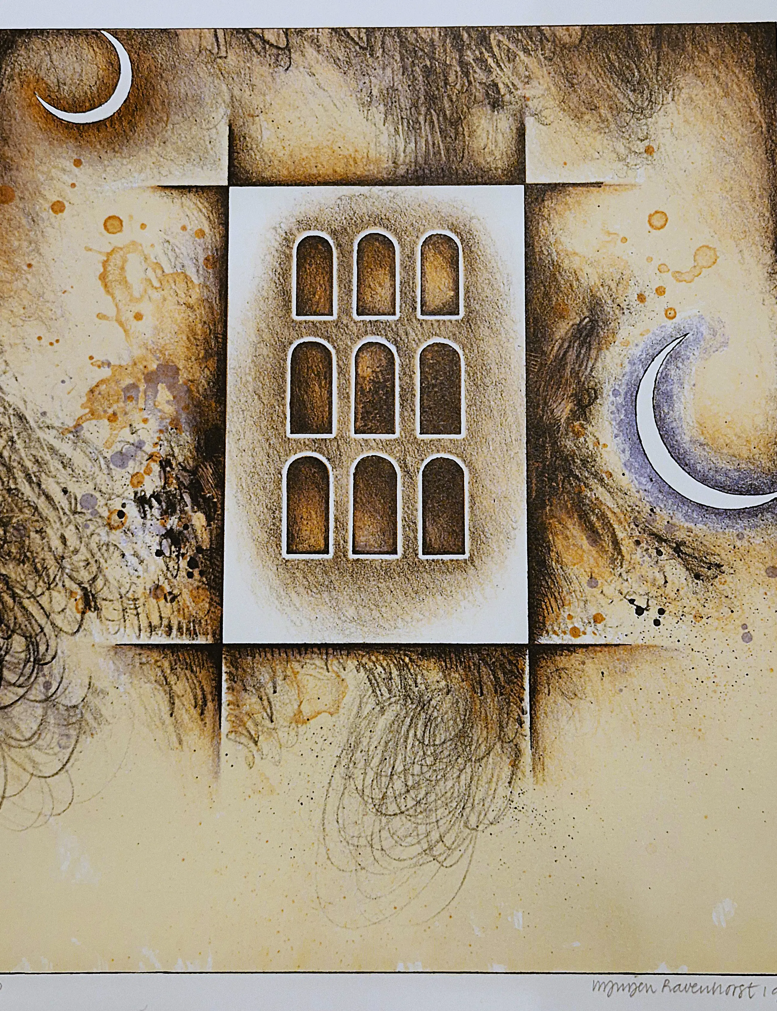 De laatste twee jaar worden deze vormen abstracter. De vele manieren waarop en materialen waarmee je op een lithosteen kunt werken bieden een eindeloos scala aan mogelijkheden en nodigen uit tot het scheppen van een wereld van abstracte objecten, rasters en patronen.