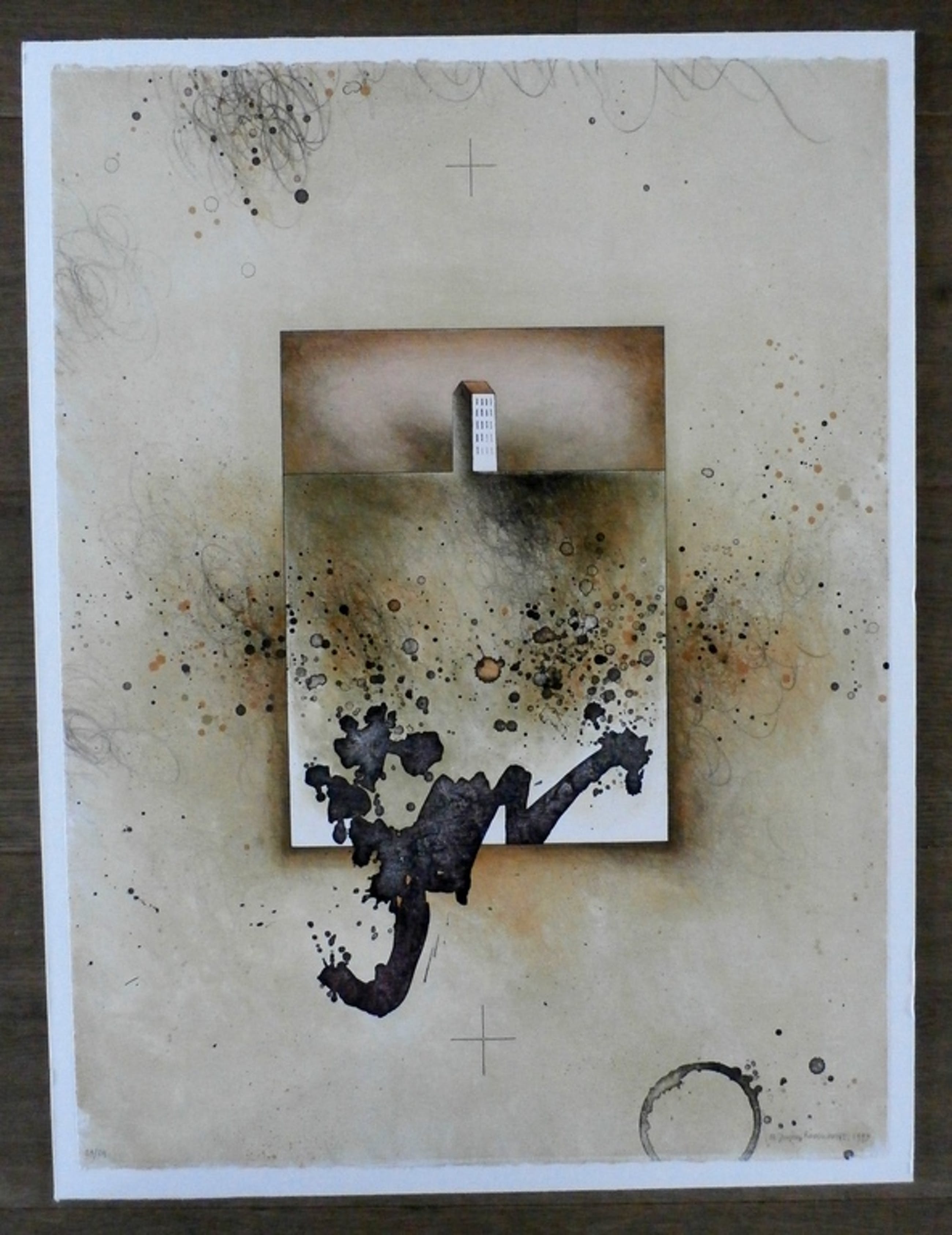 Litho van Jurjen Ravenhorst uit 1993. Nummer: 24/24. Afmetingen werk: H66 x b50 cm. Afmetingen incl. kartonnen blad: H69,5 x b53,5 cm. Het werk is rechtsonder gesigneerd door de kunstenaar. De authenciteit van het, aangeboden, werk wordt voor 100% gegarandeerd. Een certificaat van echtheid kan, op aanvraag, worden meegestuurd. Herkomst: collectie ABN AMRO.