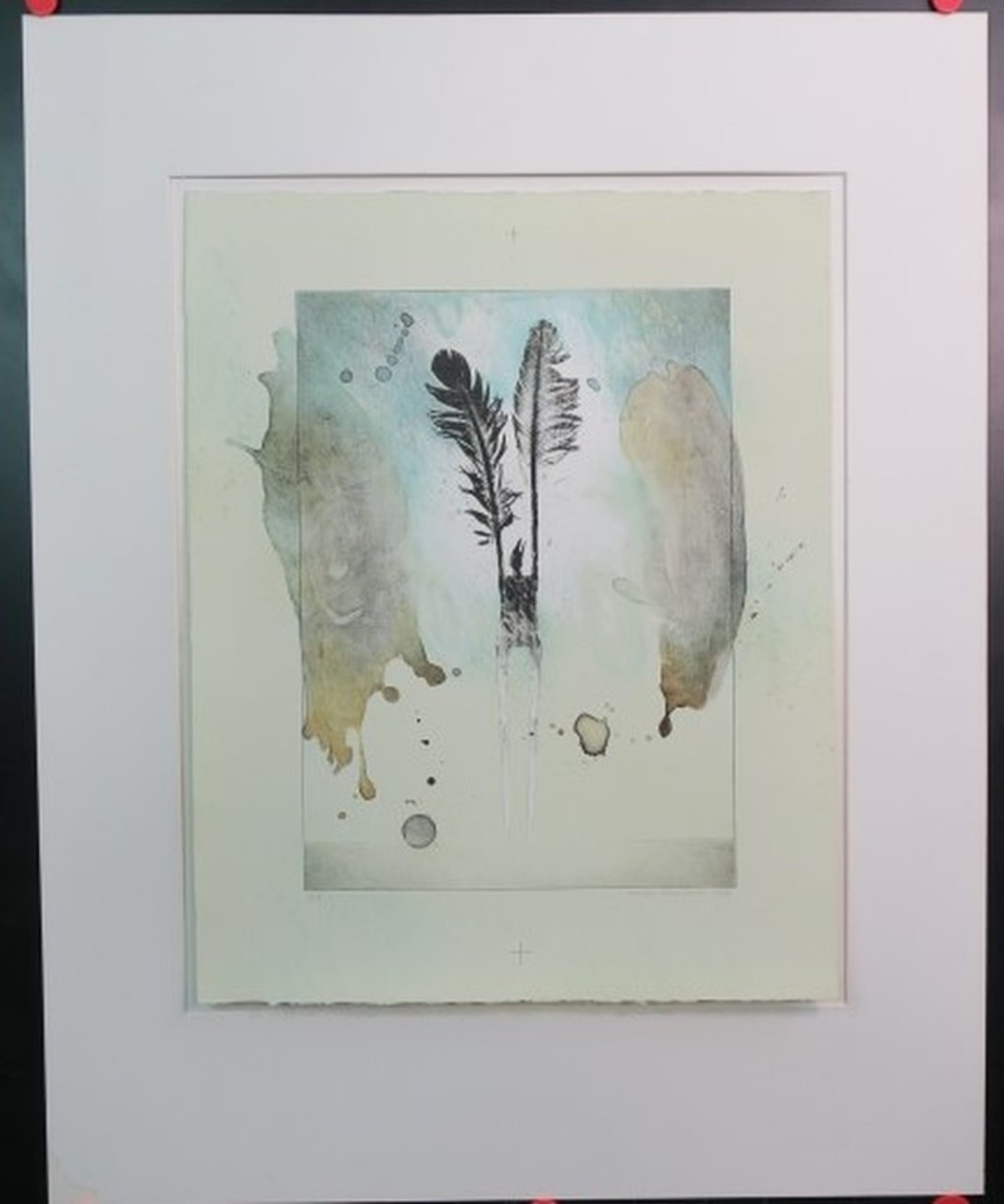 Bij het fotograferen van werken op papier worden magneten gebruikt die op de foto zichtbaar kunnen zijn.