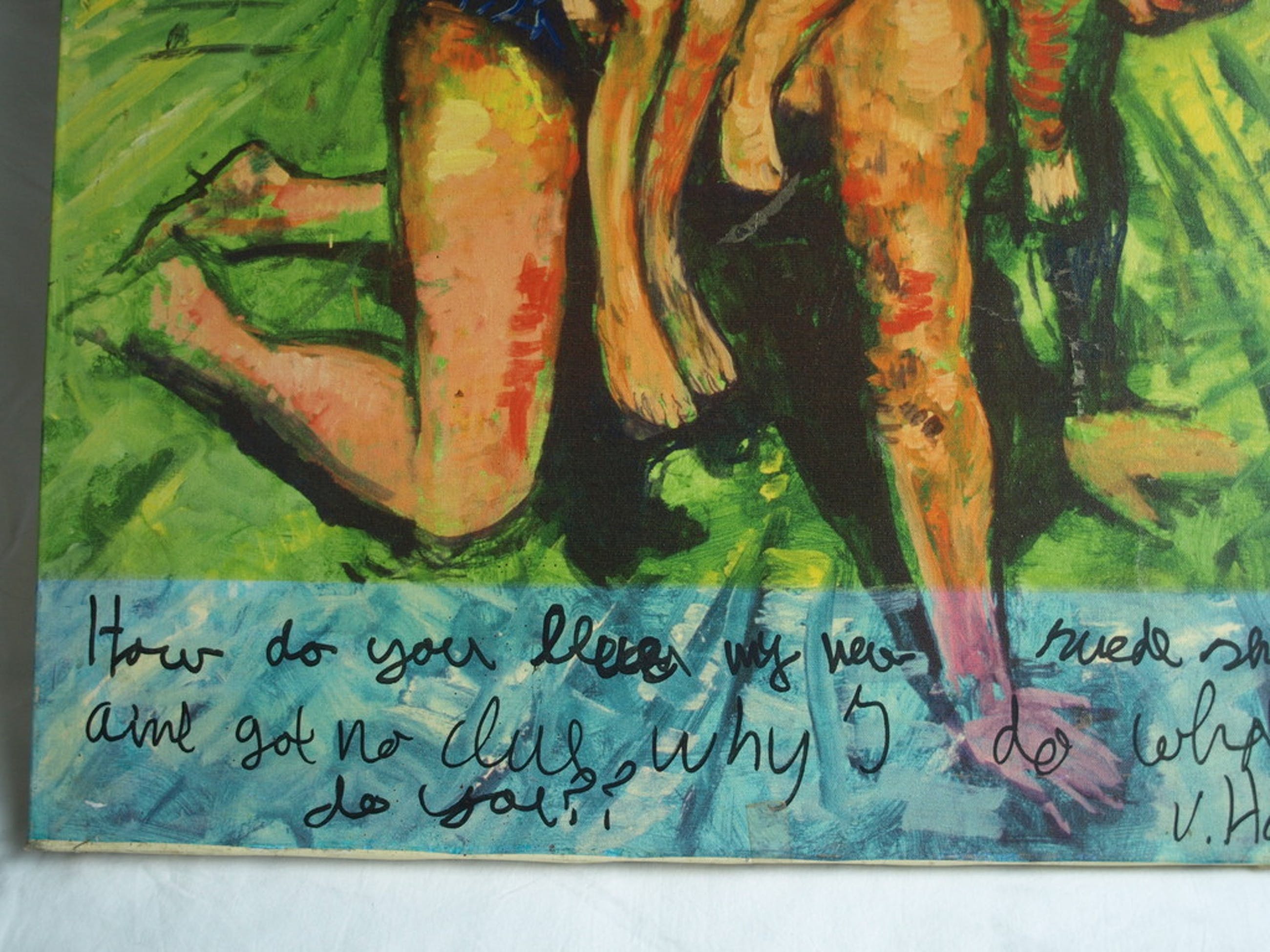 -Handgesigneerd en –gedateerd met stift en met een handgeschreven tekst: