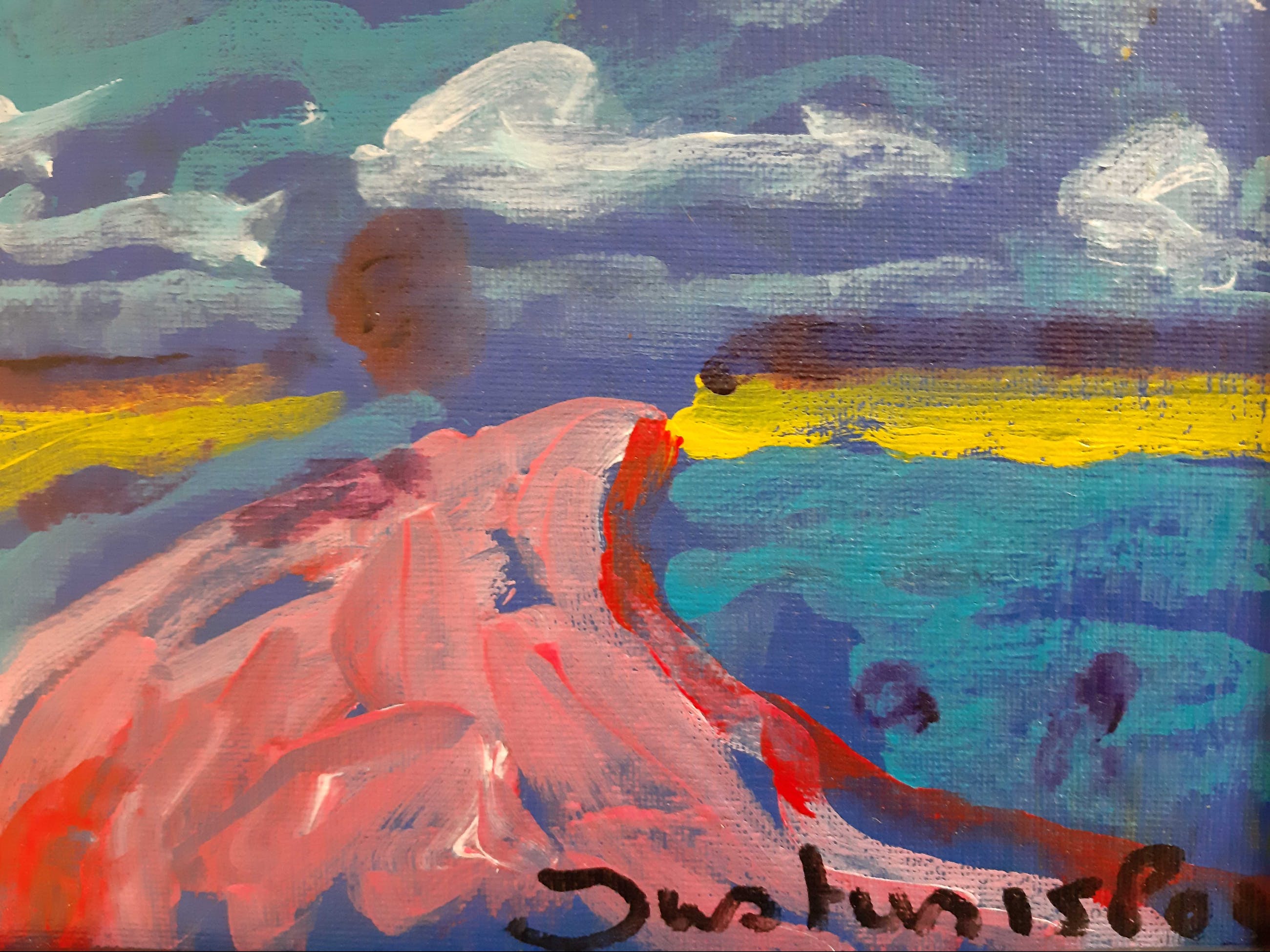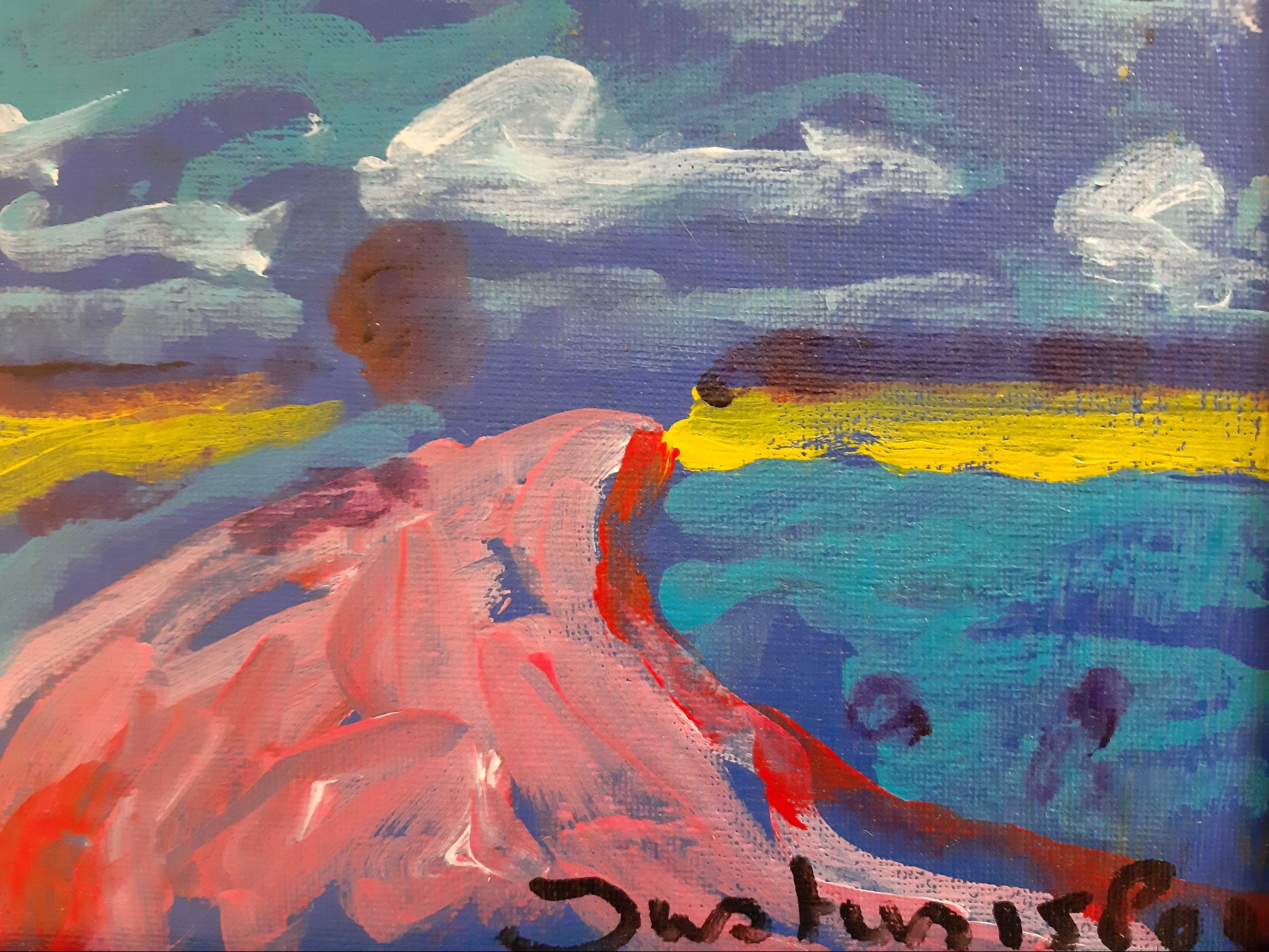 Leuk, kleurrijk en karakteristiek werk van Justus Donker, destijds lid van de After Nature groep, in acryl op canvasboard; voor zien van bijpassend houten antracieten lijst. Hand gesigneerd rechtsonder en gedateerd ''15803''.