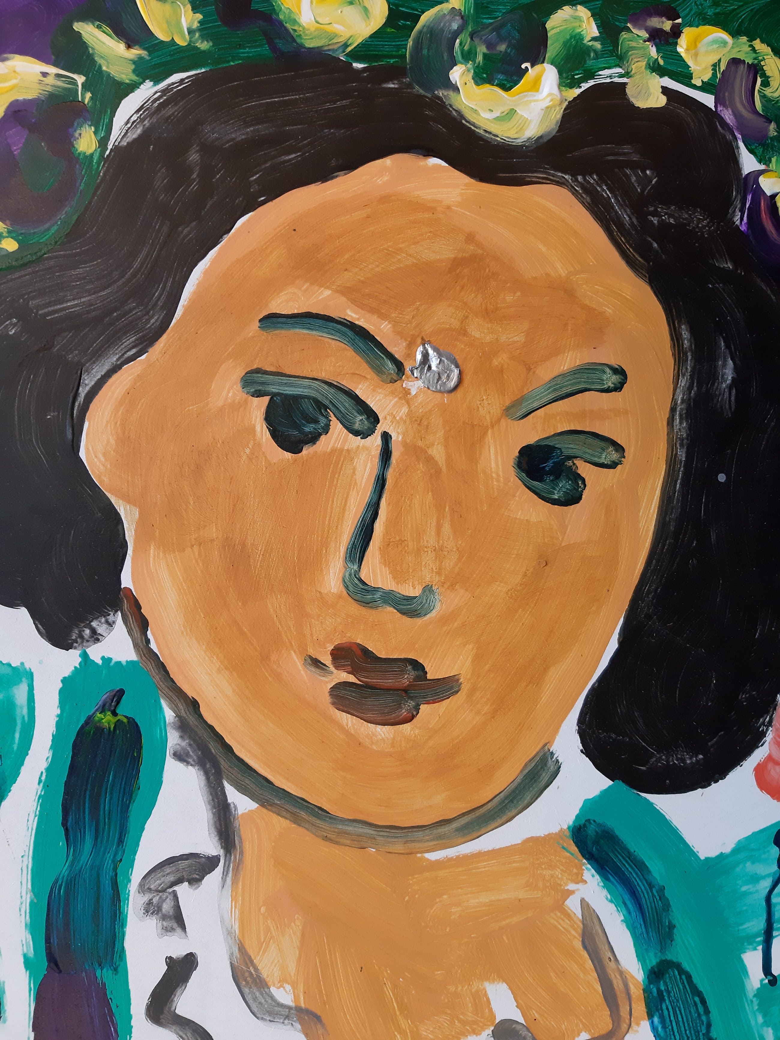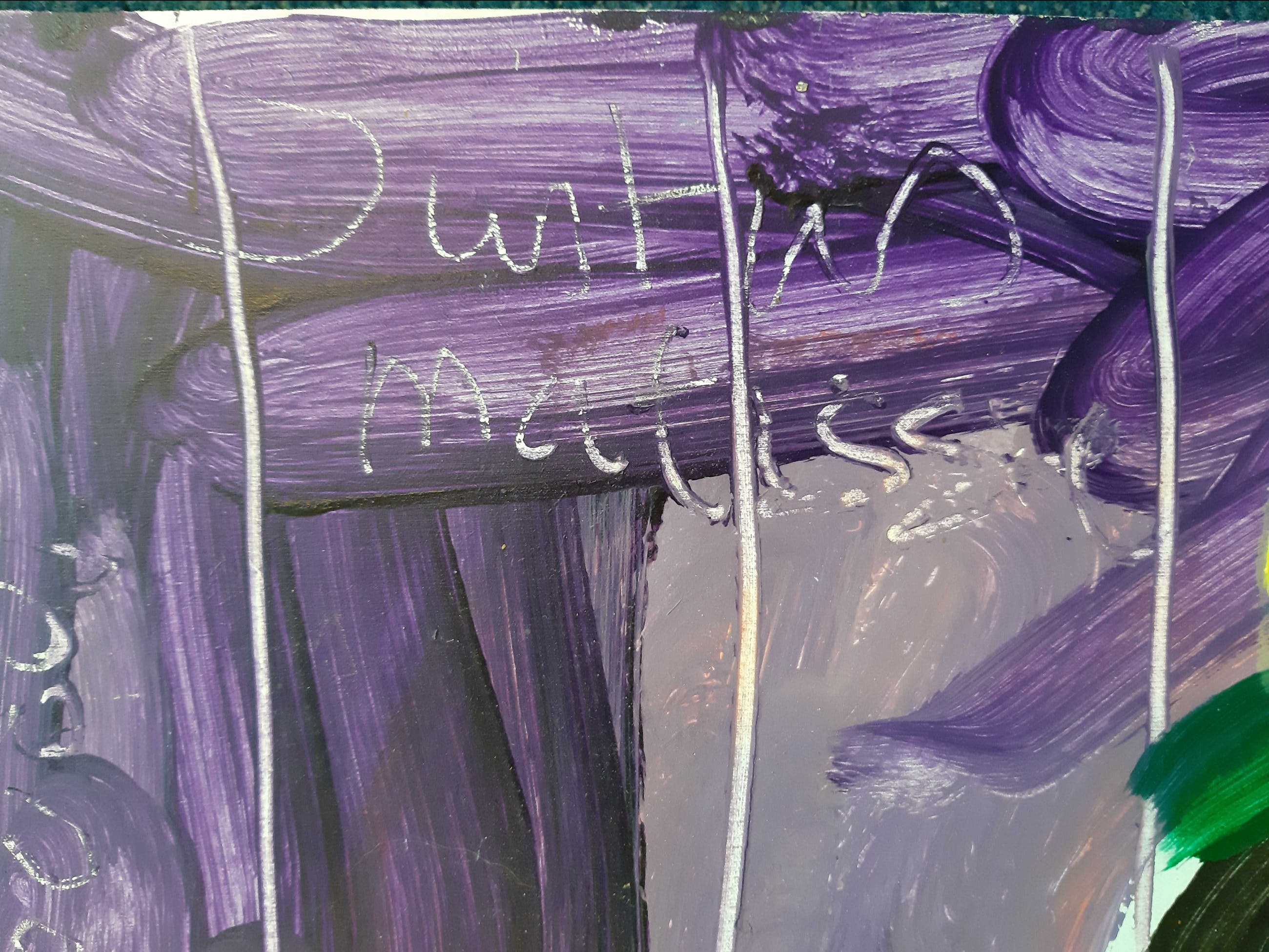 Vrolijk en dynamisch werk van Justus, in de kenmerkende krachtige kleuren; een ode aan Matisse. Geschilderd in acryl op MDF en handgesigneerd linksboven. Inclusief ophangmechanisme.