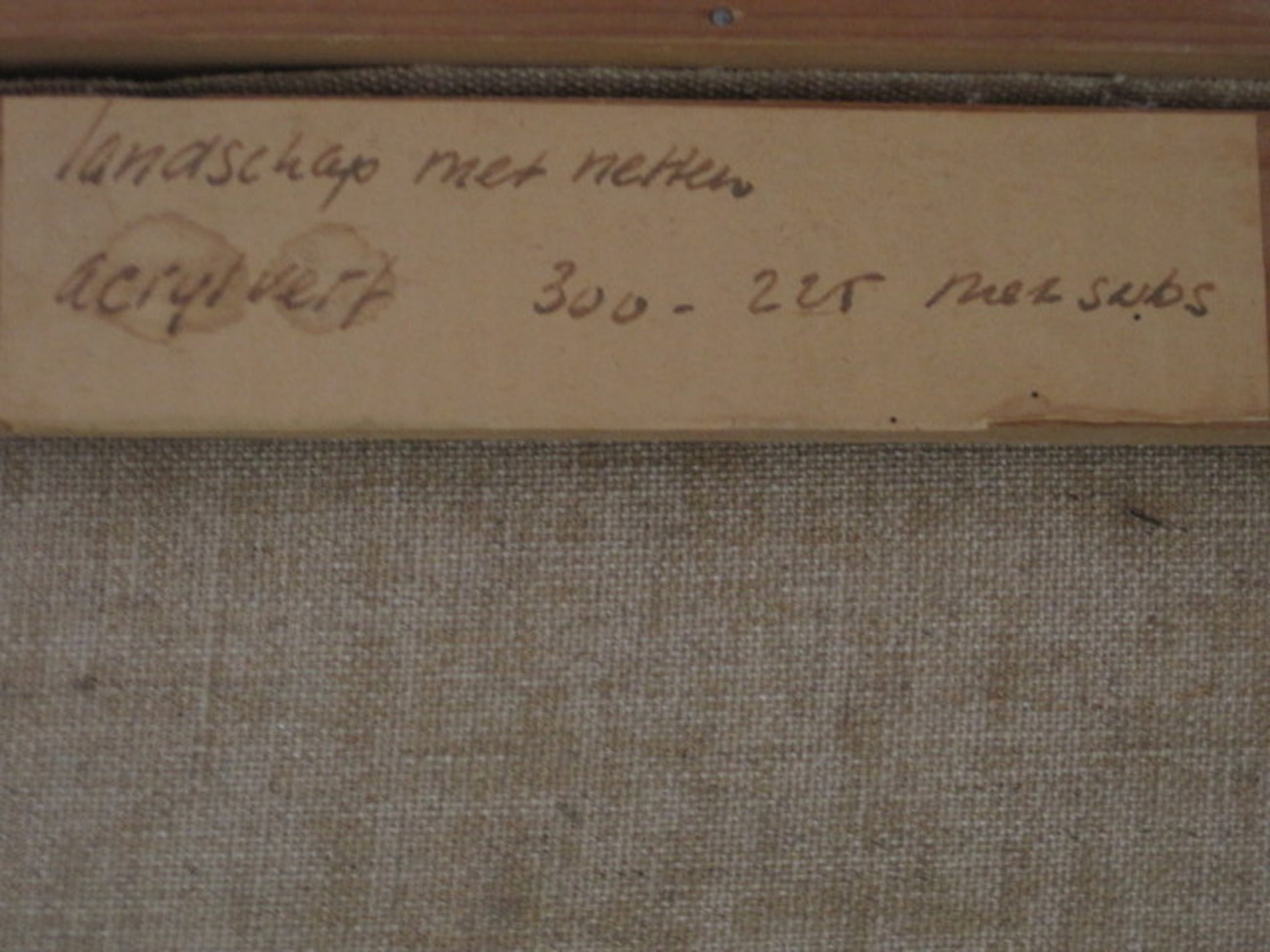 De bovenvermelde informatie mbt de door ons aangeboden kunstwerken (leeftijd, conditie en evt. signatuur) wordt volledig gegarandeerd. Onze kunsthandel is gevestigd aan het Westmallepad 12 1066pp te Amsterdam. Wij zijn iedere vrijdag en zaterdag van 12.00 tot 17.00 uur en/of op afspraak geopend. ingeschreven bij de KvK Amsterdam onder nr.34227310. Een nota van aankoop wordt op verzoek bijgeleverd.