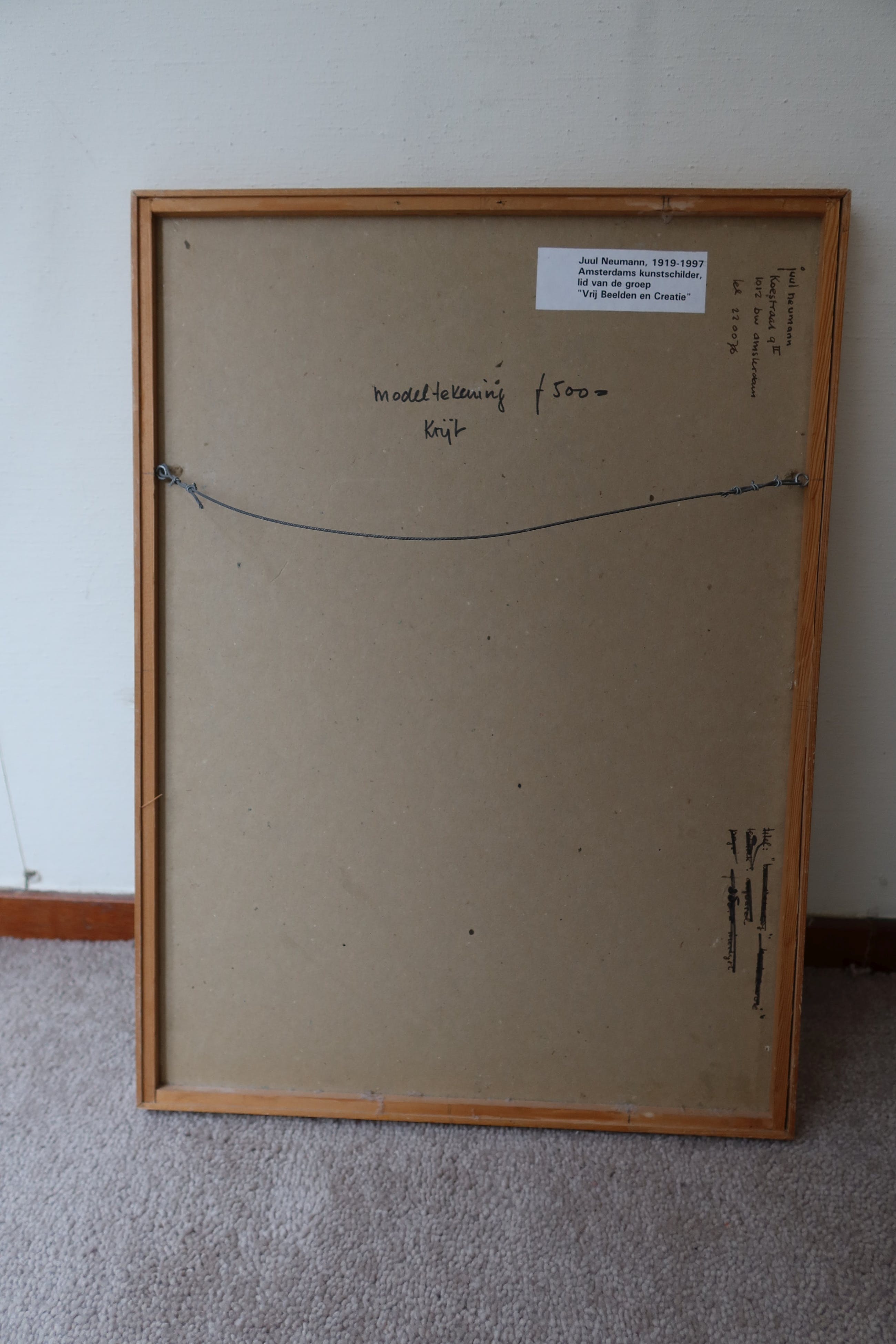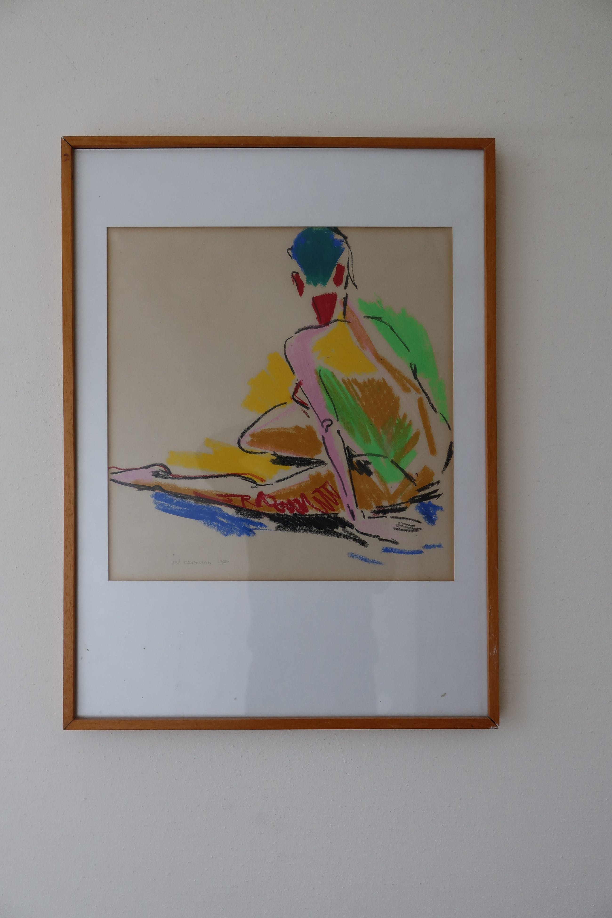 Kleurige modeltekening in pastelkrijt, in 1950 door Juul Neumann gemaakt.