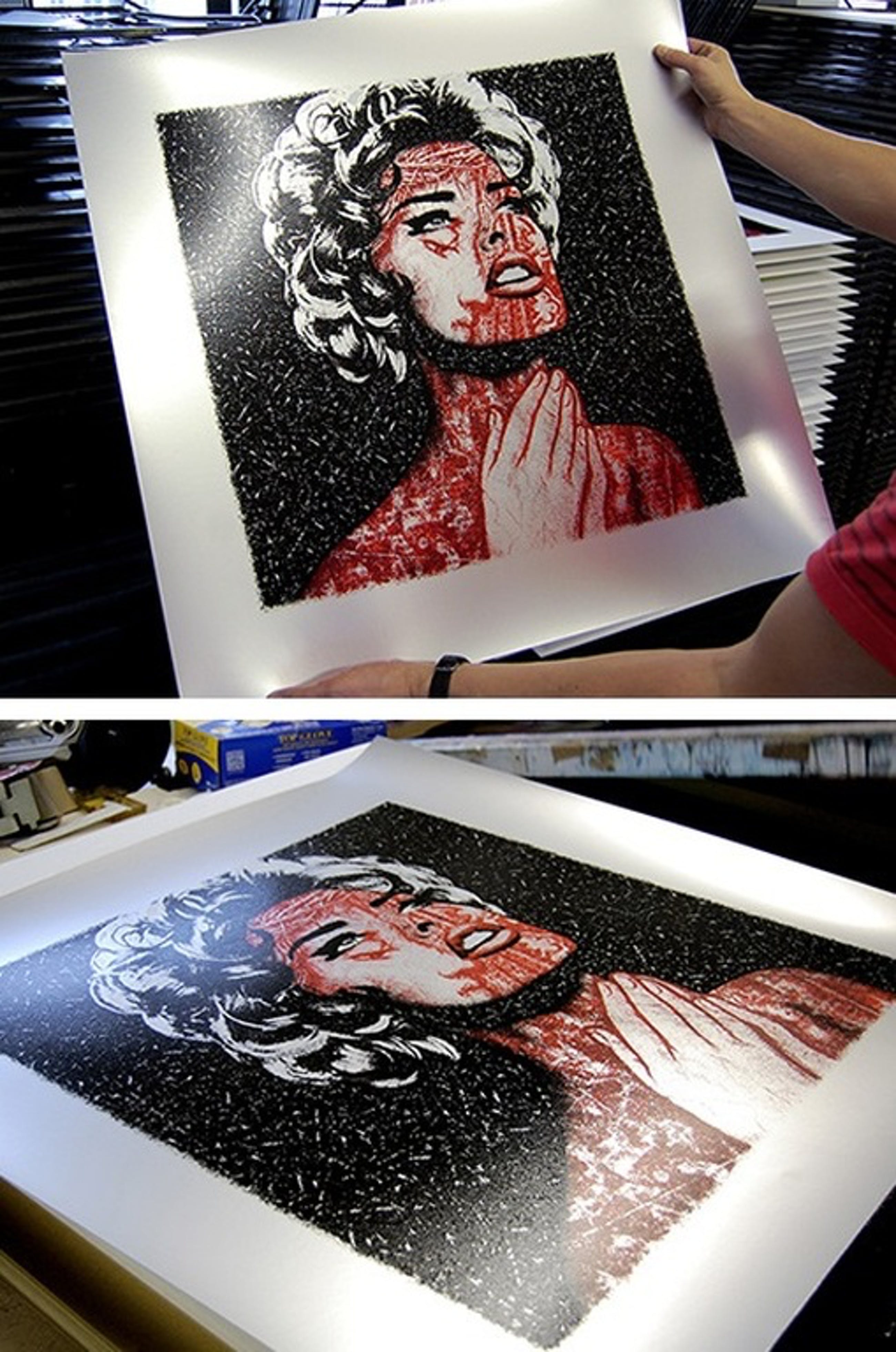 An original artwork from the British artist KGUY, featuring the image of model Linda Evangelista.
