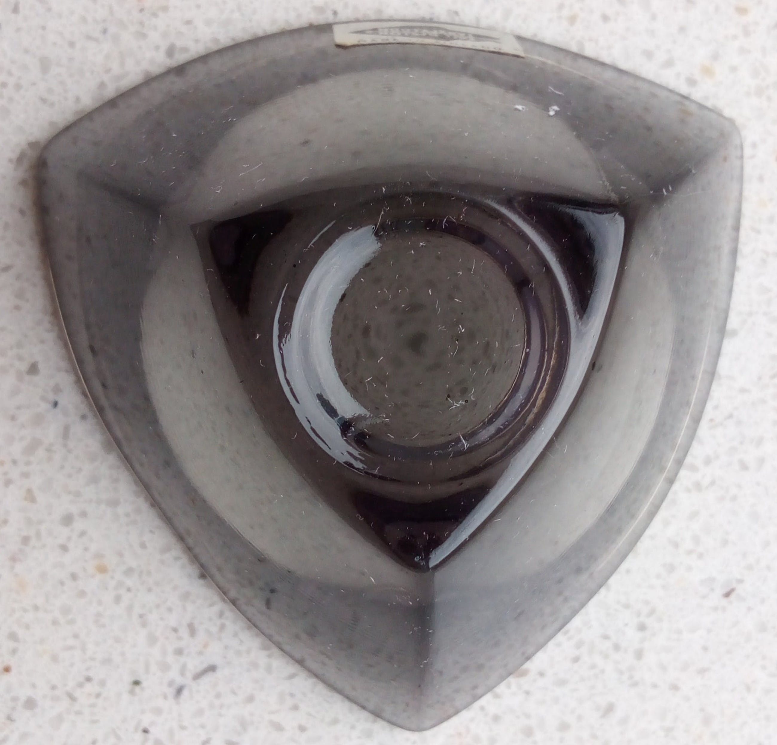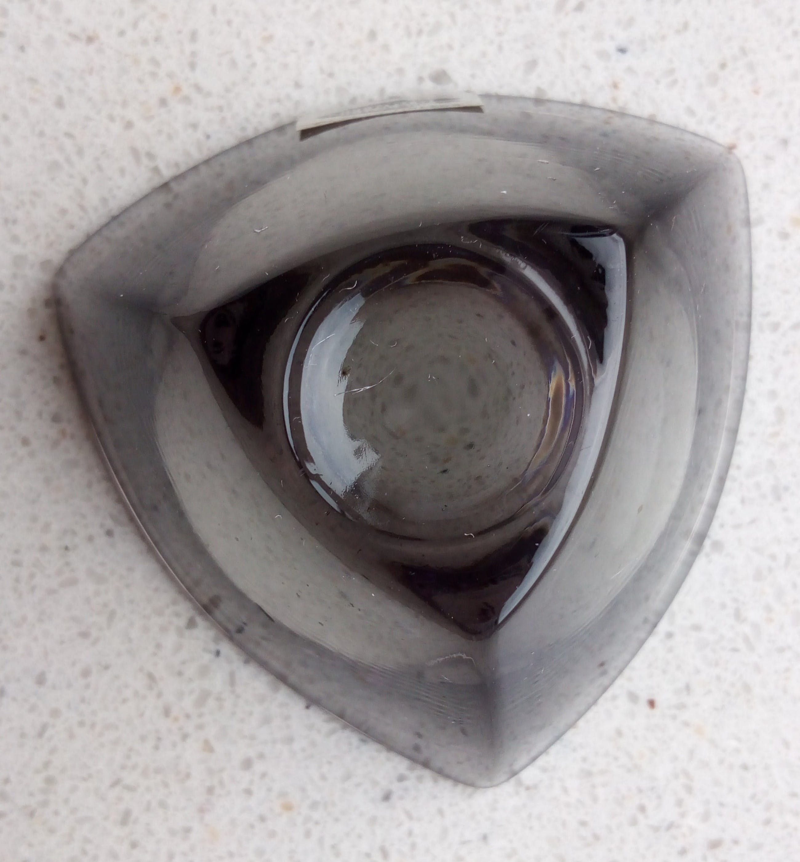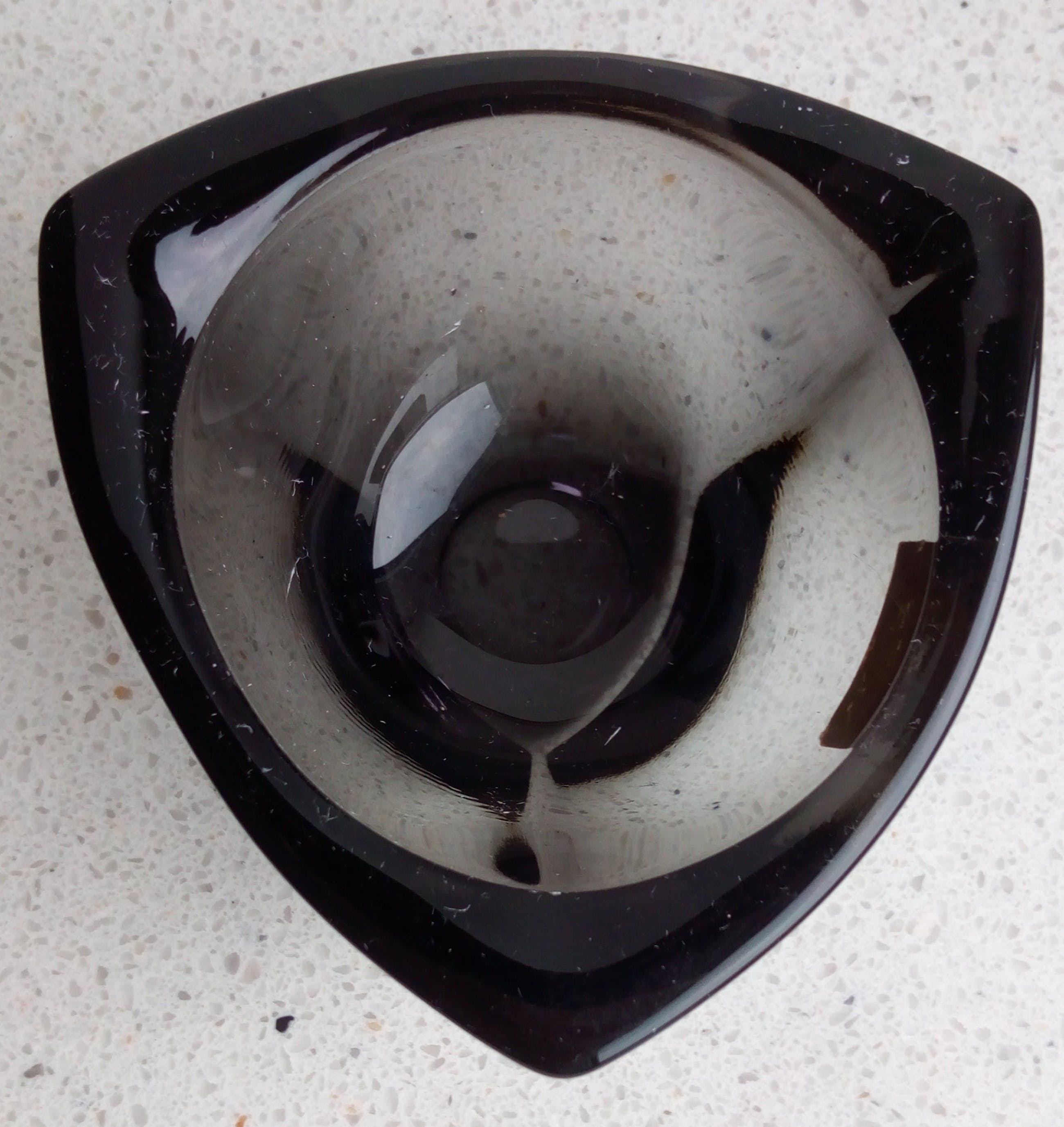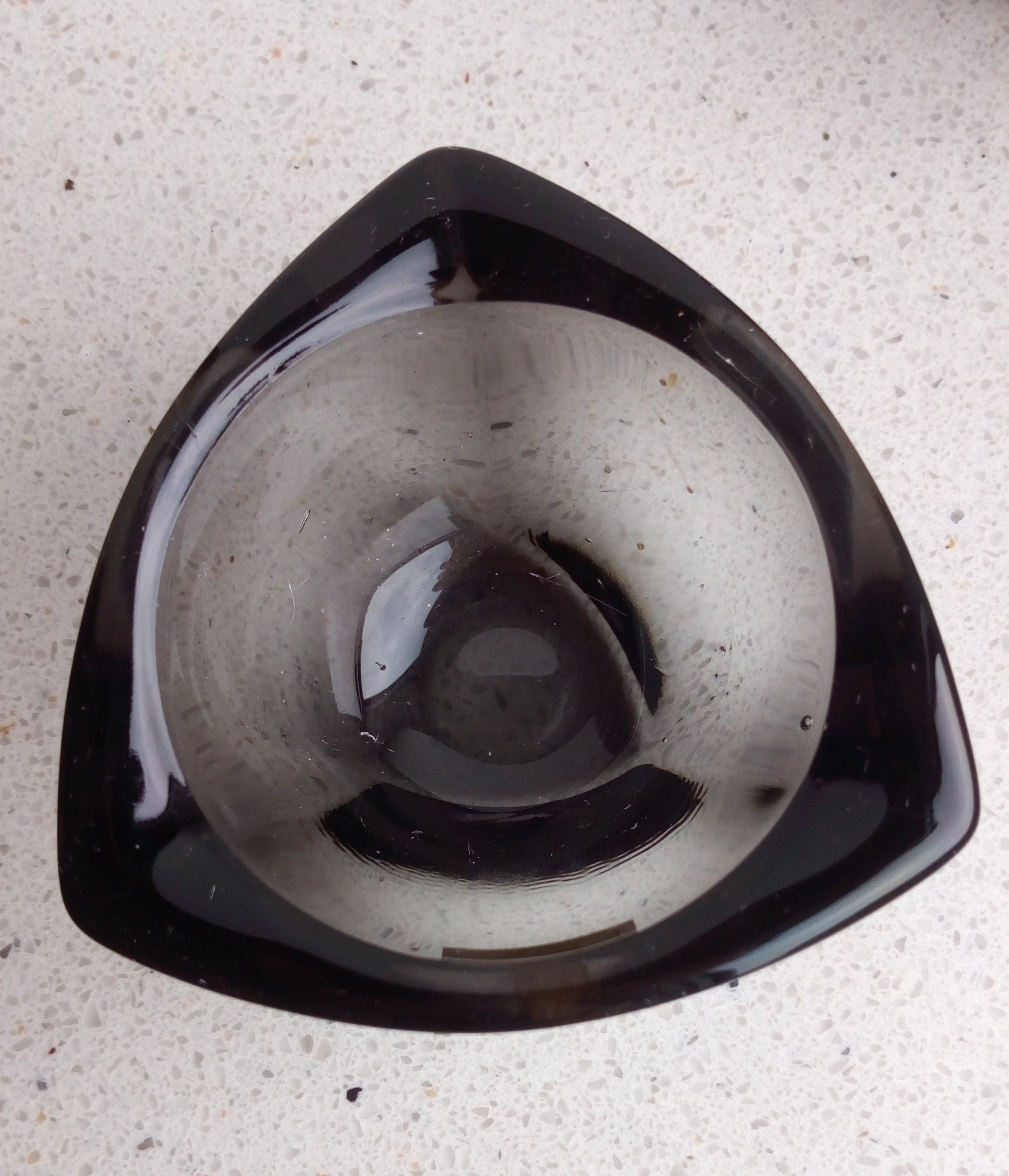 Het blauwe schaaltje is niet gekrast of gechipt. De foto laat stofdeeltjes zien