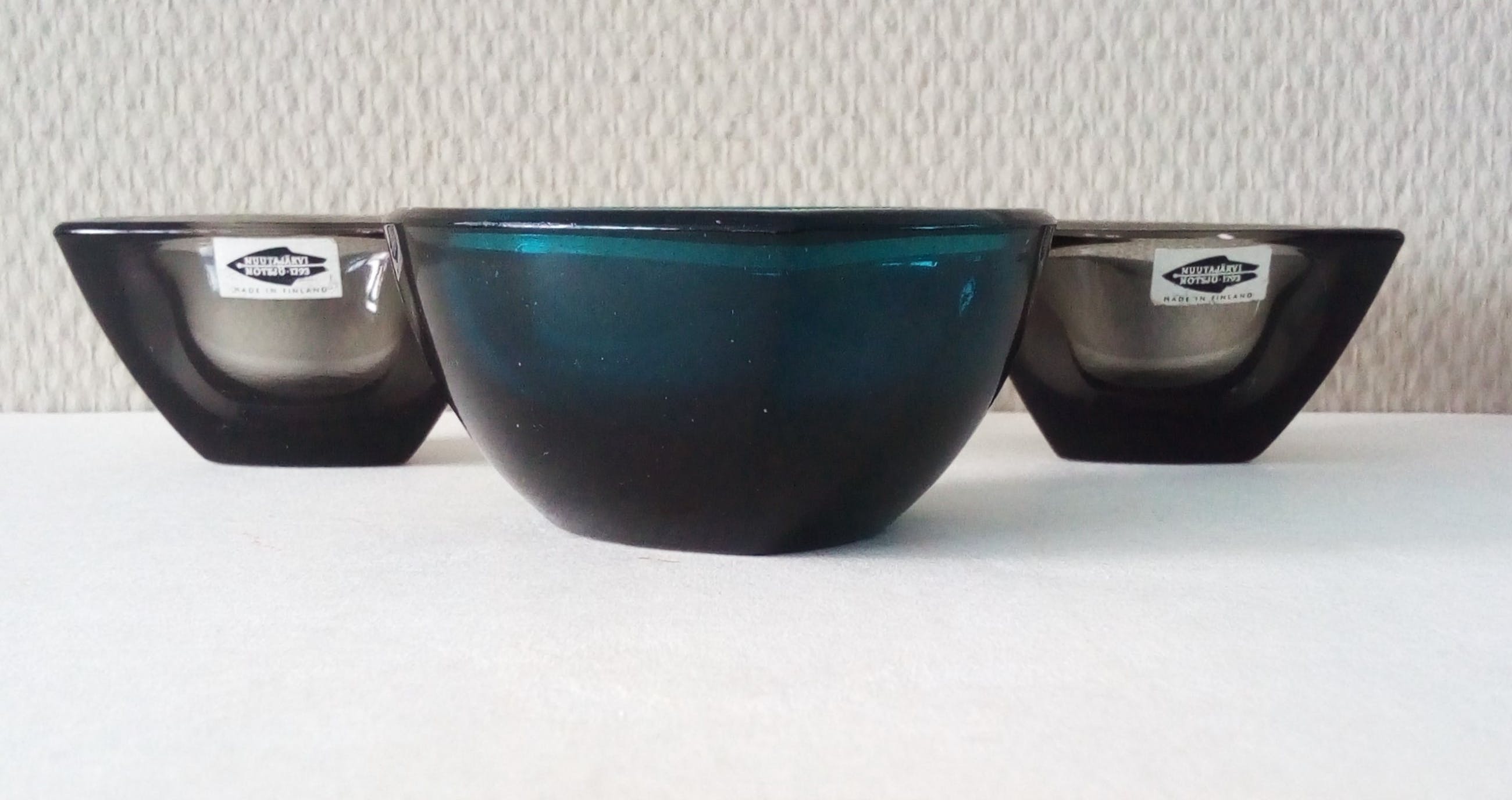 Afmetingen: twee schaaltjes / theelichtjes (grijs): 7,5 cm x 7,5 cm x 4 cm
