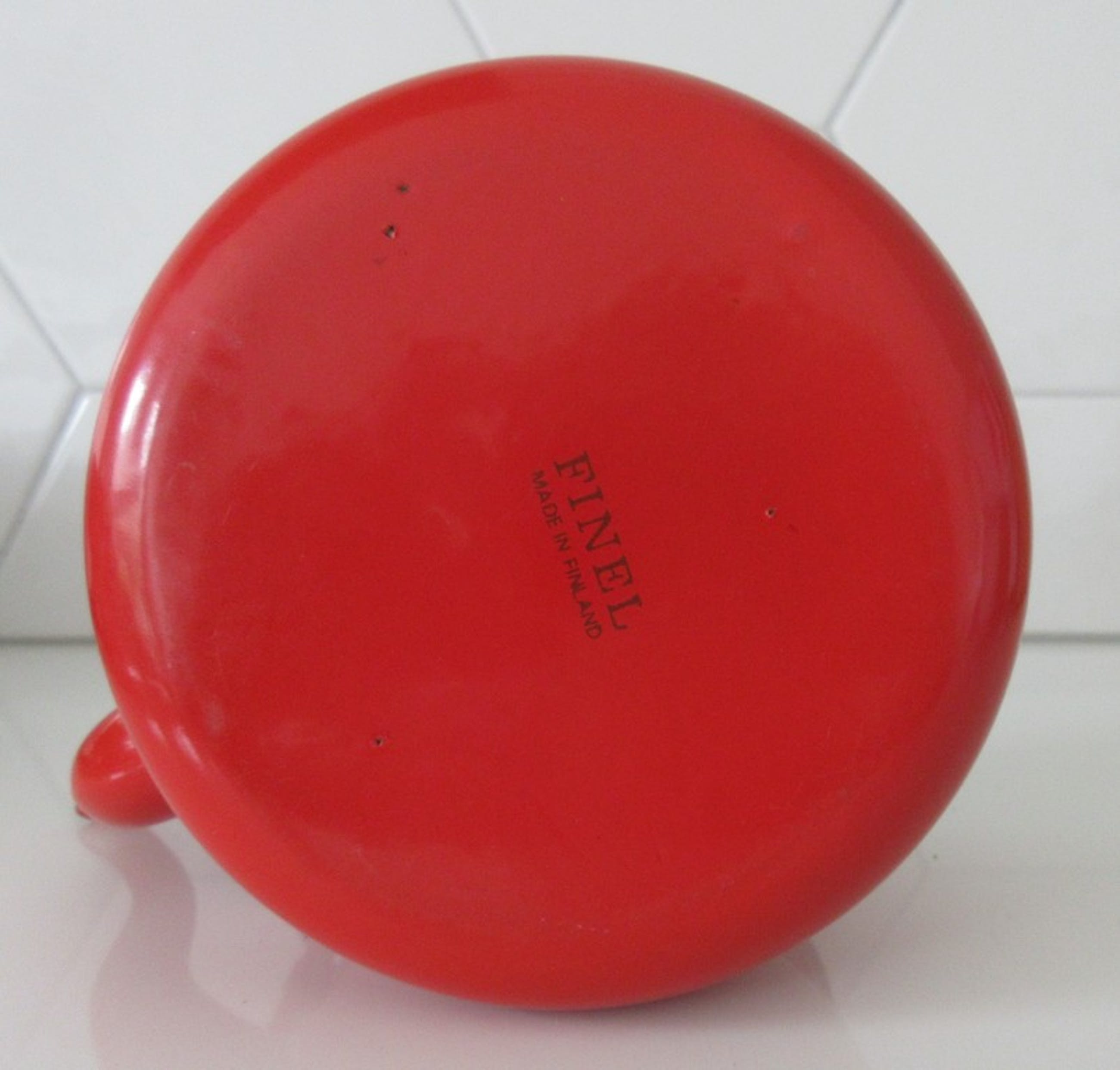 Kaj Franck voor Arabia Finel - Emaille kersenrode theepot. In prima gebruikte conditie, vrijwel geen beschadigingen. Aan de onderzijde gemerkt; Finel Finland. Afmetingen; 13 cm hoog.