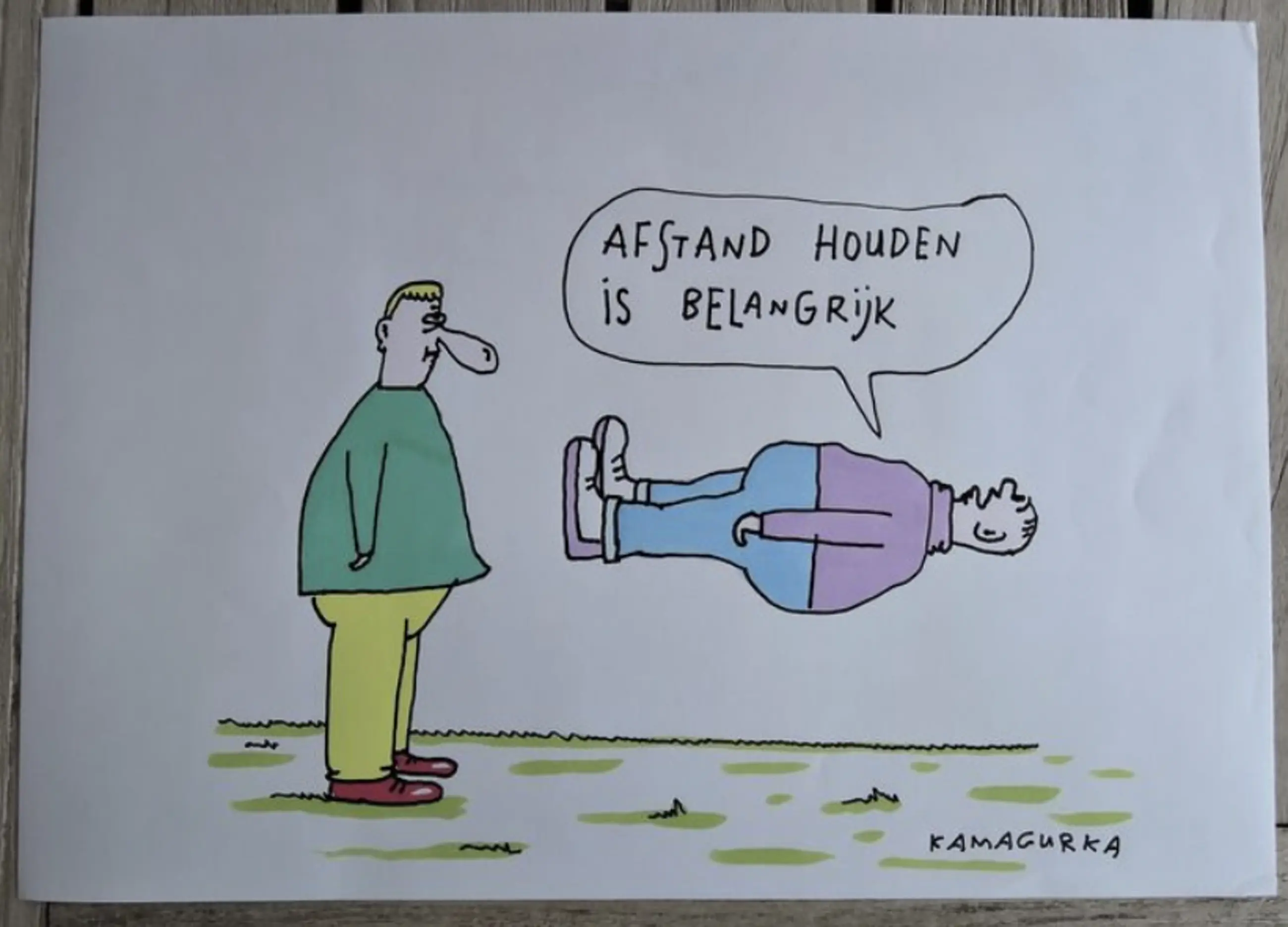 Met stift en kleurstiften In perfecte staat!! Onderaan de tekening gesigneerd door Kama zelf