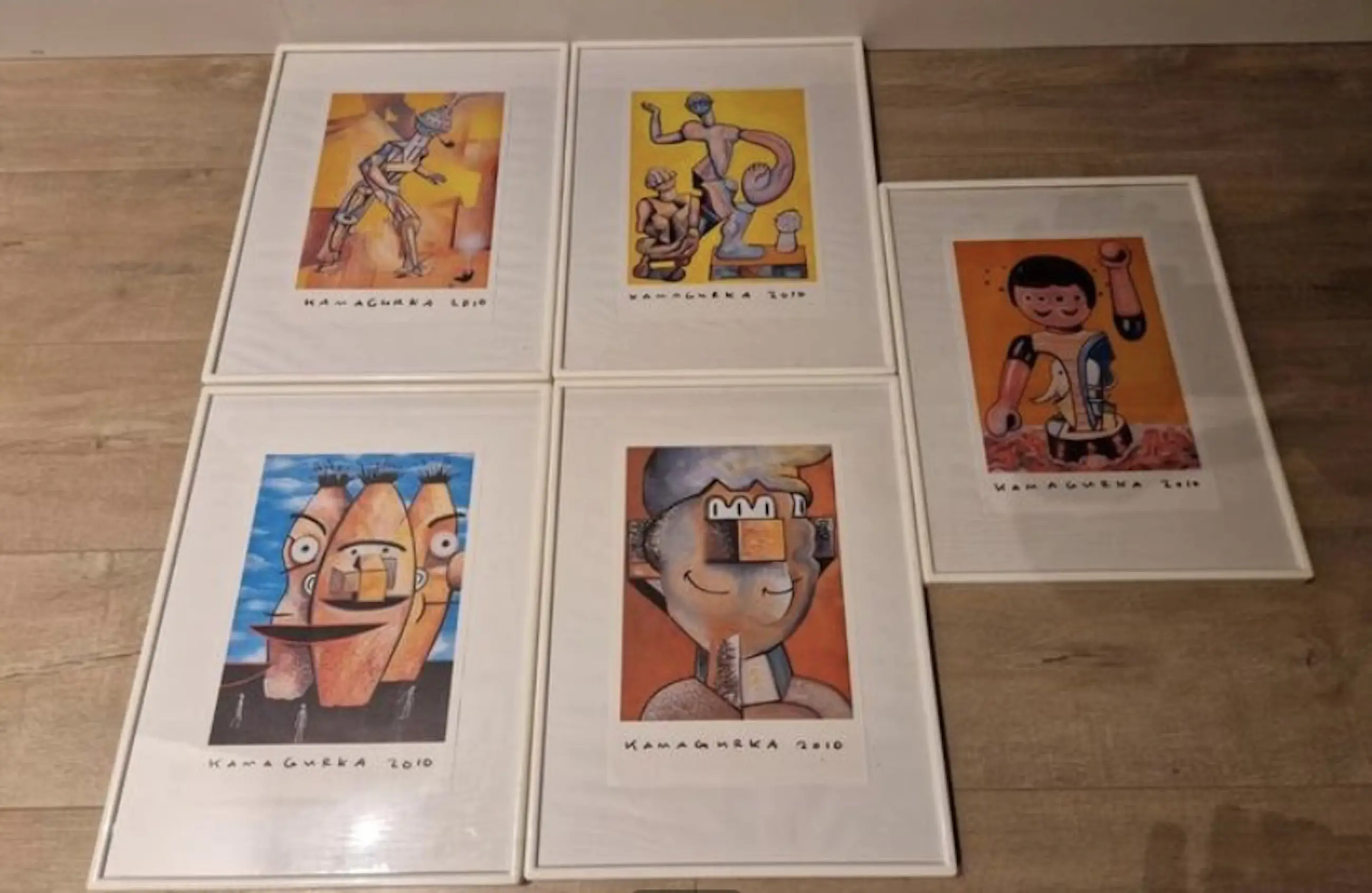 5 mooie artprints van Kamagurka Small Hero reeks; kubisme Ingelijst in kader Goede staat!!