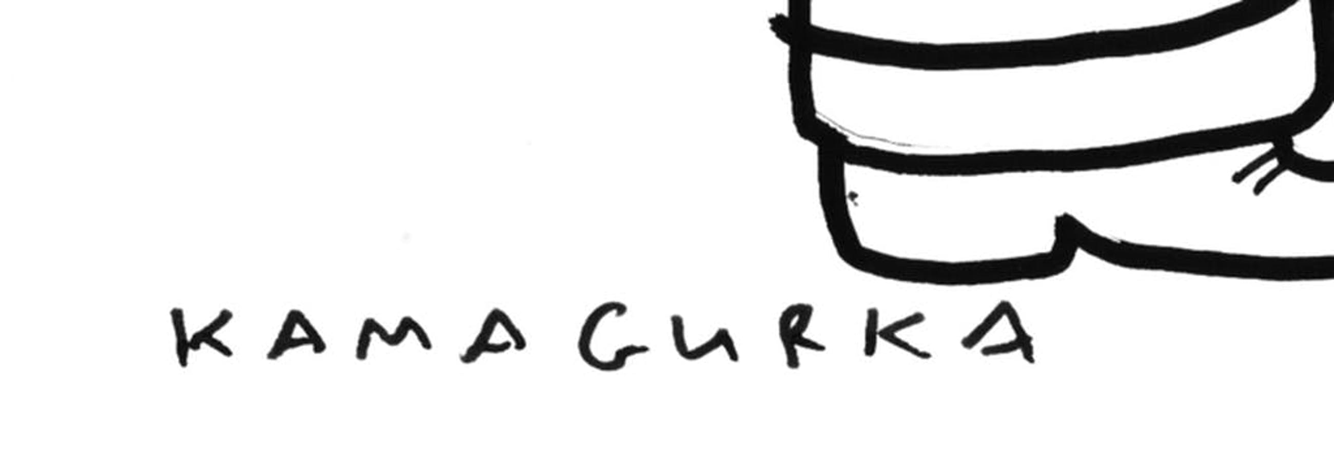 Originele tekening van Kamagurka, zwarte stift op wit A4-papier.