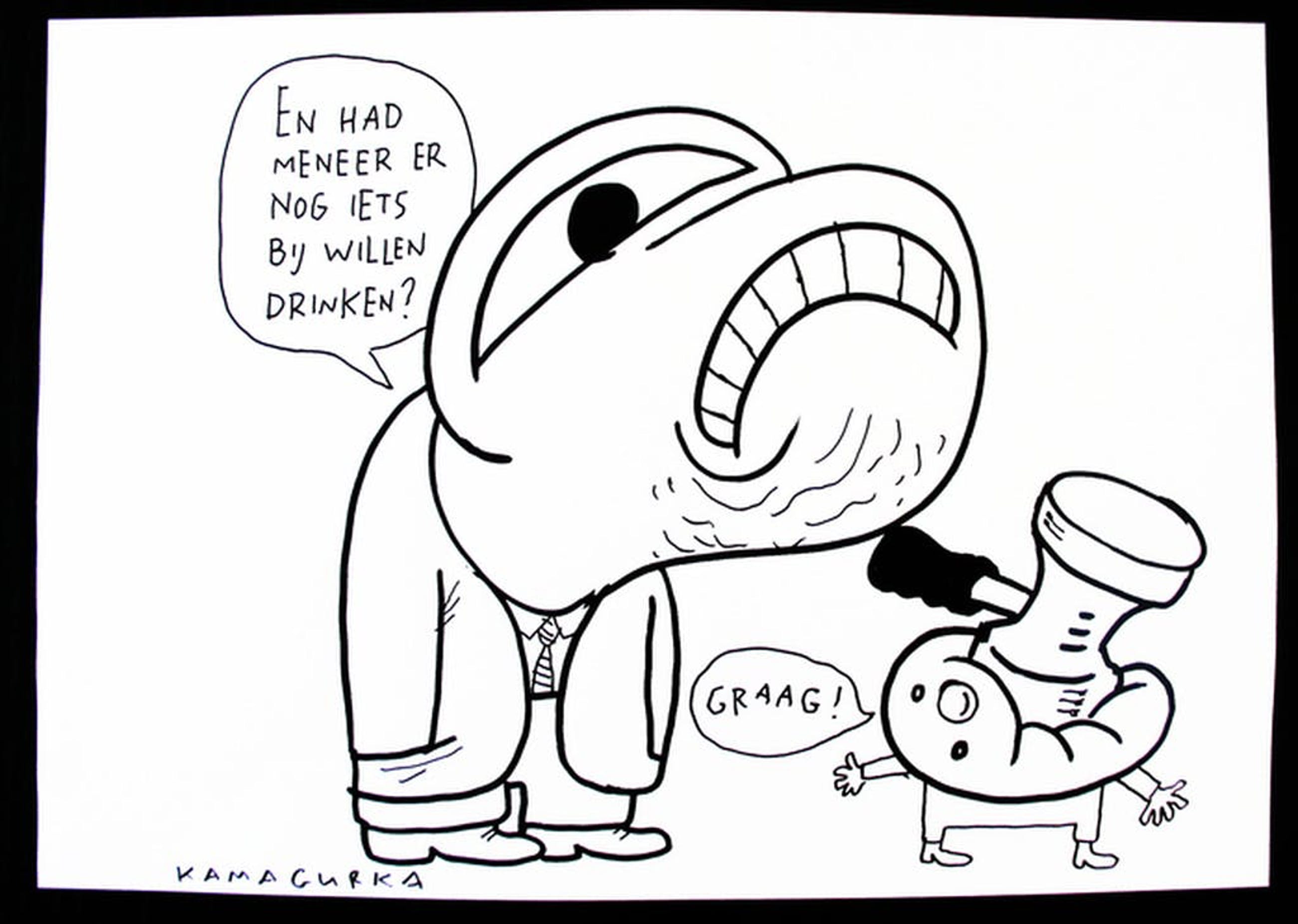 Kamagurka - En had meneer er nog iets bij willen drinken? - gesigneerde tekening op papier
