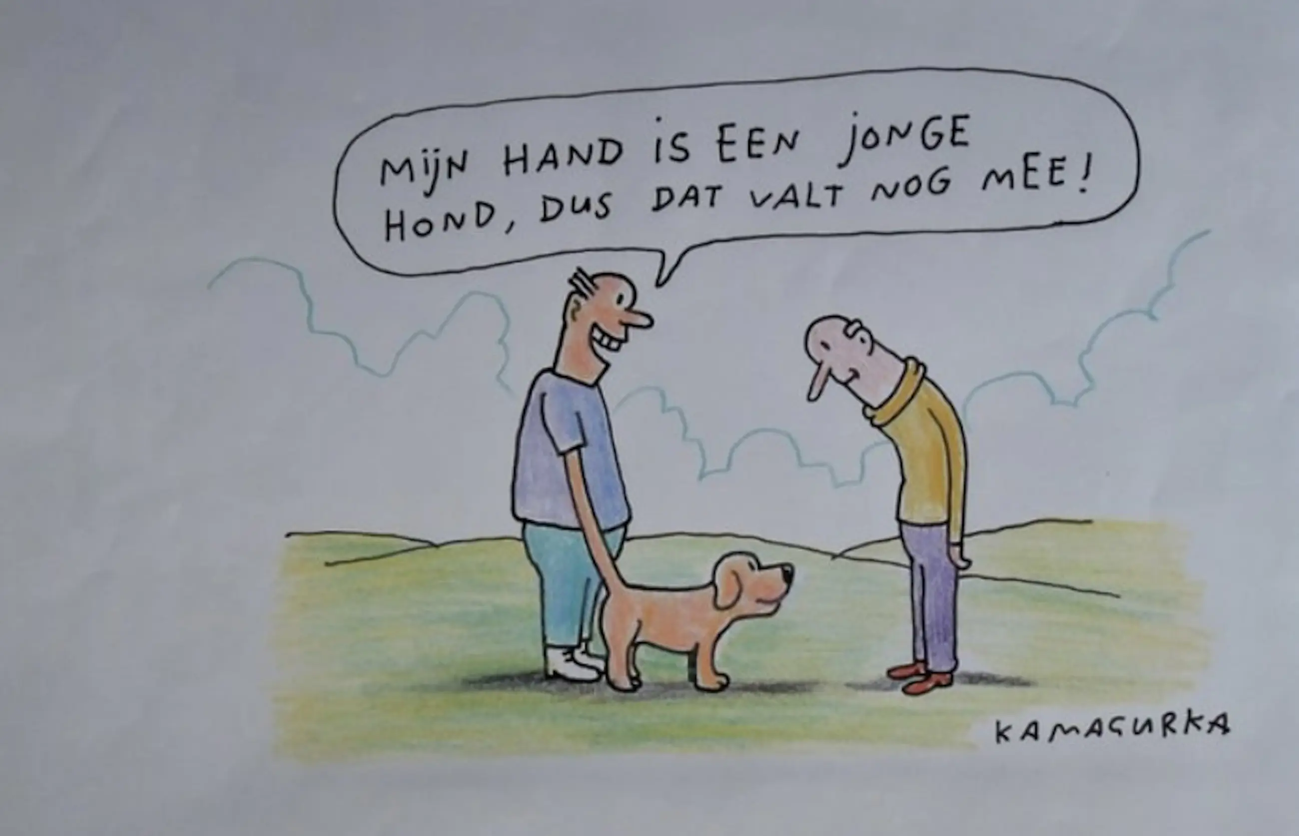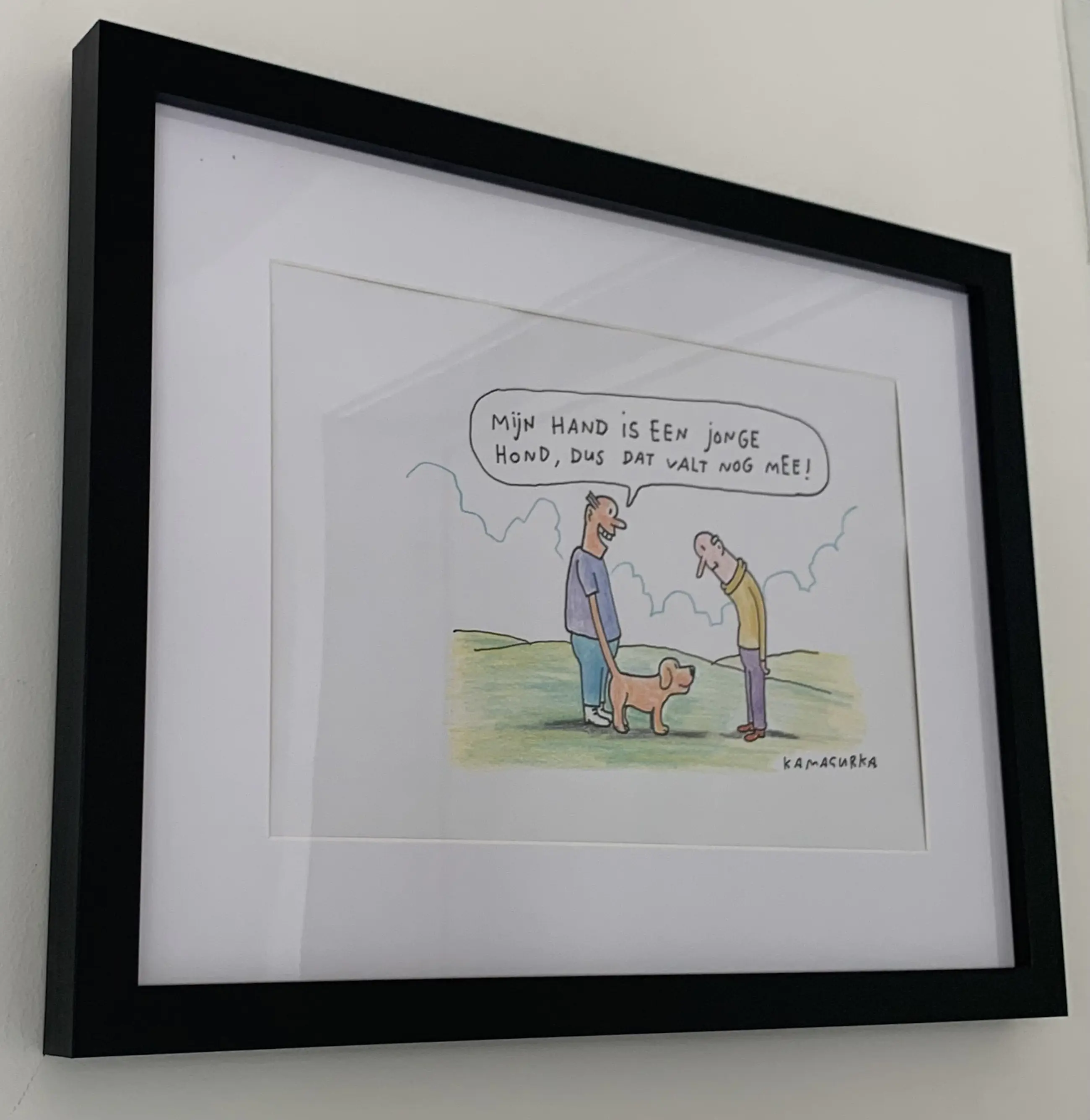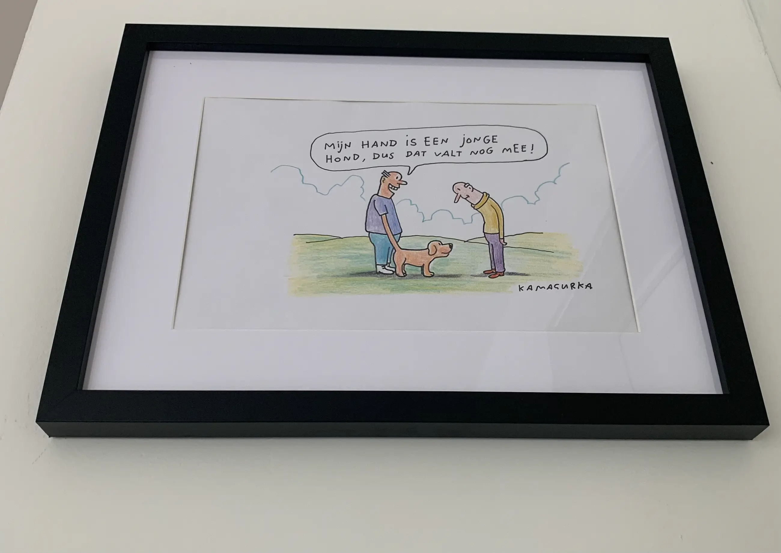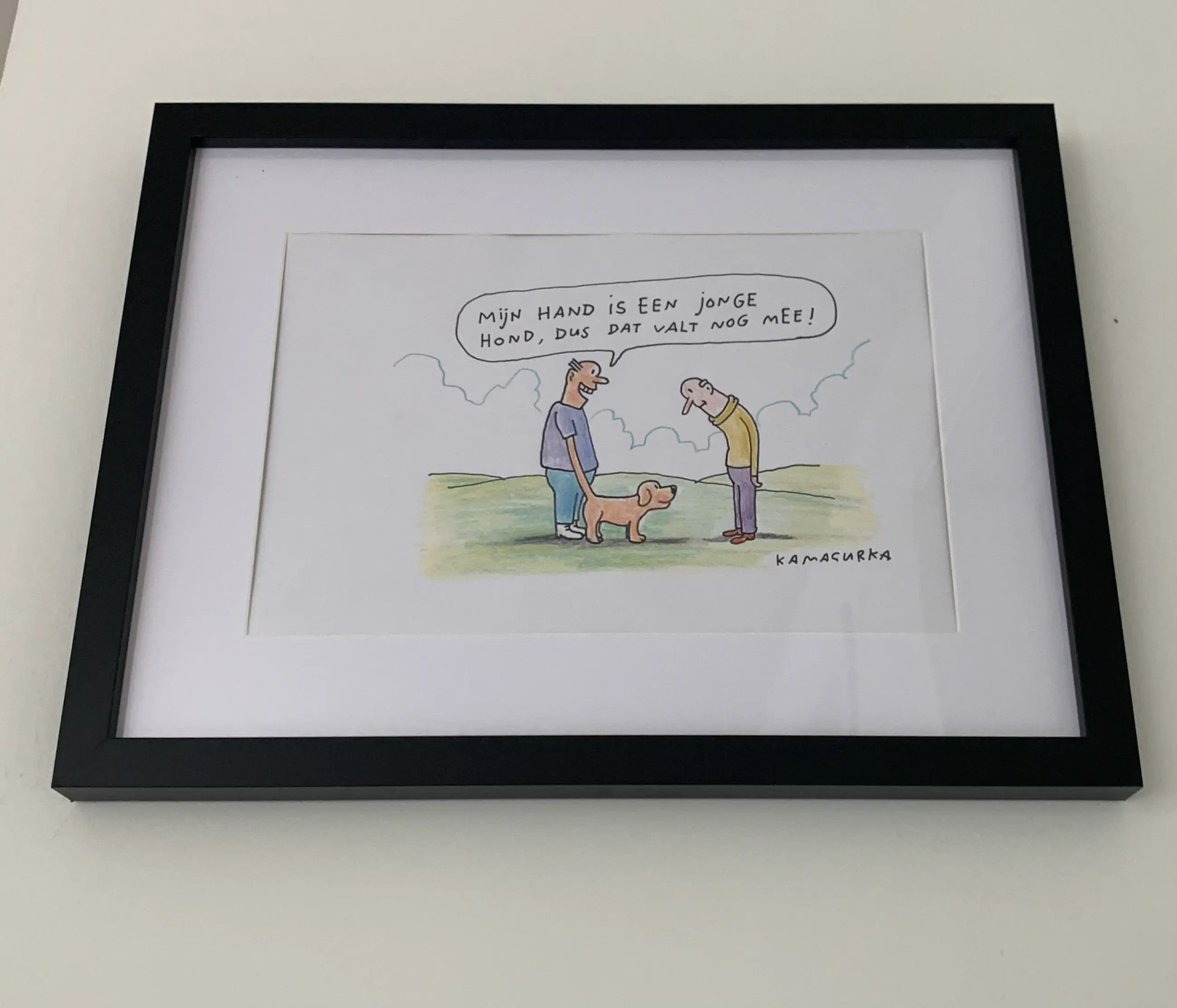 Mooie cartoon van Kamagurka Een origineel, gesigneerd door kunstenaar zelf Op gevoelig, glad papier Ingeframed in zwarte kader met witte paspartout