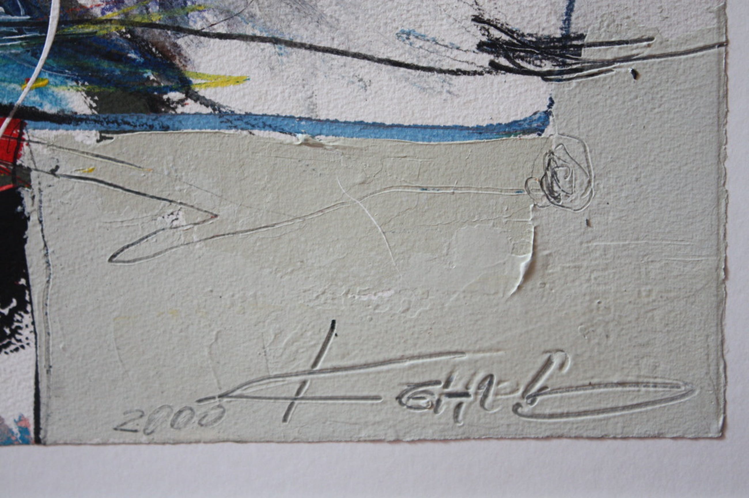 Schilderij op papier/karton Binnenmaat 77x57 buitenmaat inclusief houten lijst 100x 120, geen glas