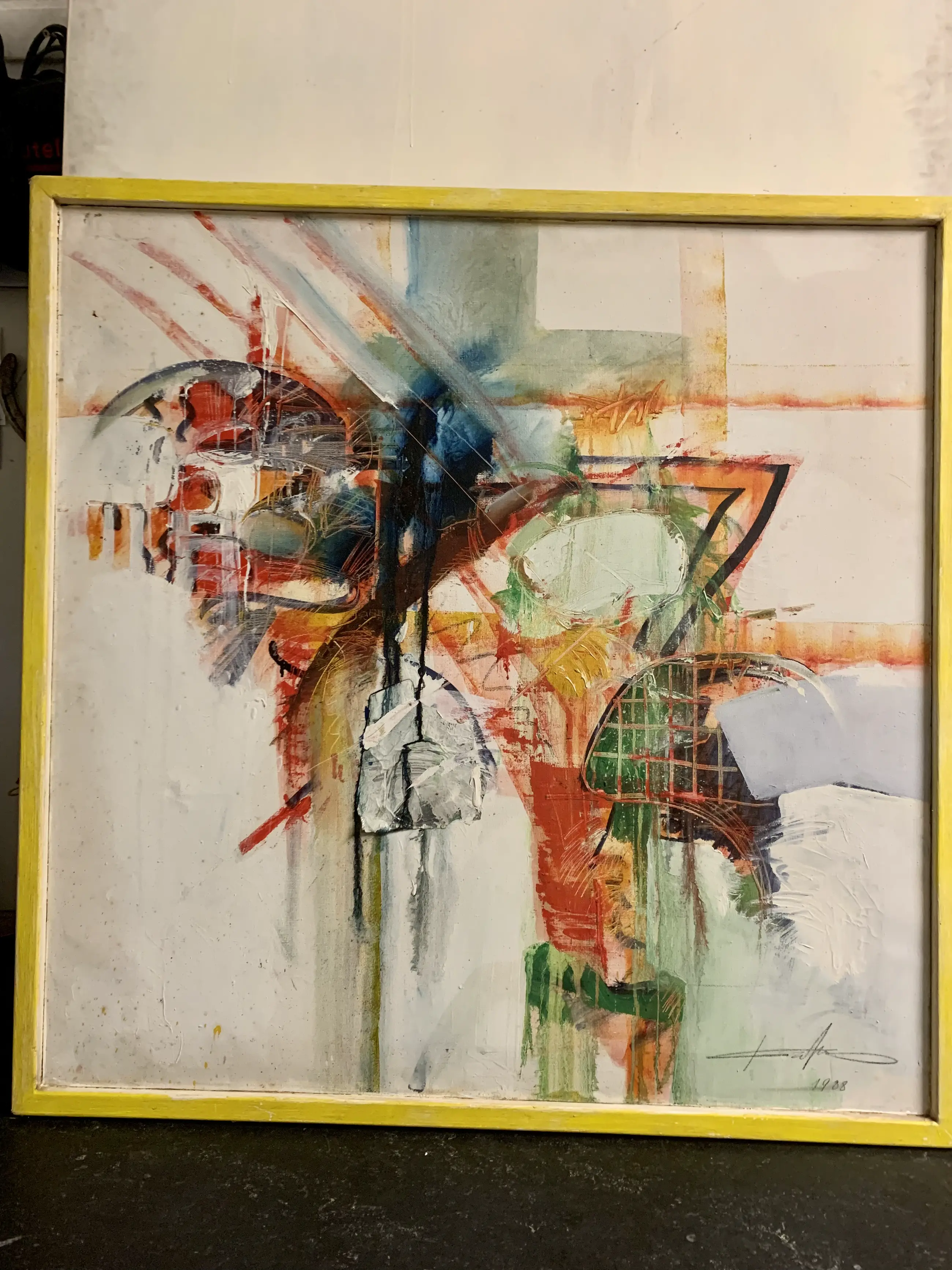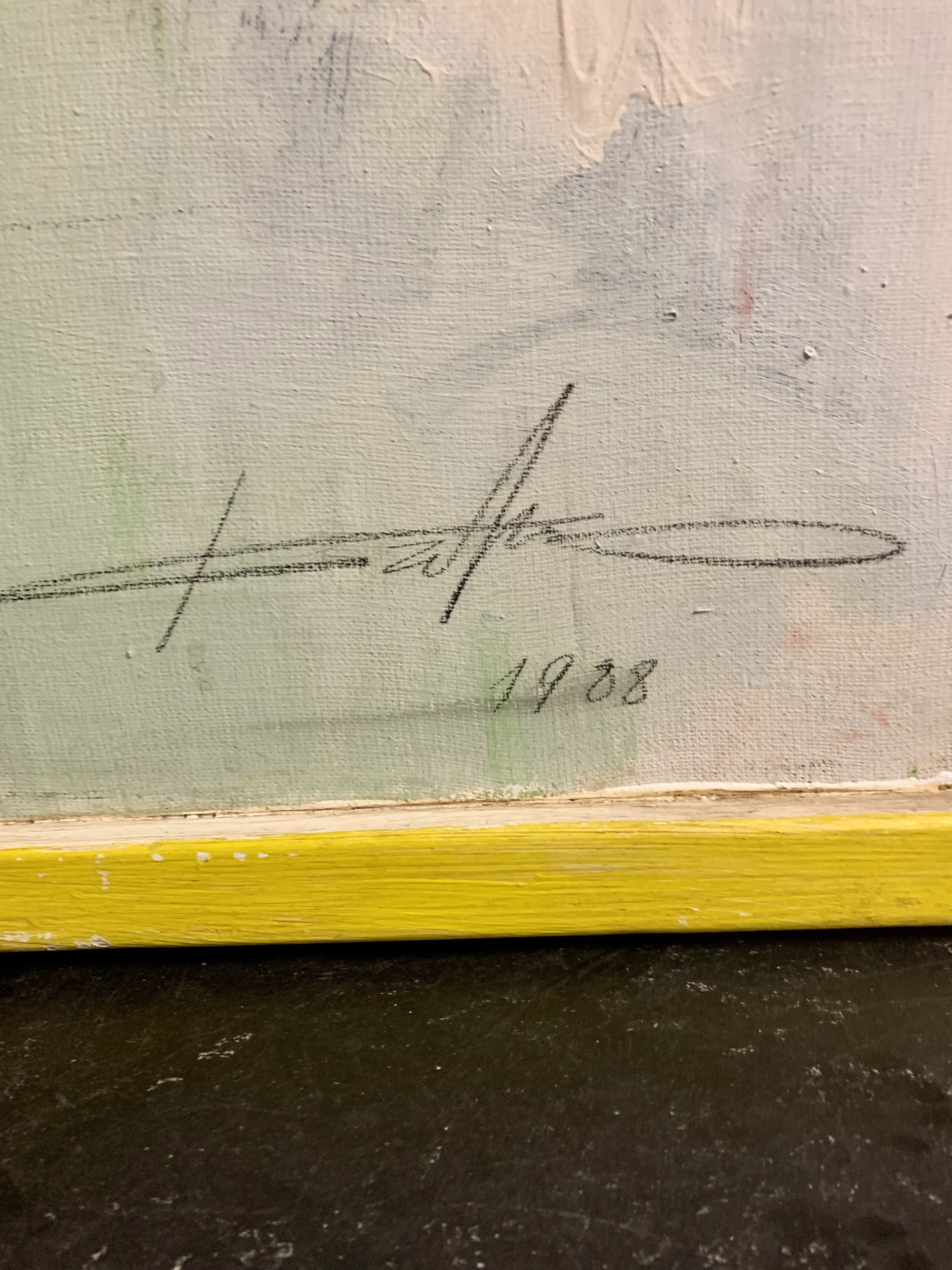 Mooi , krachtig en poëtisch werk van de bekende Bulgaarse kunstenaar kantcho kanev gemaakt in 1988 het is acryl op doek met daarbij gemengde een techniek, ingelijst .