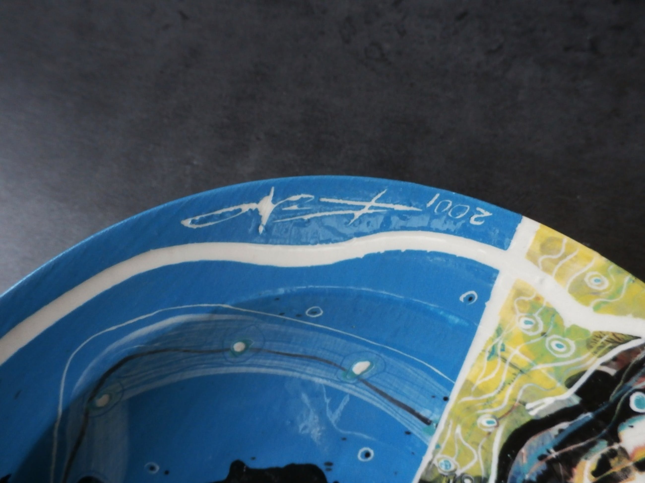 Keramieke kom van Kantcho Kanev uit 2001. Diameter: 22 cm. Het werk is op de rand gesigneerd en gedateerd. Ook op de achterzijde is het werk gesigneerd. Conditie: in goede staat.