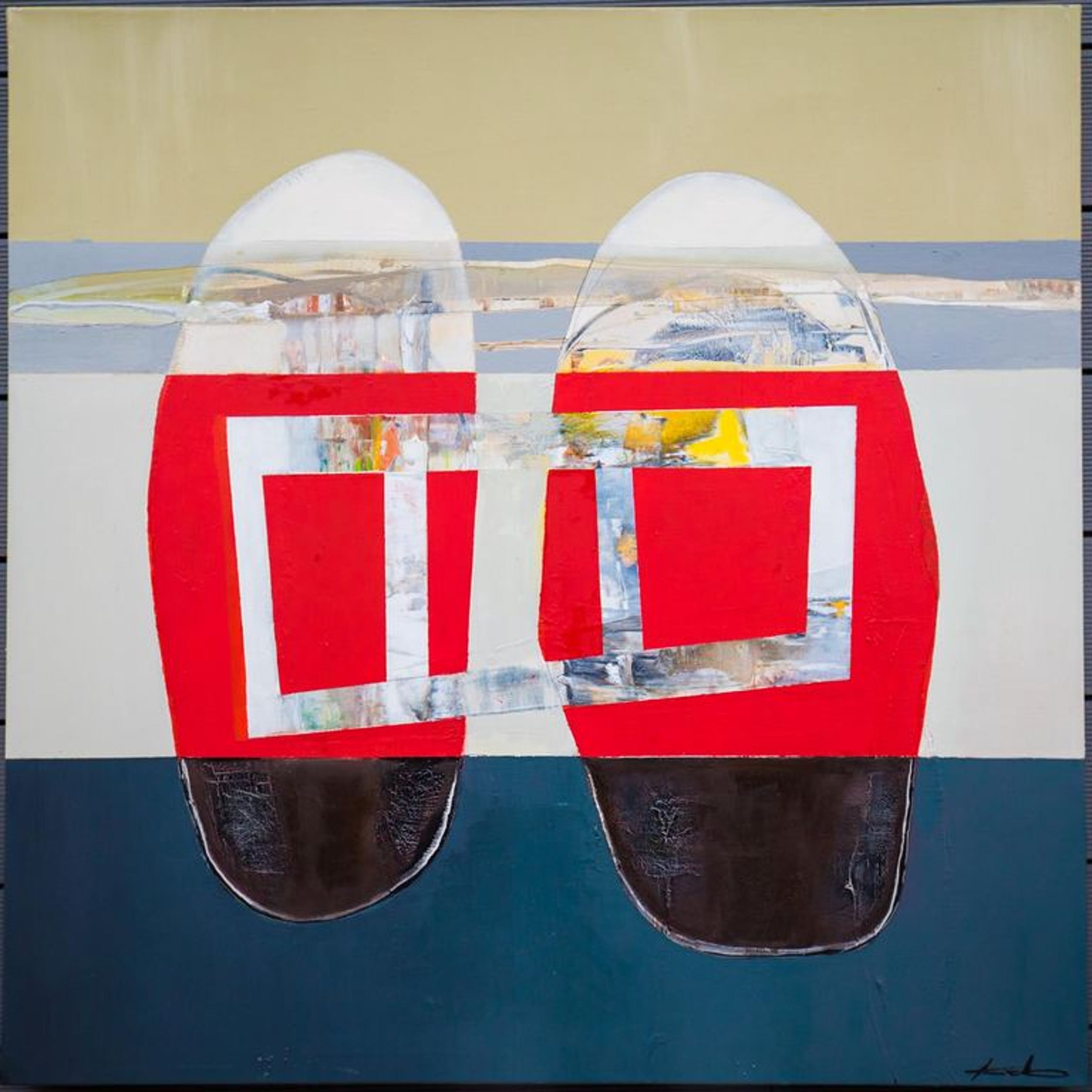 Groot(100x100), recent, orgineel,gesigneerd werk. Dik doek waarvan de zijkanten zijn meegeschilderd