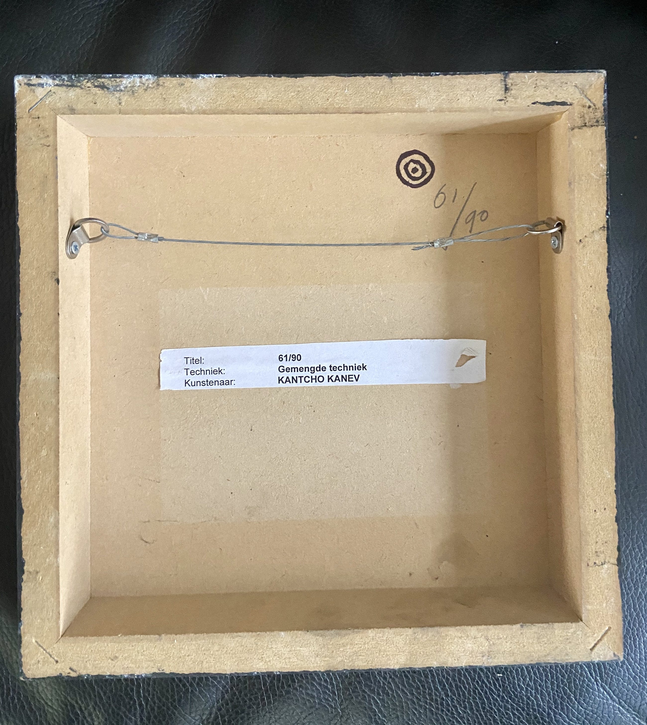 Het betreft hier een Zeefdruk op papier bevestigd op paneel hij kan zo aan de muur.