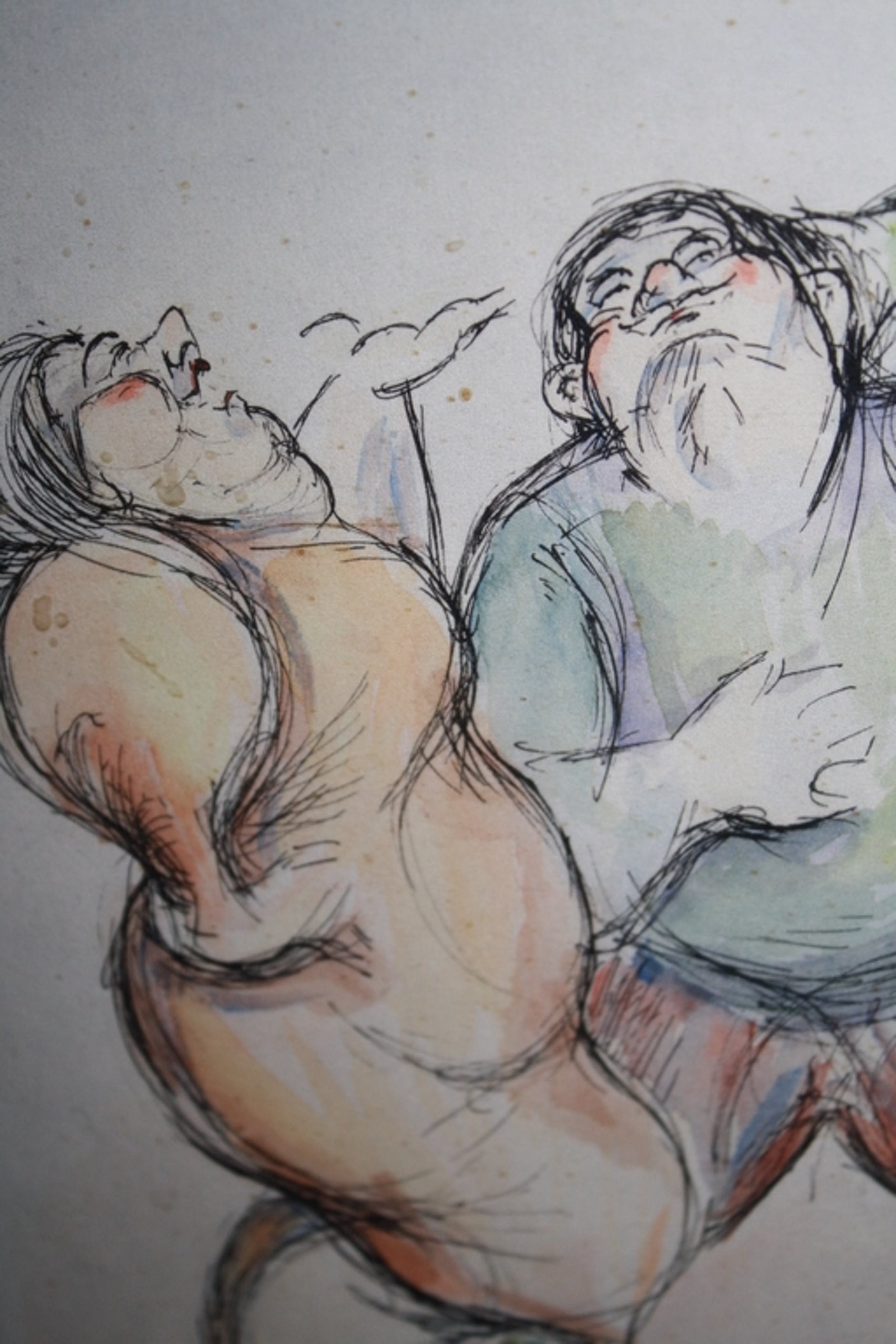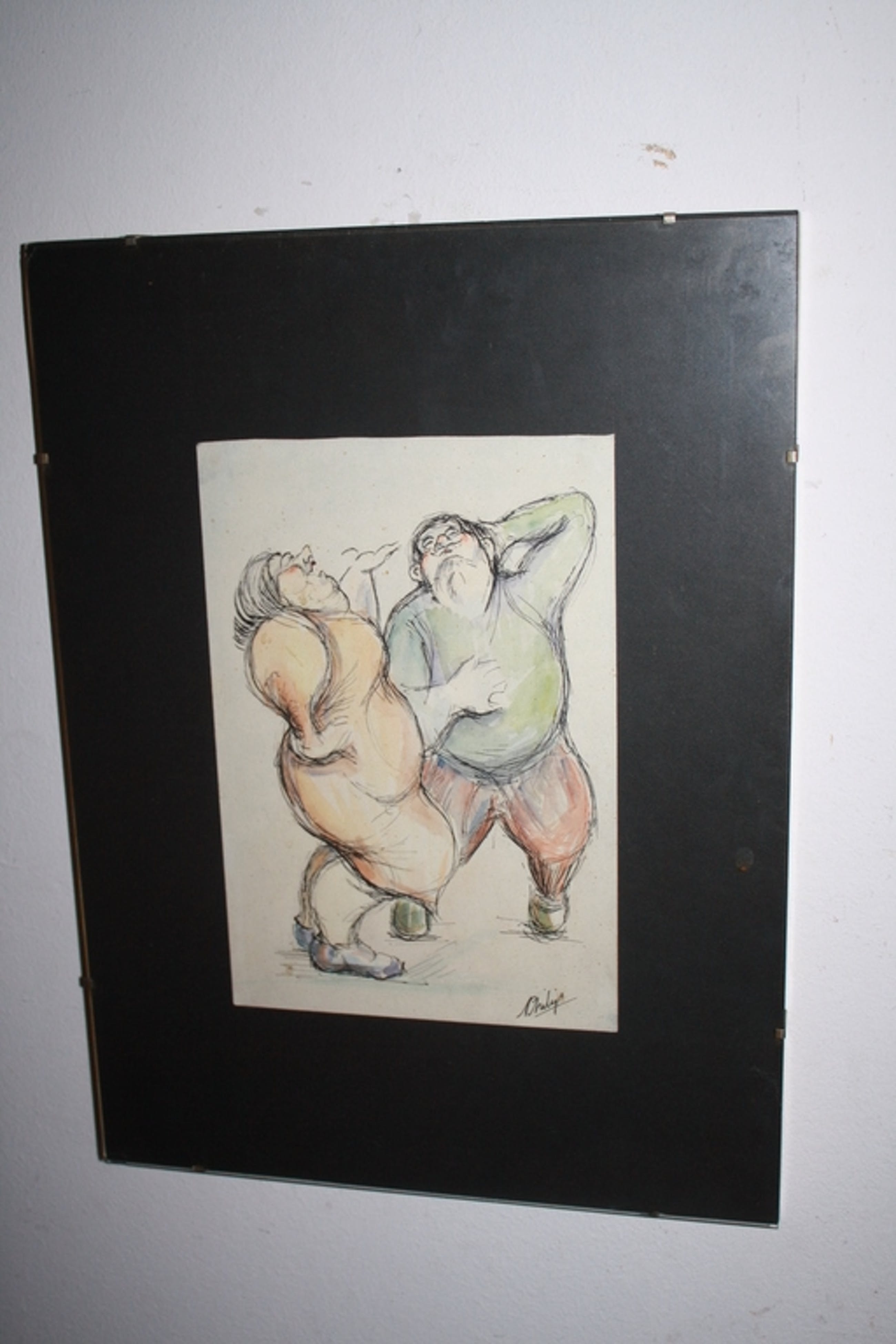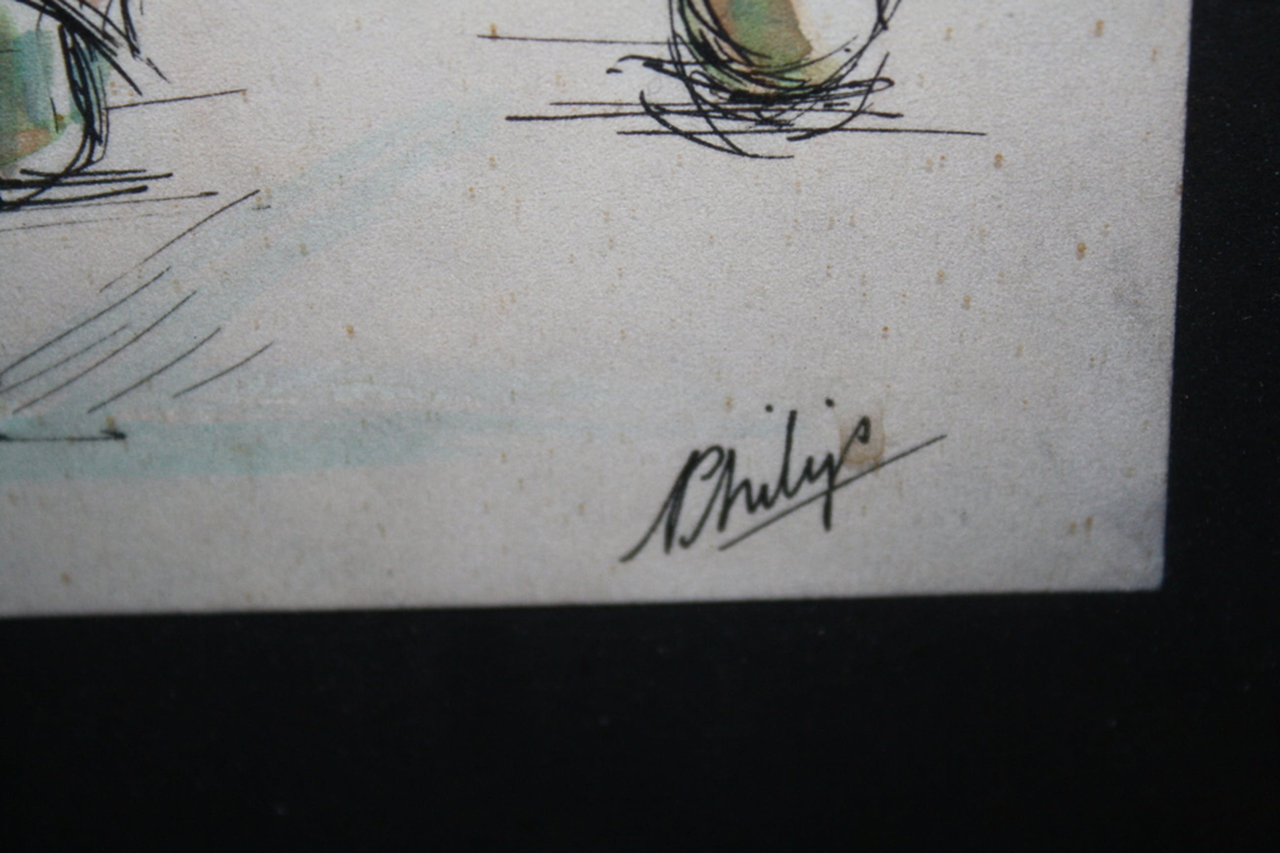 oude pentekening ingekleurd in de maat 16 x 24 cm