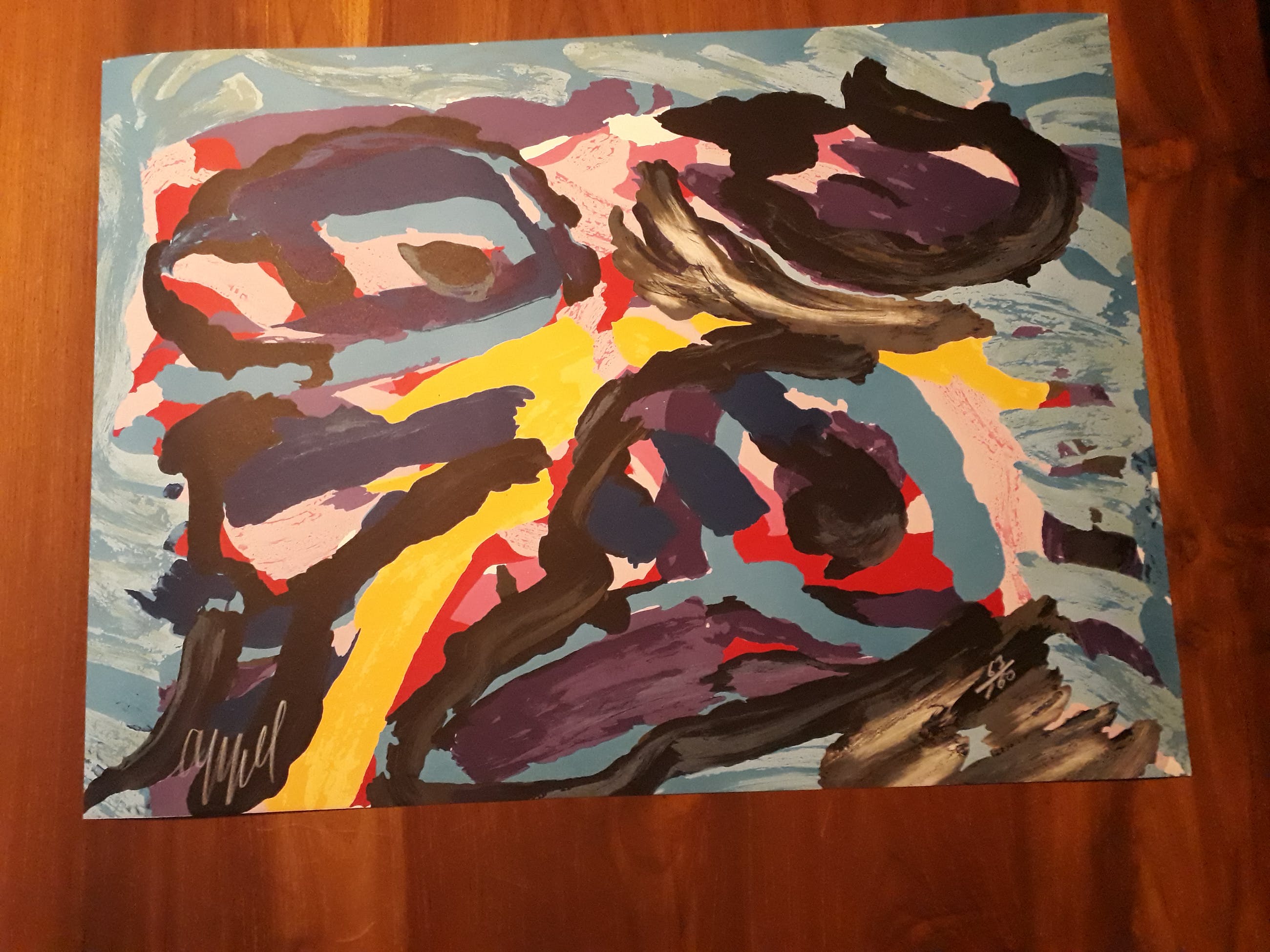 Fraaie in werkelijke nieuwstaat verkeerde zeefdruk van Appel:3 faces into clouds Oplage nummer 61/160 Nog nooit ingelijst geweest,uiteraard hand gesigneerd en genummerd,heeft altijd plat een een lade gelegen. Wordt aangetekend/verzekerd verzonden plat verpakt niet opgerold dus