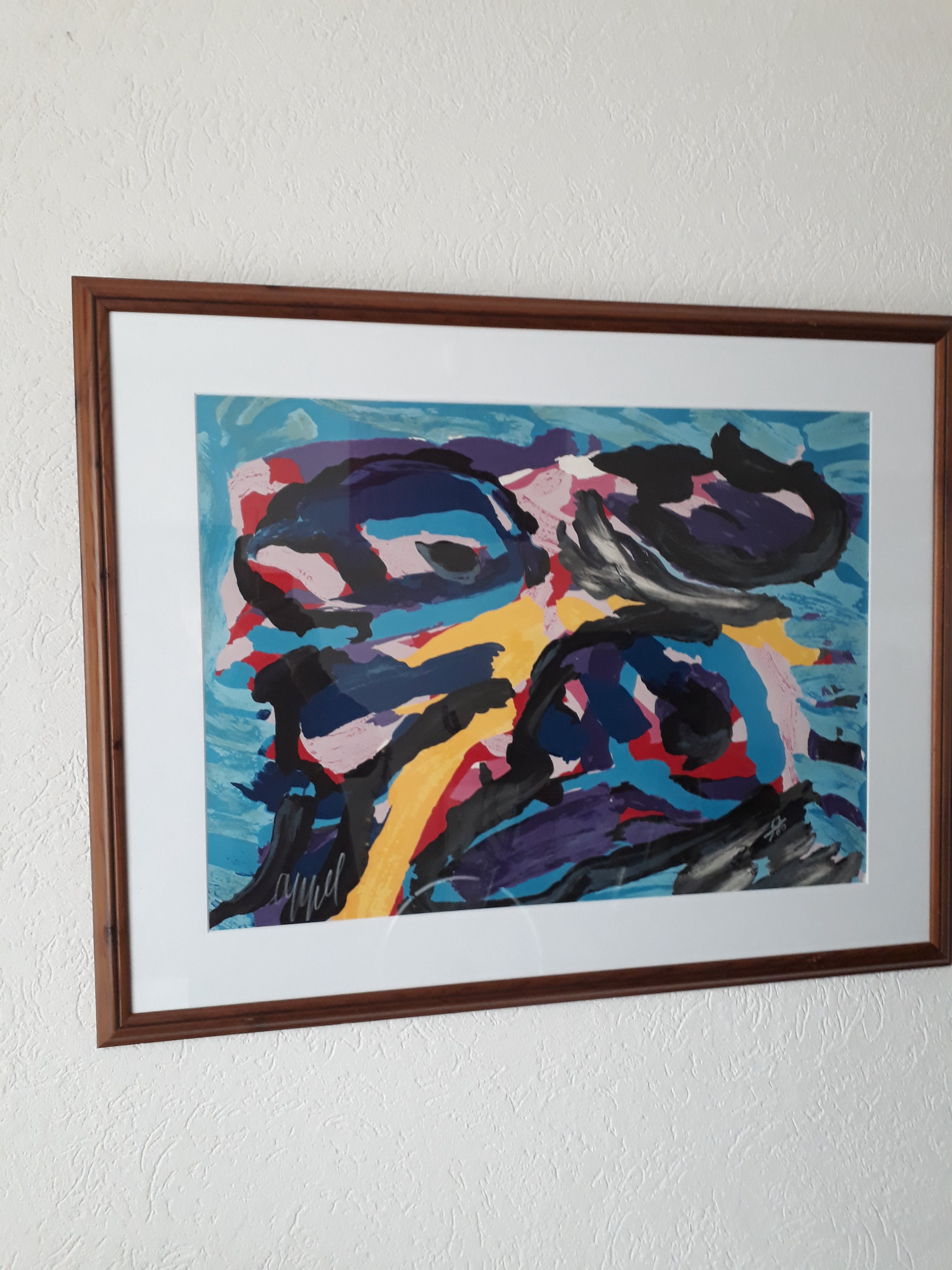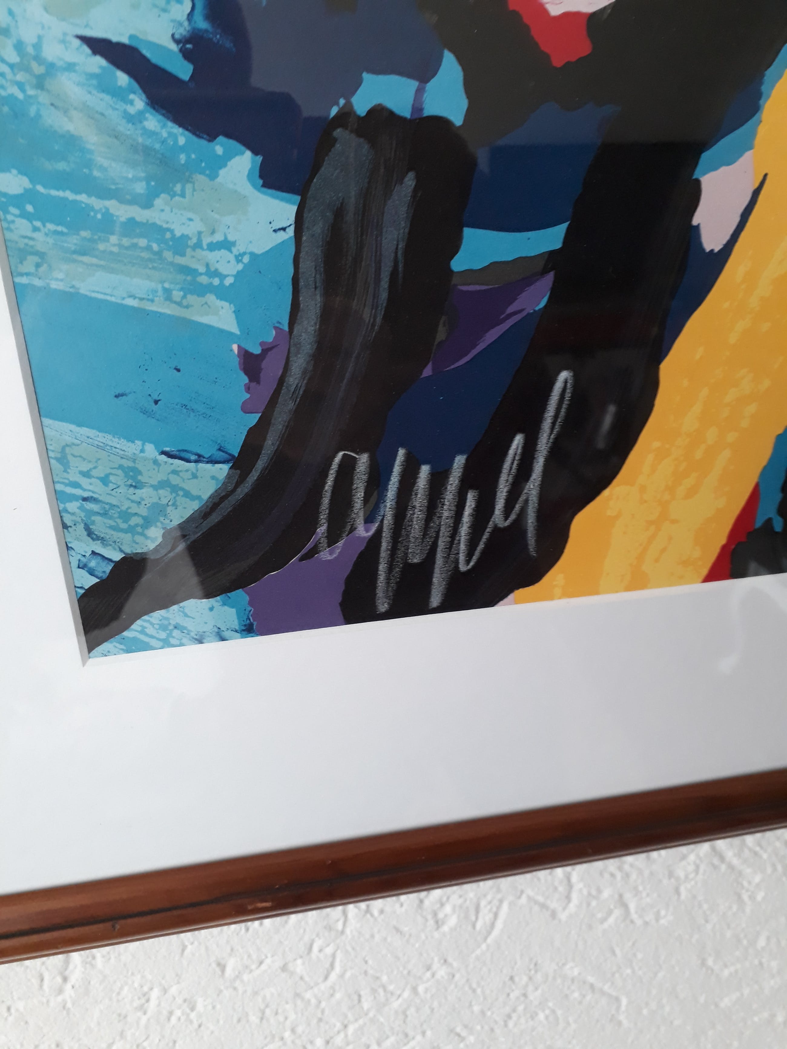 Fraaie in werkelijke nieuwstaat verkeerde zeefdruk van Appel:3 faces into clouds [vol blad zeefdruk,dus zonder randen. Oplage nummer 63/160 ,uiteraard hand gesigneerd en genummerd Wordt aangetekend/verzekerd verzonden.