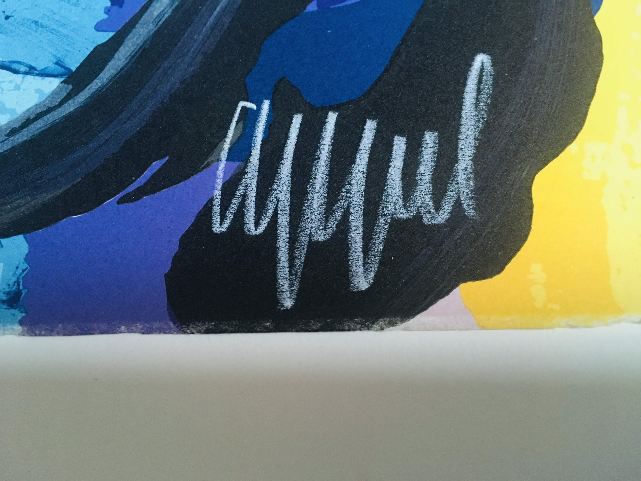 Karel Appel - "Drie gezichten als wolken." Originele kleuren lithografie .