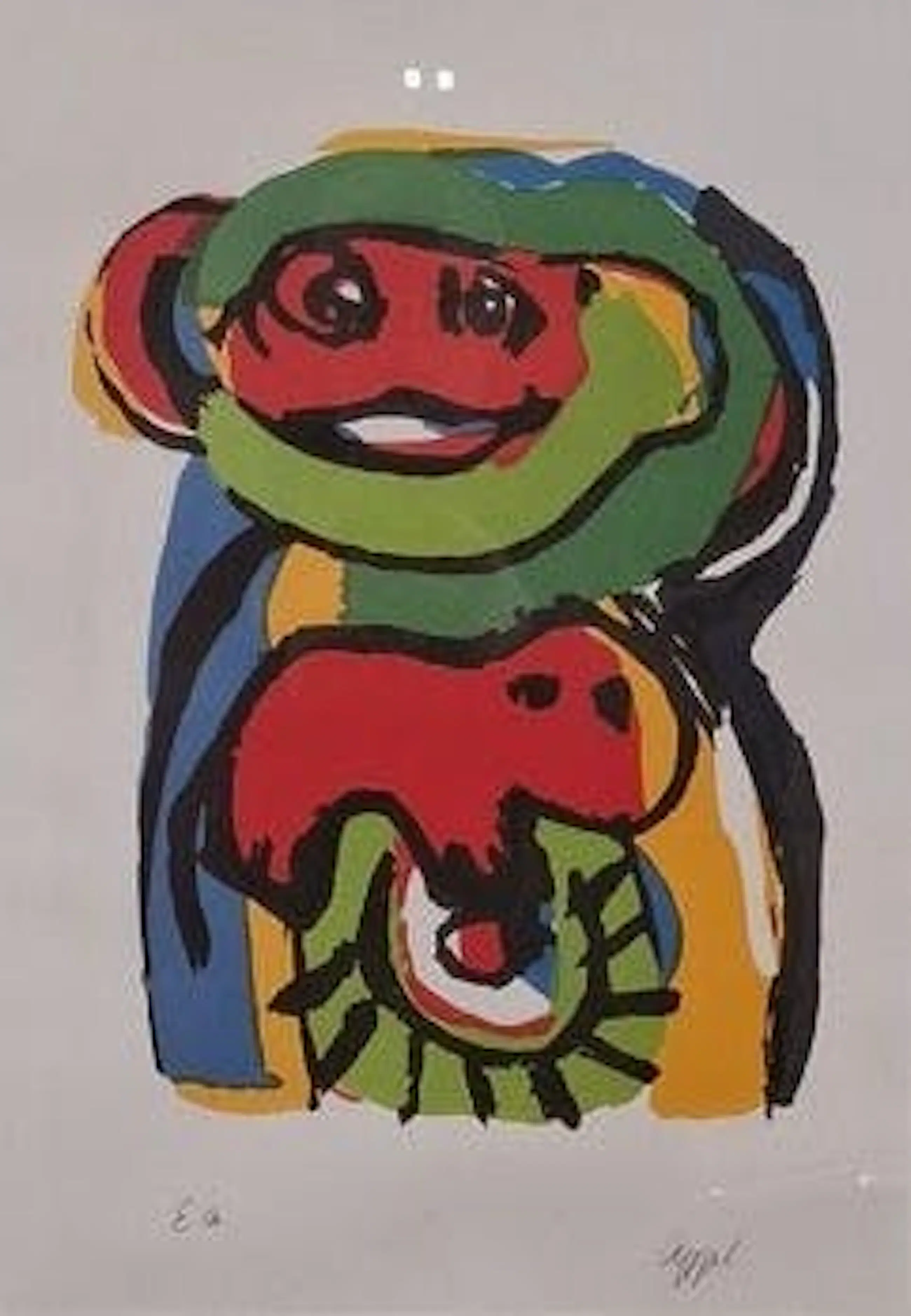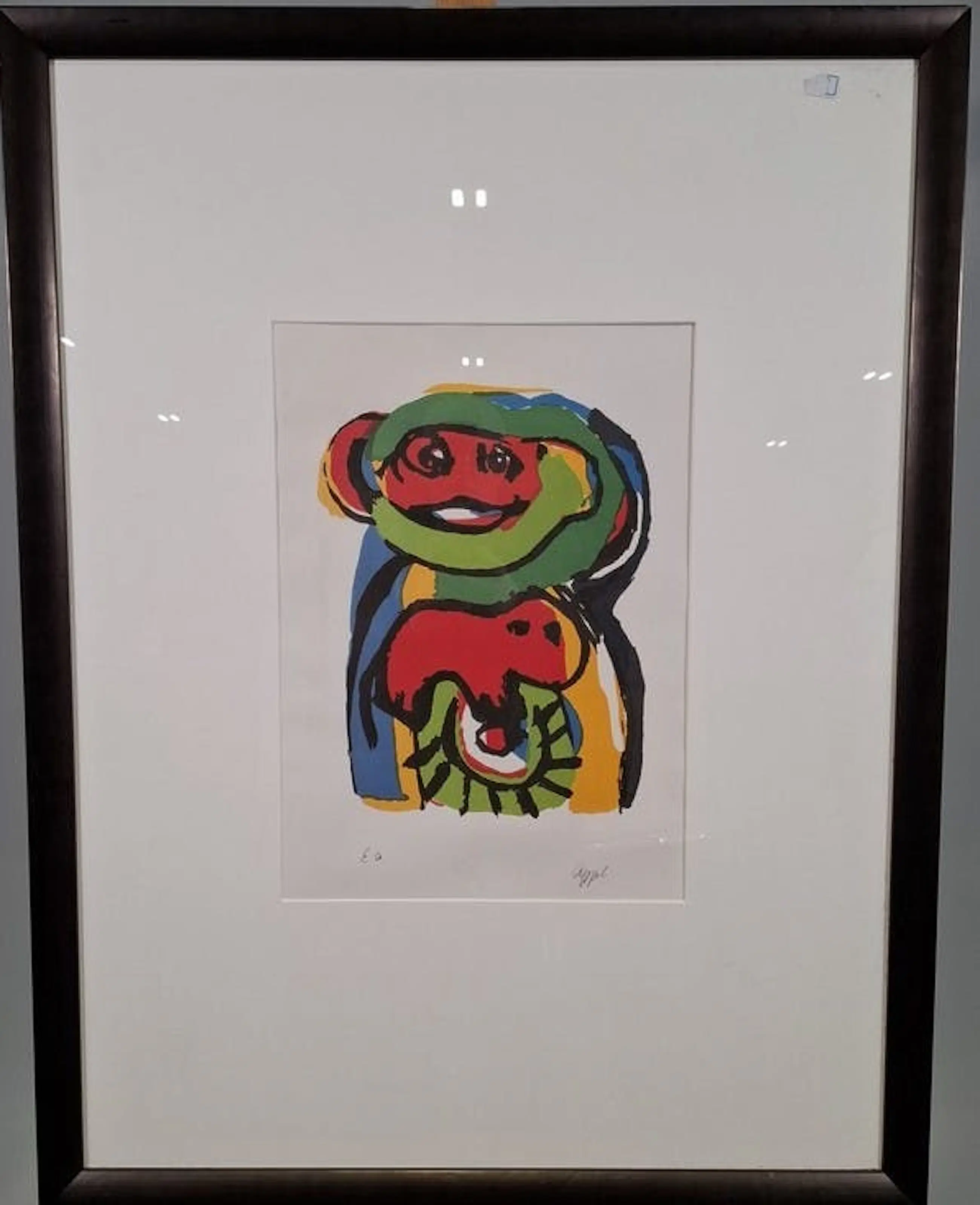 Zeefdruk met de titel 'Aap' van de Nederlandse CoBrA-kunstenaar Karel Appel.