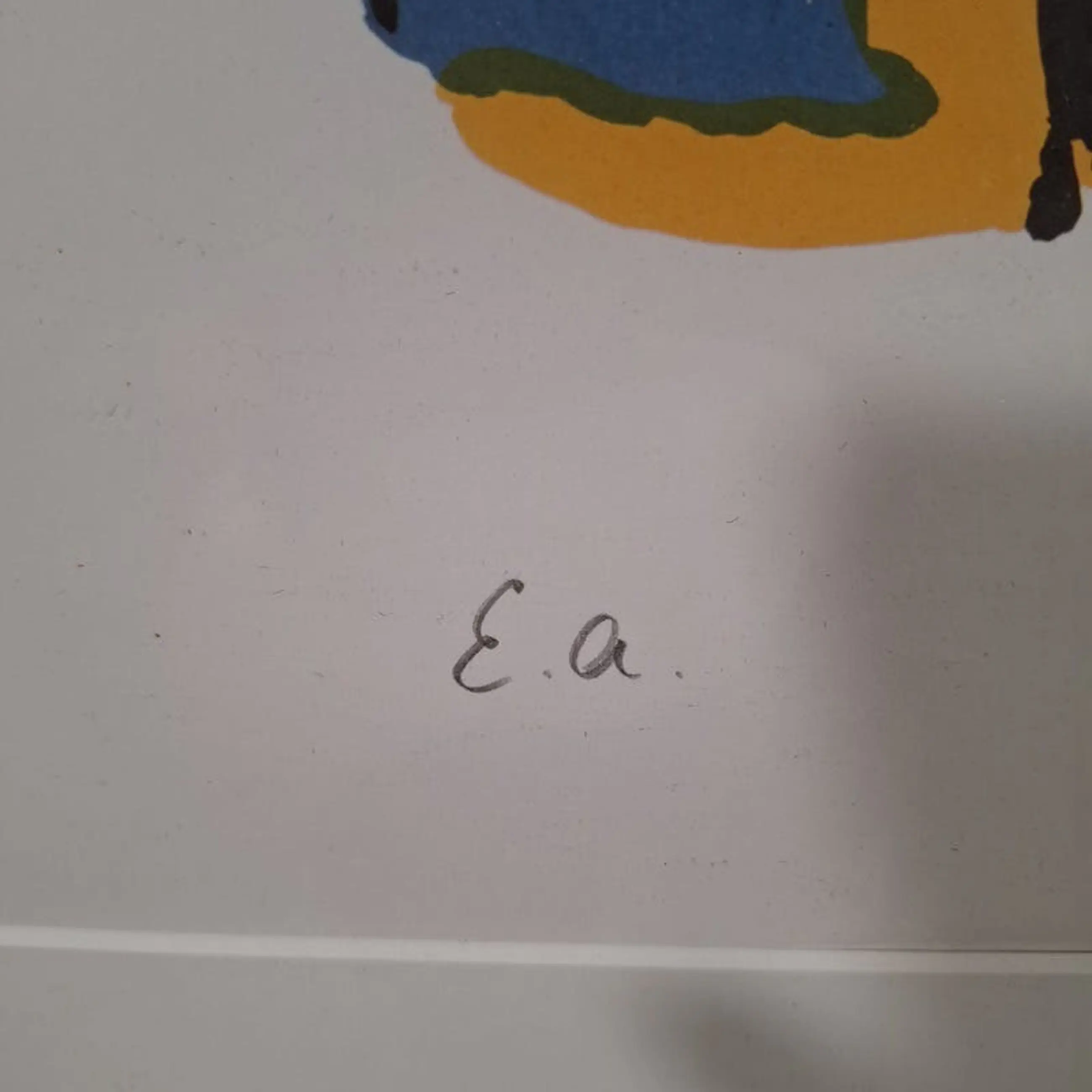 De zeefdruk op geschept papier uit 1974 is met de hand in potlood gesigneerd. Het is een A.E. (Épreuve d'Artiste) exemplaar. De zeefdruk is ingelijst achter glas met een passepartout in een mooie zwarte houten lijst. De afmetingen van de lijst zijn (h x b x l) 107 x 3,5 x 81 cm. De afbeelding is 52 x 37 cm.