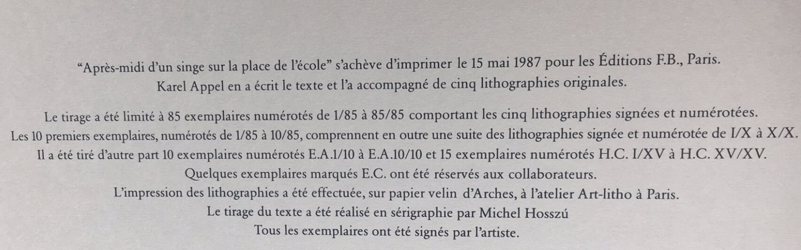 Deze litho komt uit een portfolio met in totaal vijf litho’s die ook in de collectie van het Stedelijk Museum in Amsterdam zit. De individuele litho’s zijn op internet te koop voor 2750-2950 euro.