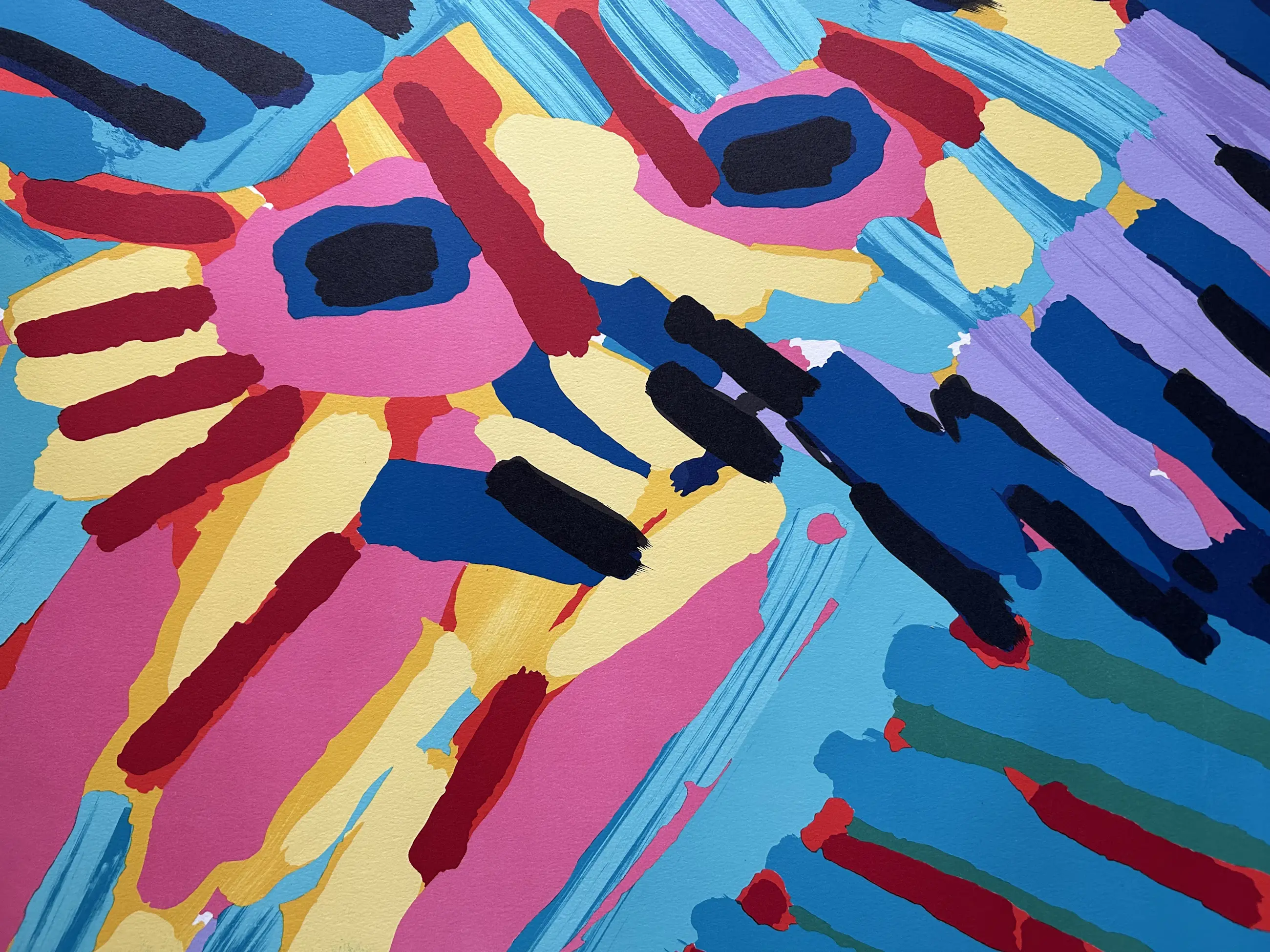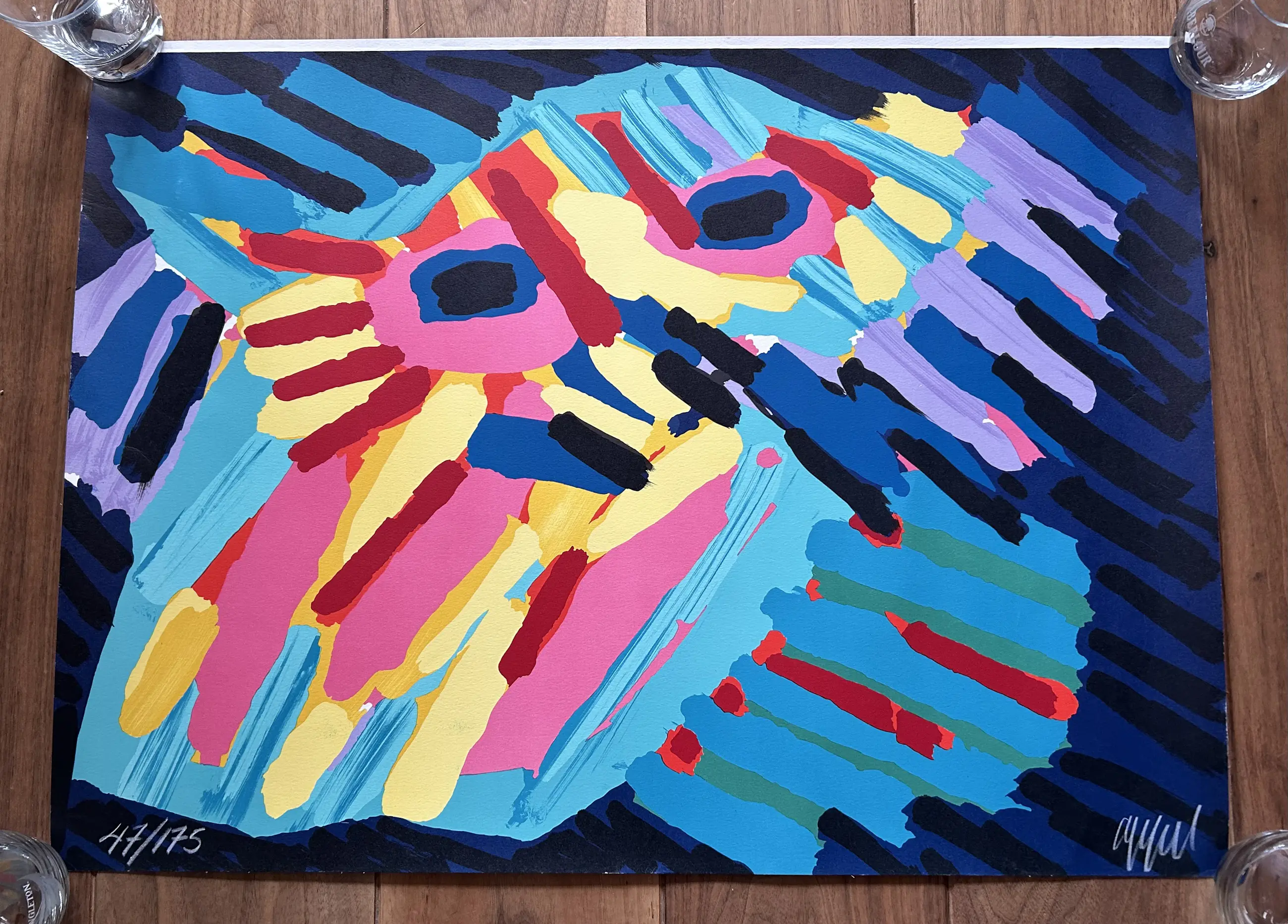 Fraaie kleurenlitho uit 1977 van de beroemde Cobra kunstenaar Karel Appel.