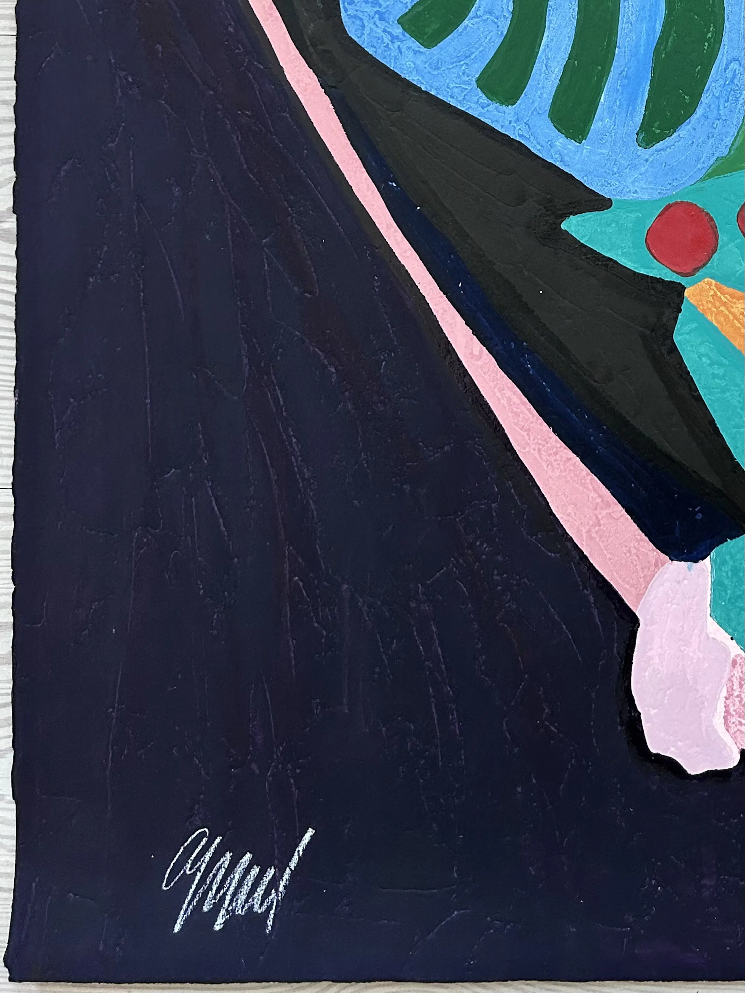 Het werk is door Karel Appel gesigneerd met witte krijt - en heeft het label 'Essai'. Dit betekent dat het werk een test versie was - deze werden meestal door de artiest zelf gehouden of bijvoorbeeld als geschenk aan de drukkerij gegeven. De verkochte editie is gepubliceerd in oplage van 130 stuks. Het 'Essai' label maakt dit werk dus extra uniek.