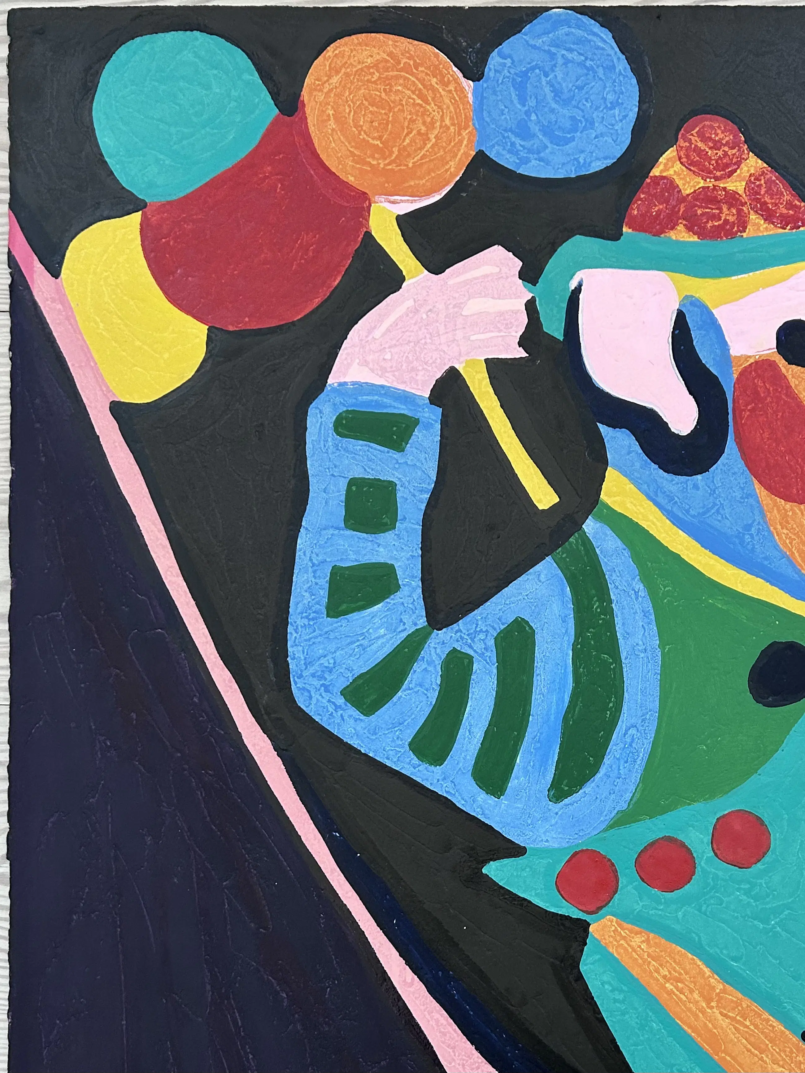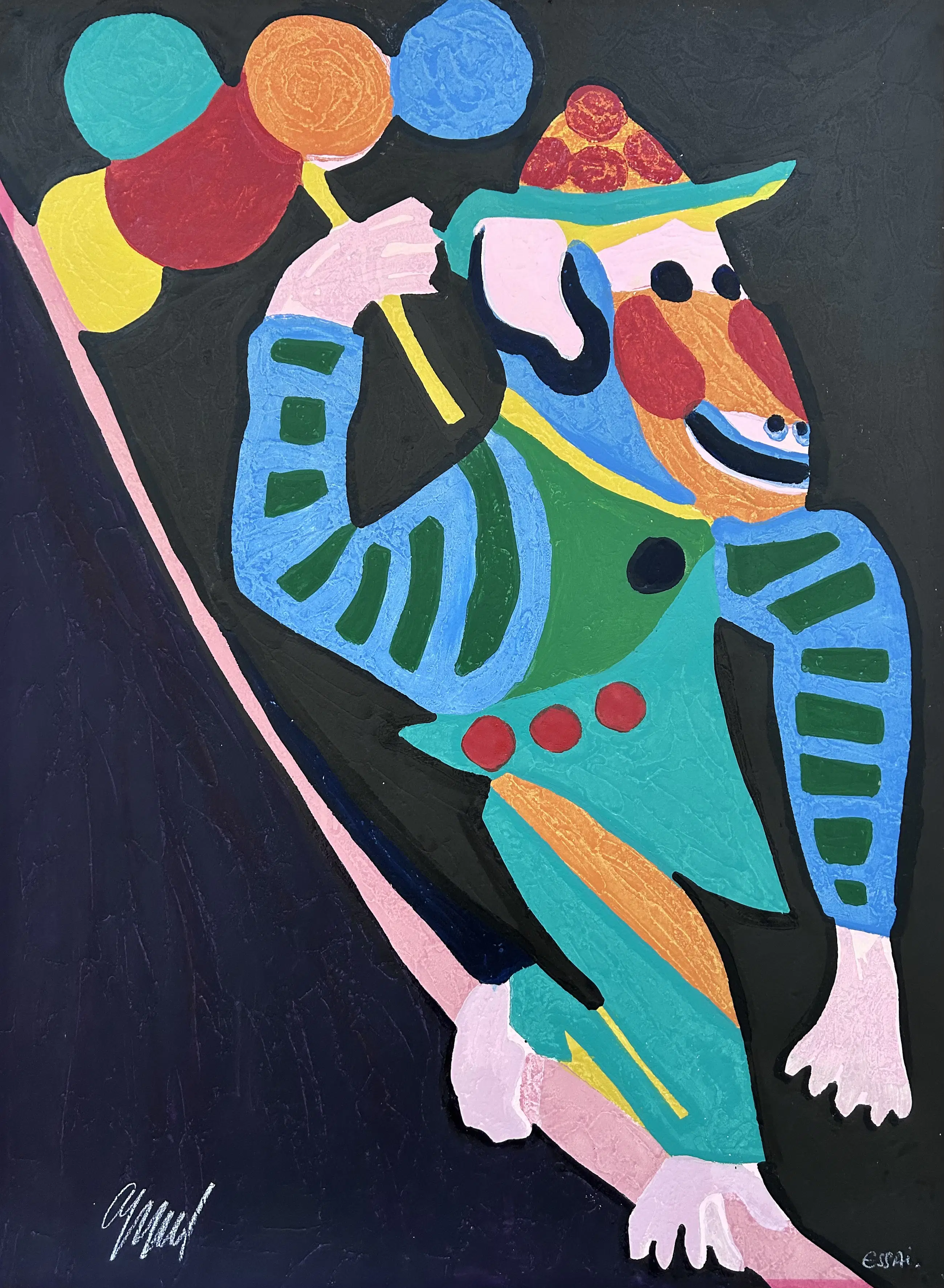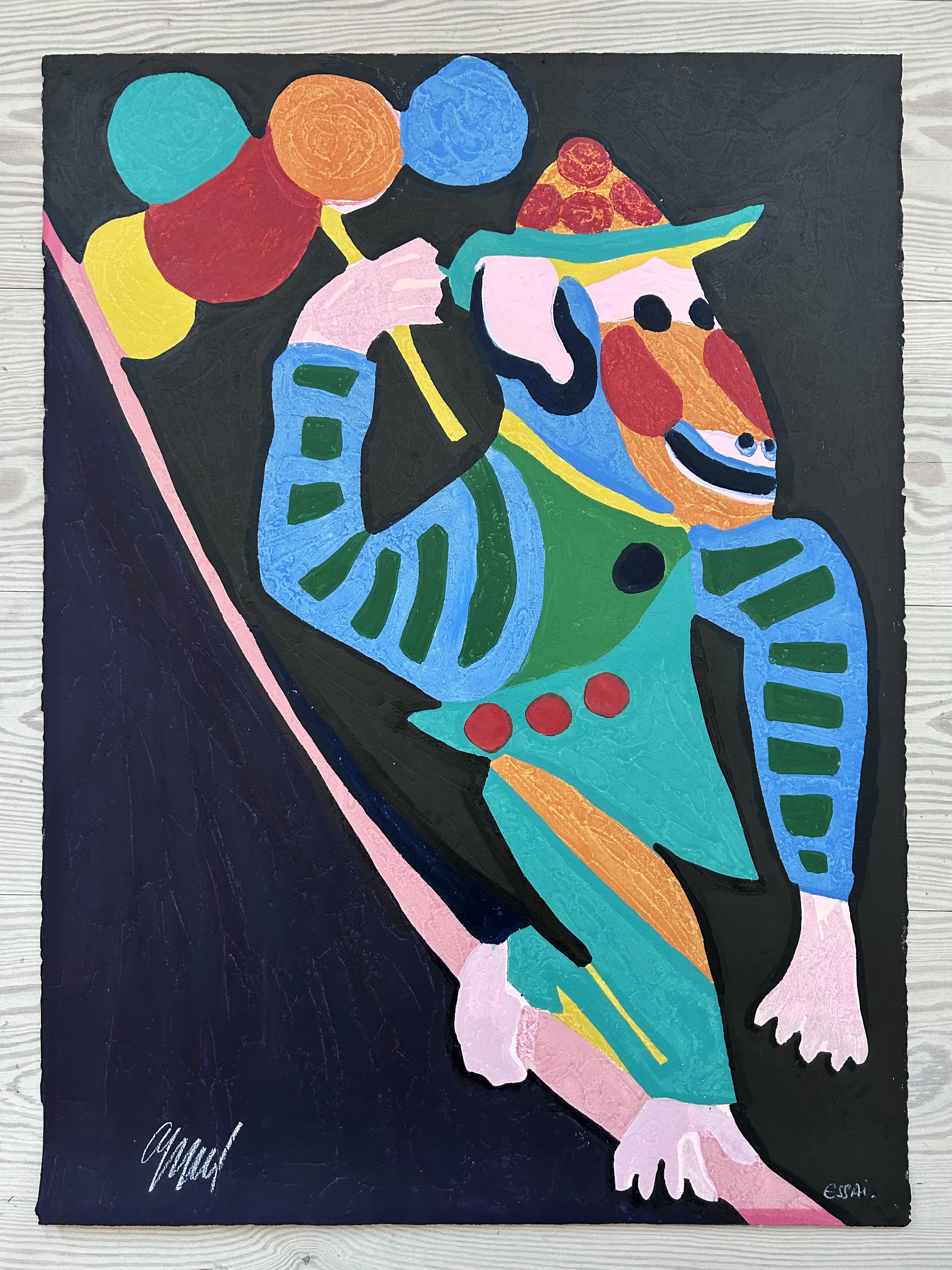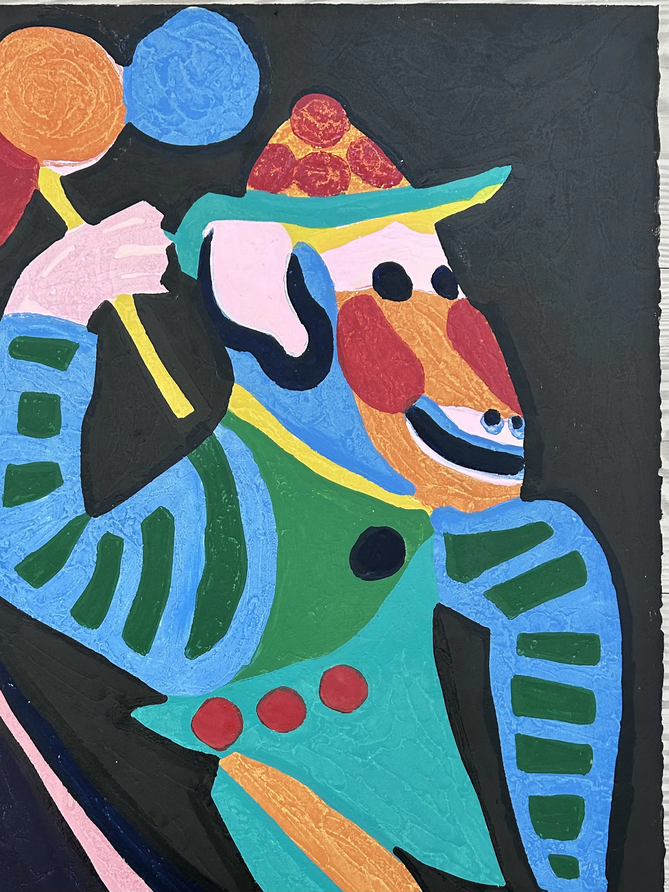 Een prachtig werk van Karel Appel uit de beroemde Circus serie met de titel 'Crever l'Espace, Enjamber le Temps'- wat Frans is voor ‘Breek door de ruimte, spring door de tijd’.
