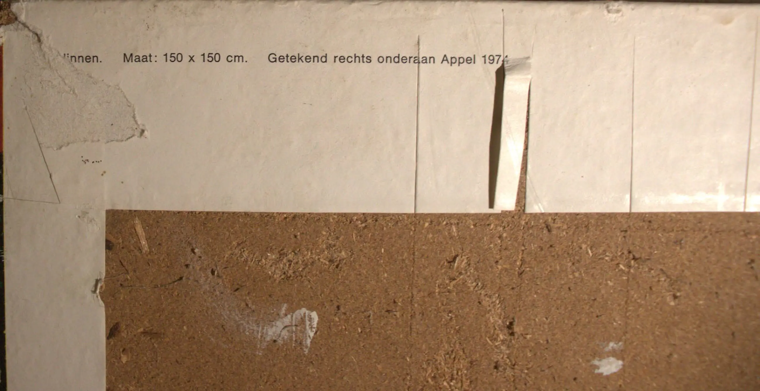 Het werk verkeert in goede staat. De zeefdruk is oningelijst en vertoont lichte leeftijdsgerelateerde gebruikssporen. Op de achterzijde bevinden zich titel- en productielabels. Het werk is gesigneerd in potlood “Appel ’74” en genummerd “9.”