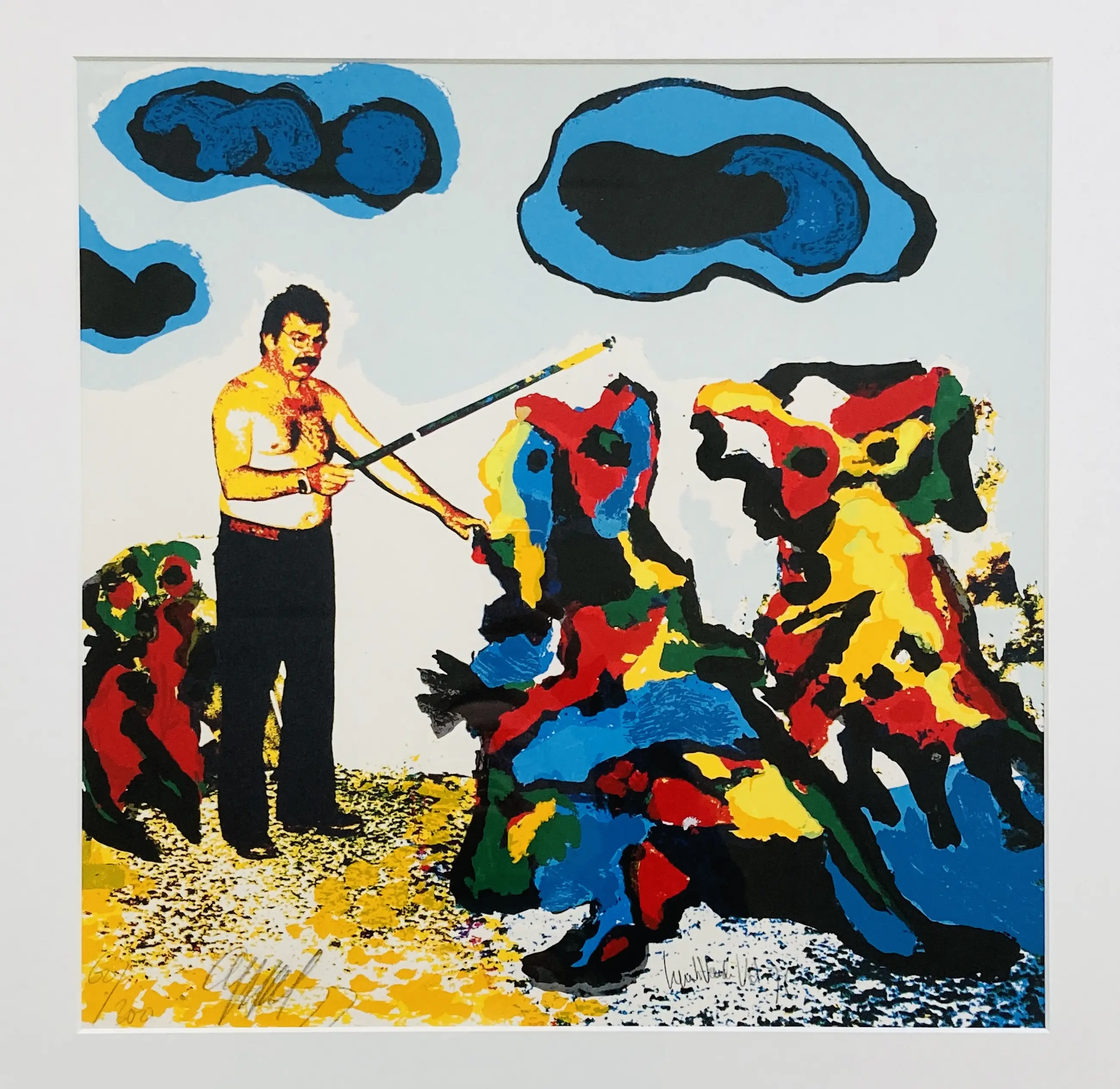 Een prachtige zeefdruk van de Nederlandse kunstenaar Karel Appel (1921 - 2006). Het werk is in samenwerking met drukker Henk van der Vet gemaakt, die het werk ook heeft gesigneerd. De zeefdruk verkeert in uitstekende conditie en komt met een gebruikte lijst met kleine beschadigingen. Niet nieuw maar prima toonbaar.