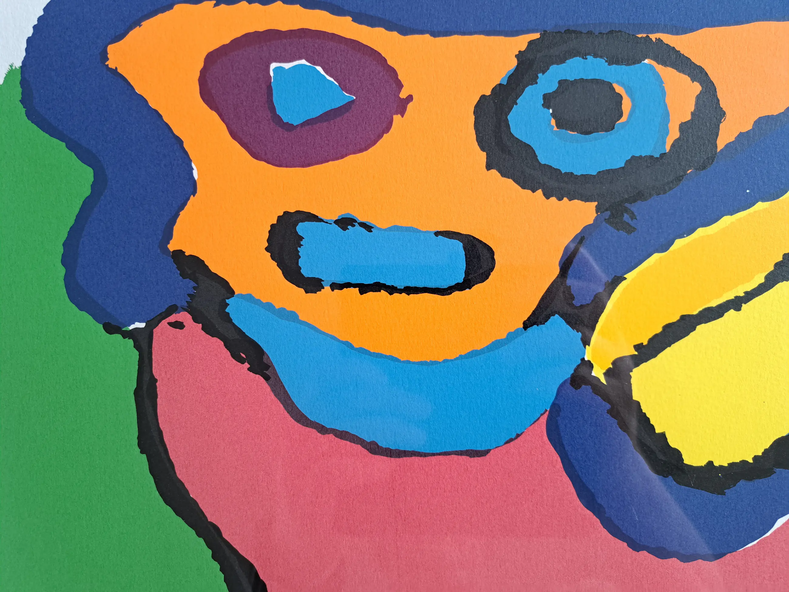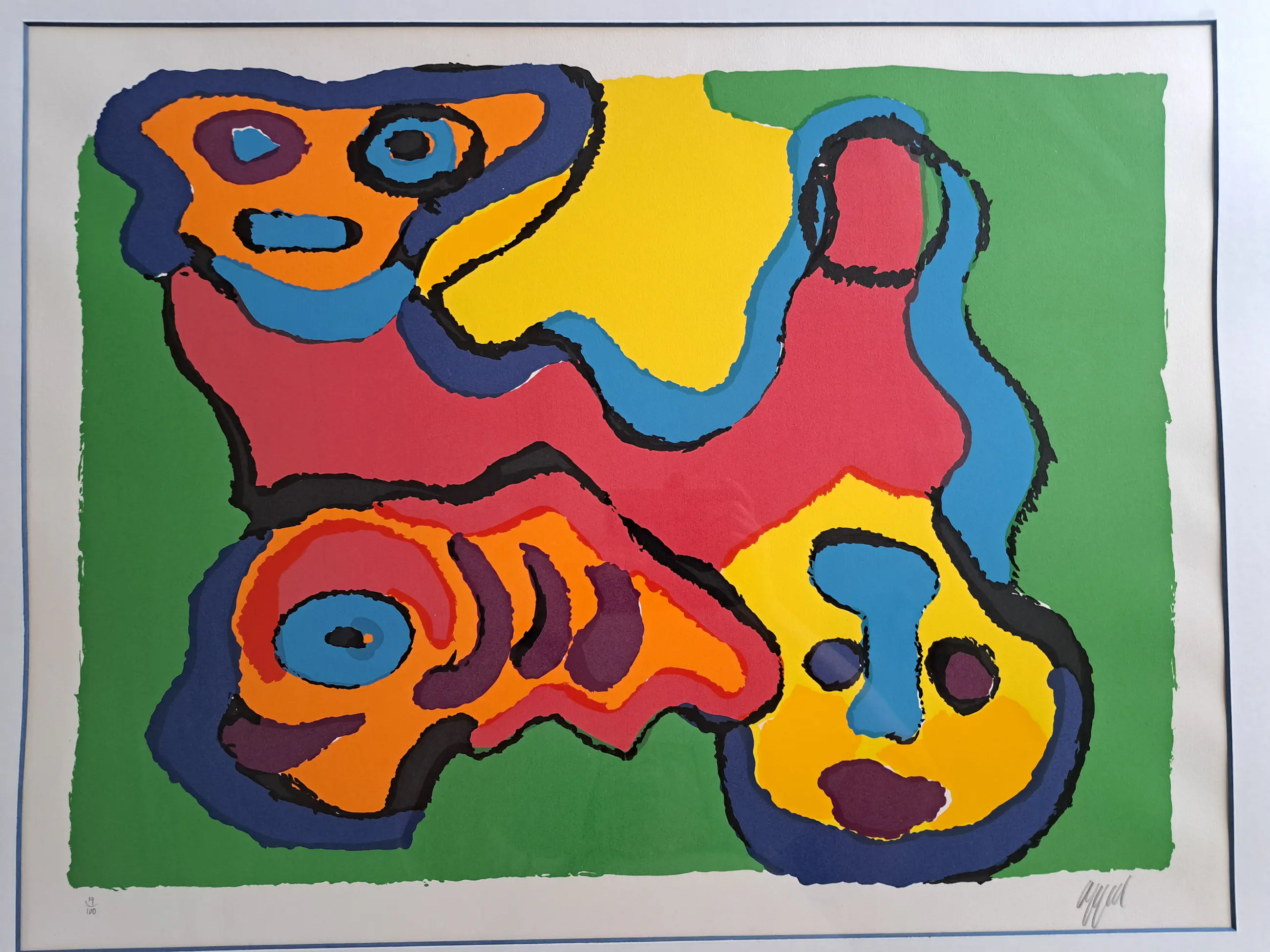 APPEL Karel Drie gezichten Kleurlitho Getekend en genummerd 19/100 Mooie Kleurlitho uit de jaren 70 Op keerzijde sticker firma Van Wersch - Heerlen ENKEL AFHALING in Waregem (België) - GEEN VERZENDING MOGELIJK gezien formaat en inlijsting met glas