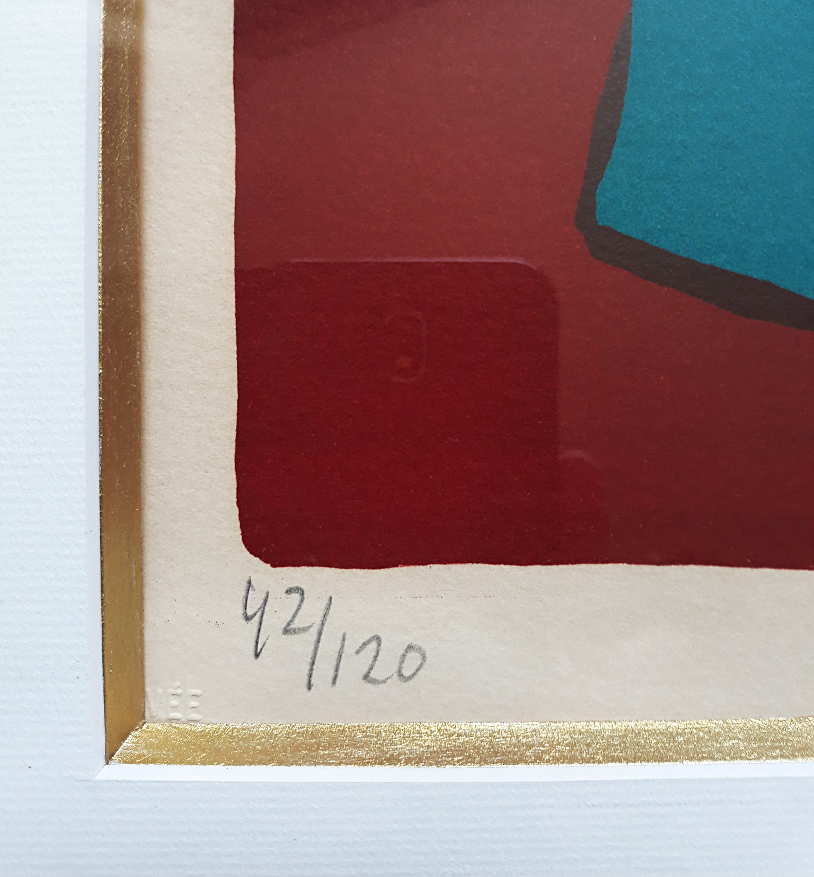 Mooi, karakteristiek werk van Karel Appel uit 1969. Litho op Arches papier, met potlood gesigneerd, gedateerd en genummerd (42/120), met een gedeeltelijk blindstempel zichtbaar (waarschijnlijk “L’Oeuvre Gravée”). Zeer mooi, professioneel ingelijst, achter glas en met luxueus, diep passe-partout (Encadreur; Eduard van Hulsen, Amsterdam). Alles in uitstekende conditie.