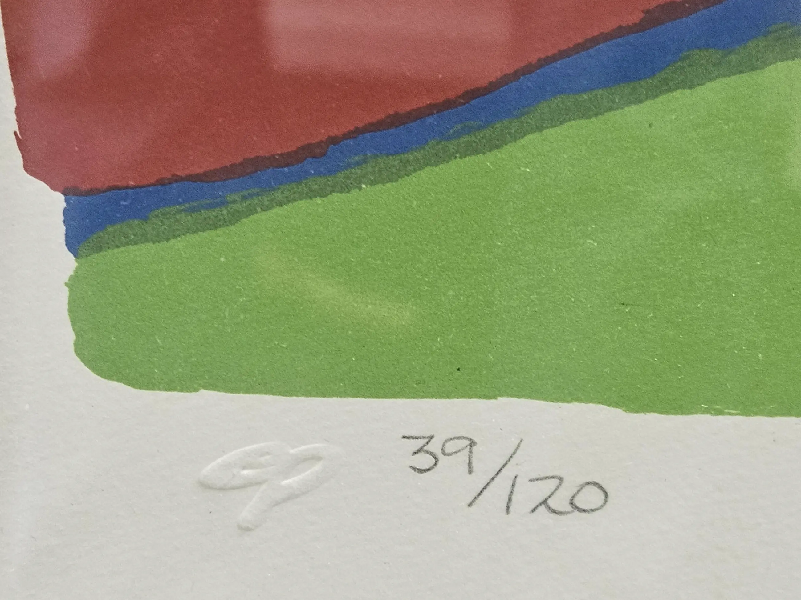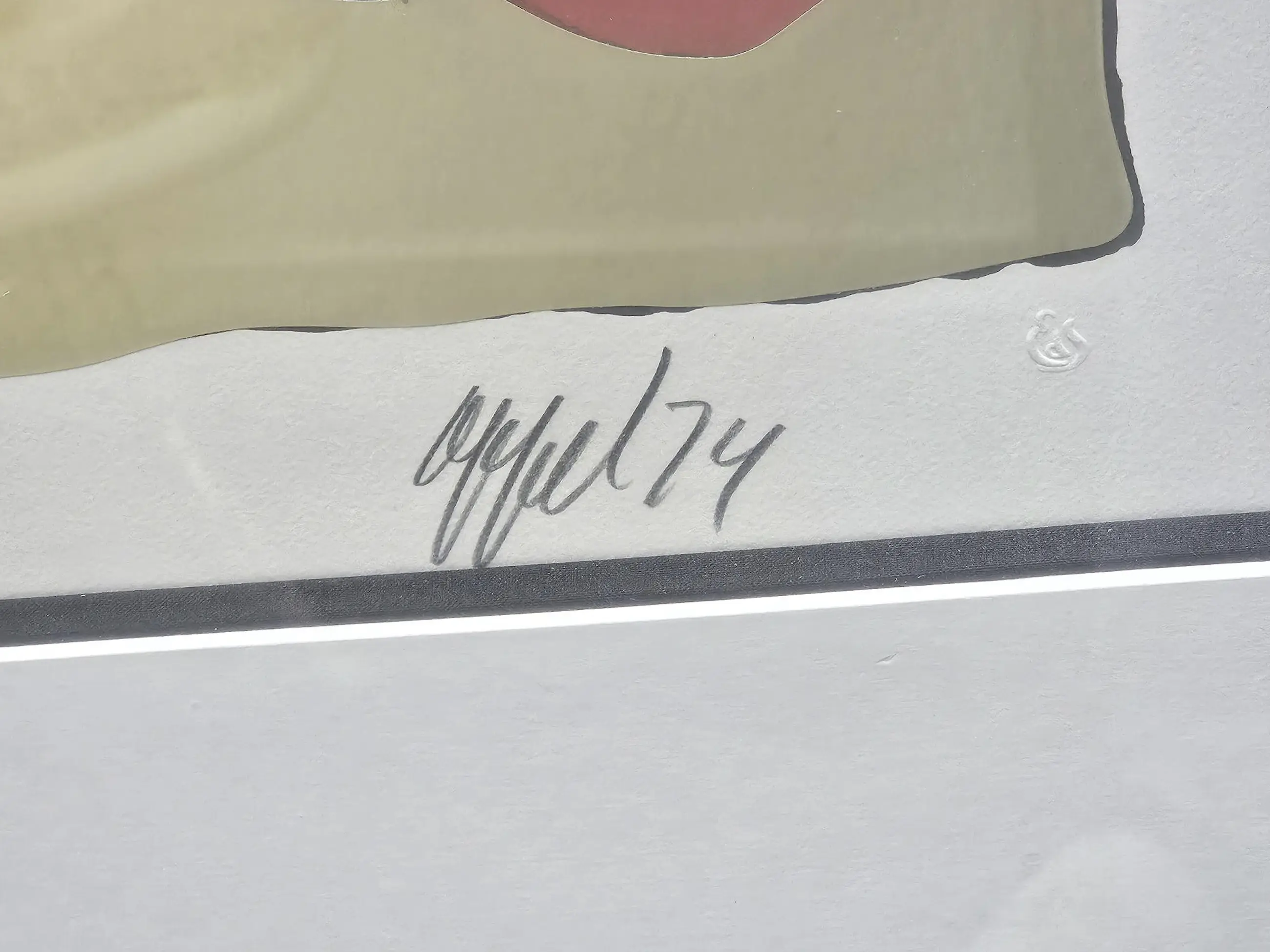 4 van de 6 werken zijn niet alleen zeefdrukken maar half zeefdruk half collage. Zoals ook dit werk (zie foto's) Zeer apart en erg weinig te koop.