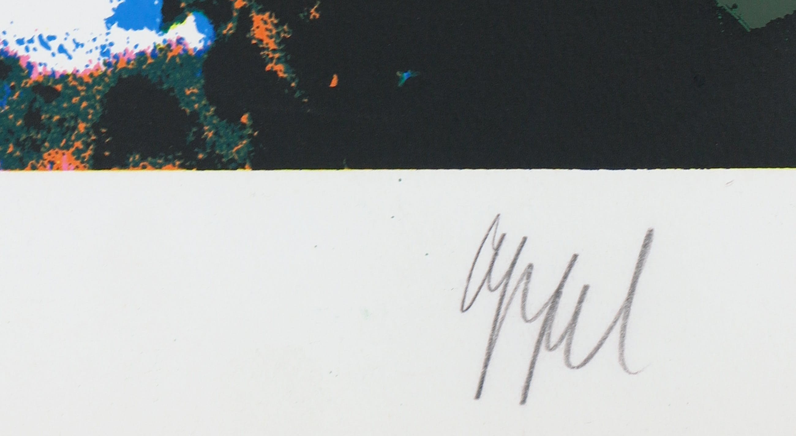 Inclusief de map van de serie! De map heeft geen inhoud, los van het colofon dat er oorspronkelijk bij zat. De zeefdruk is gesigneerd, maar ongenummerd.