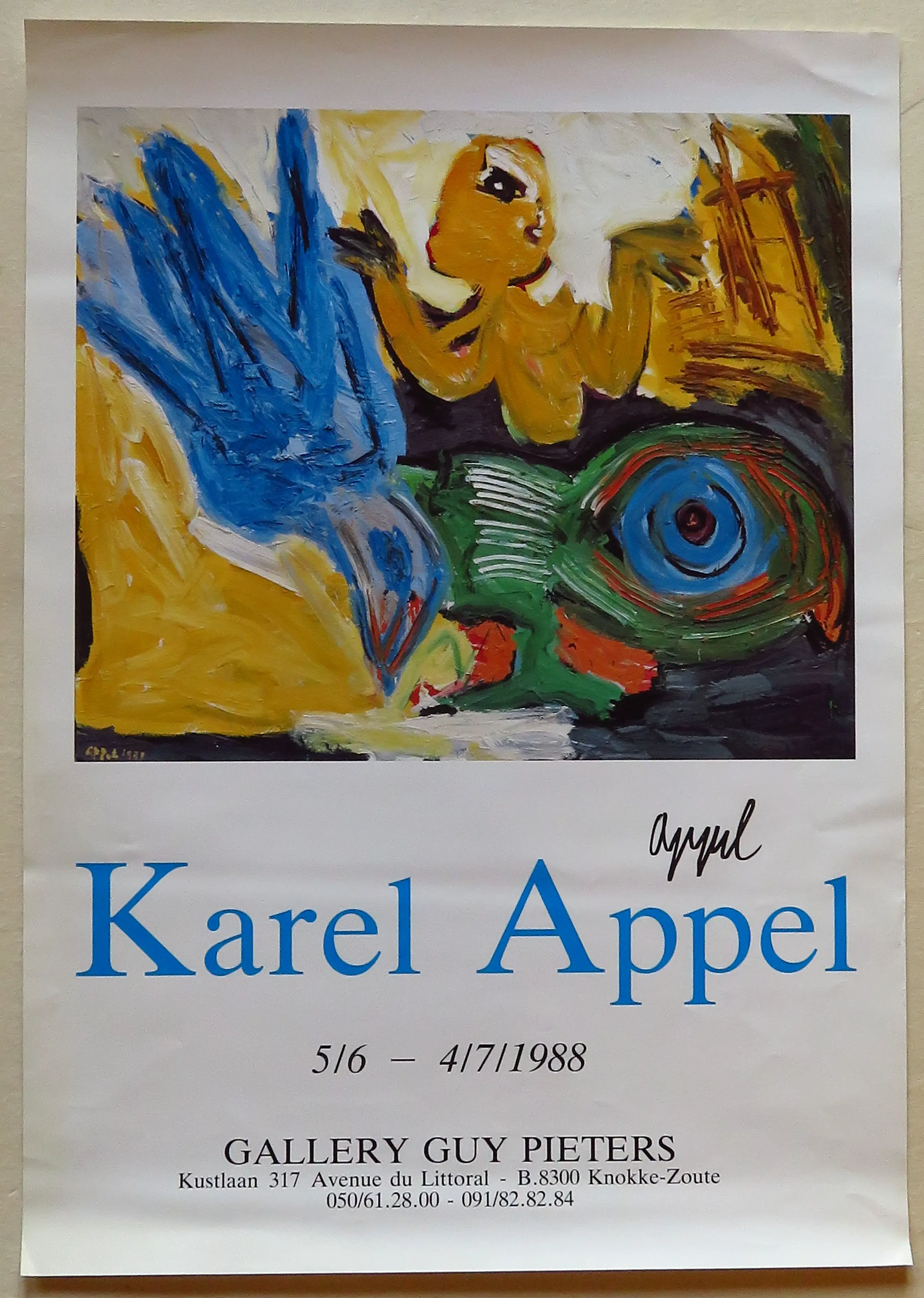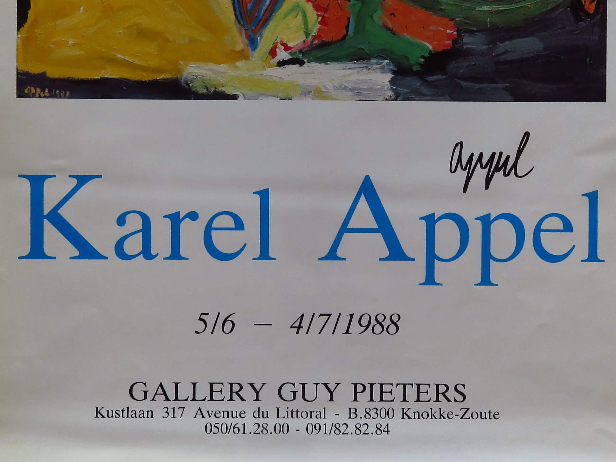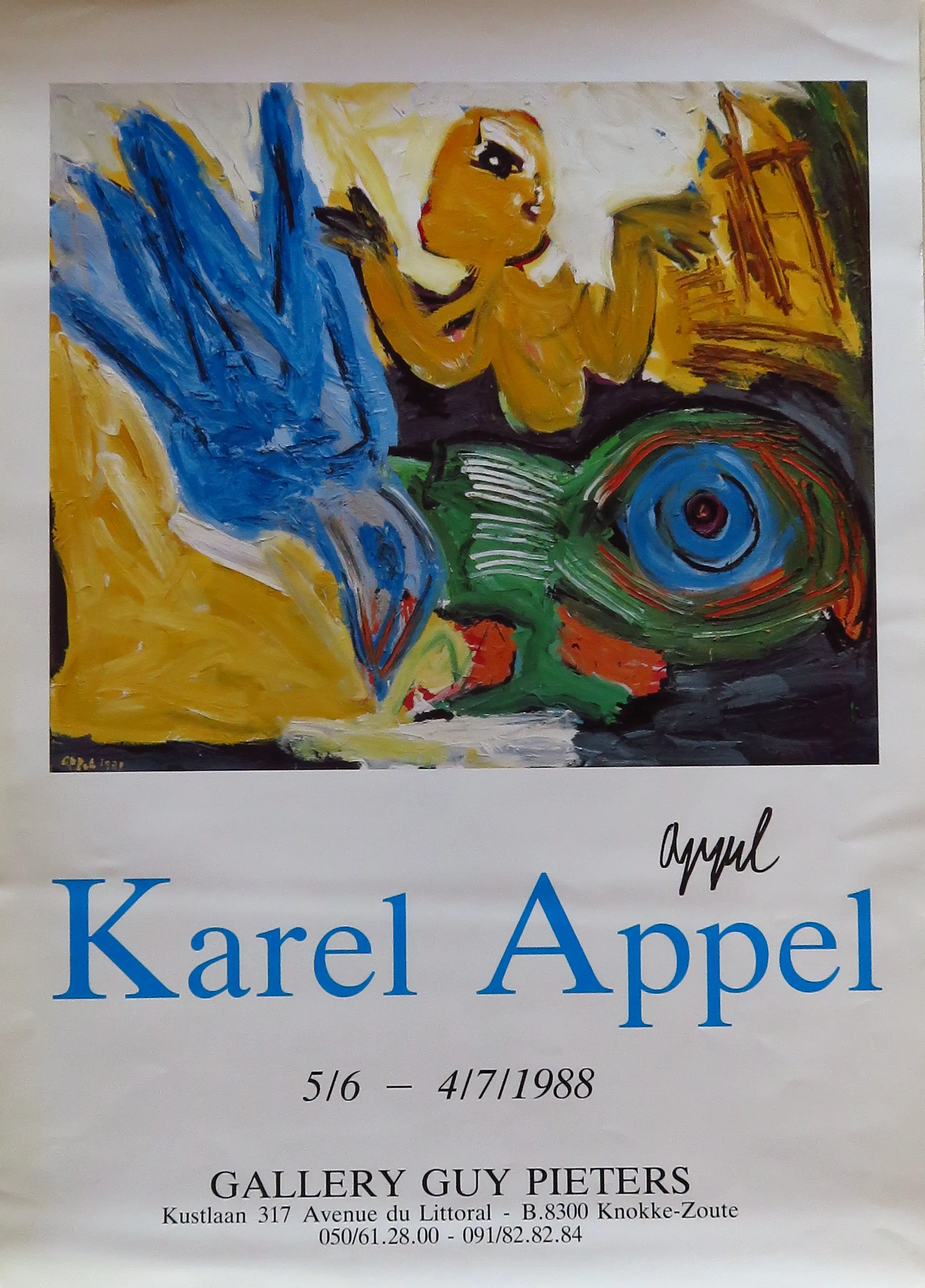 Affiche gedrukt voor de tentoonstelling Karel Appel in de Gallery Guy Pieters,