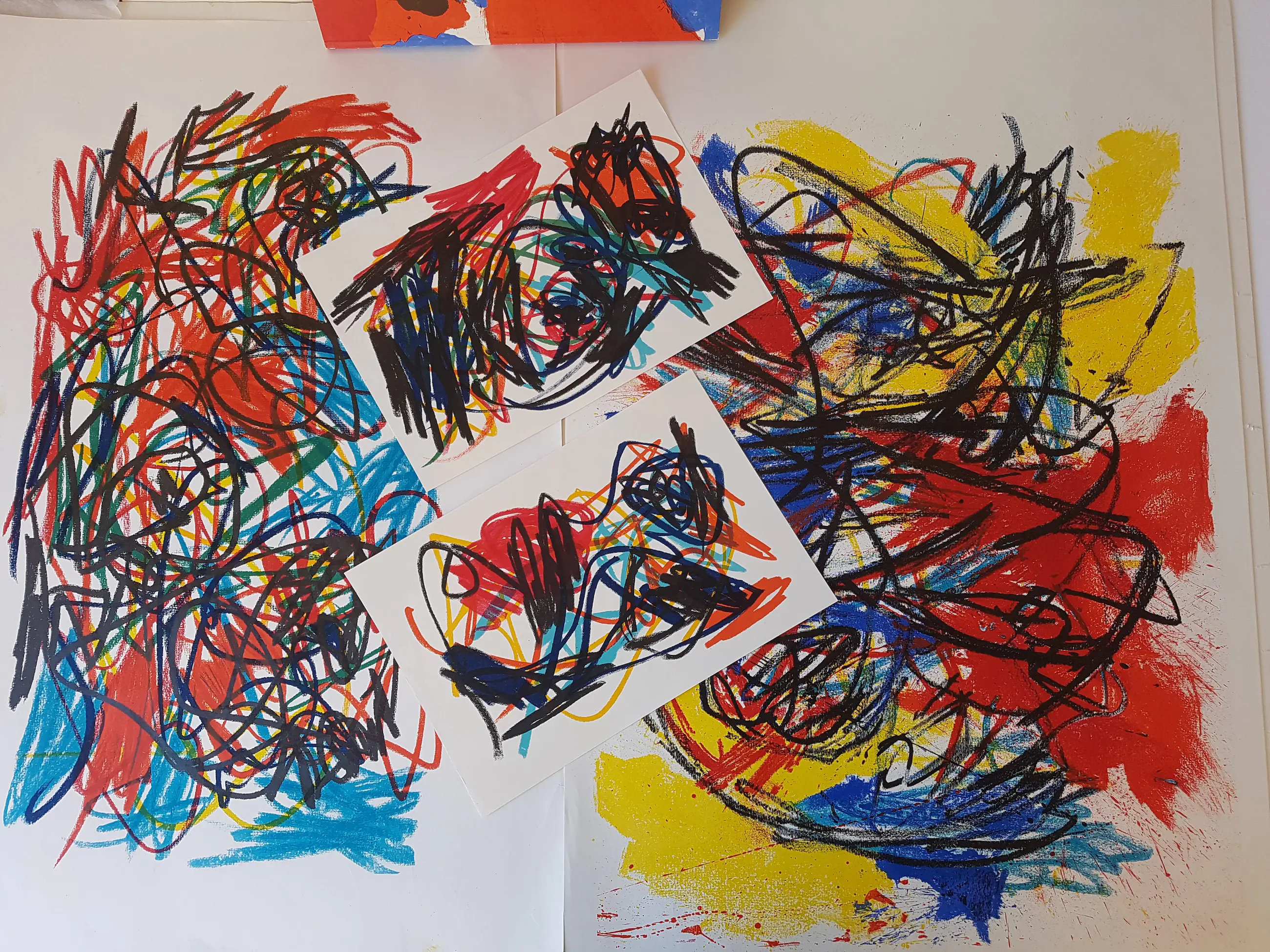Met 2 los ingestoken kleurenlitho's van 26 x 38 cm en twee ongevouwen grote kleurenlitho's van 90 x 60cm