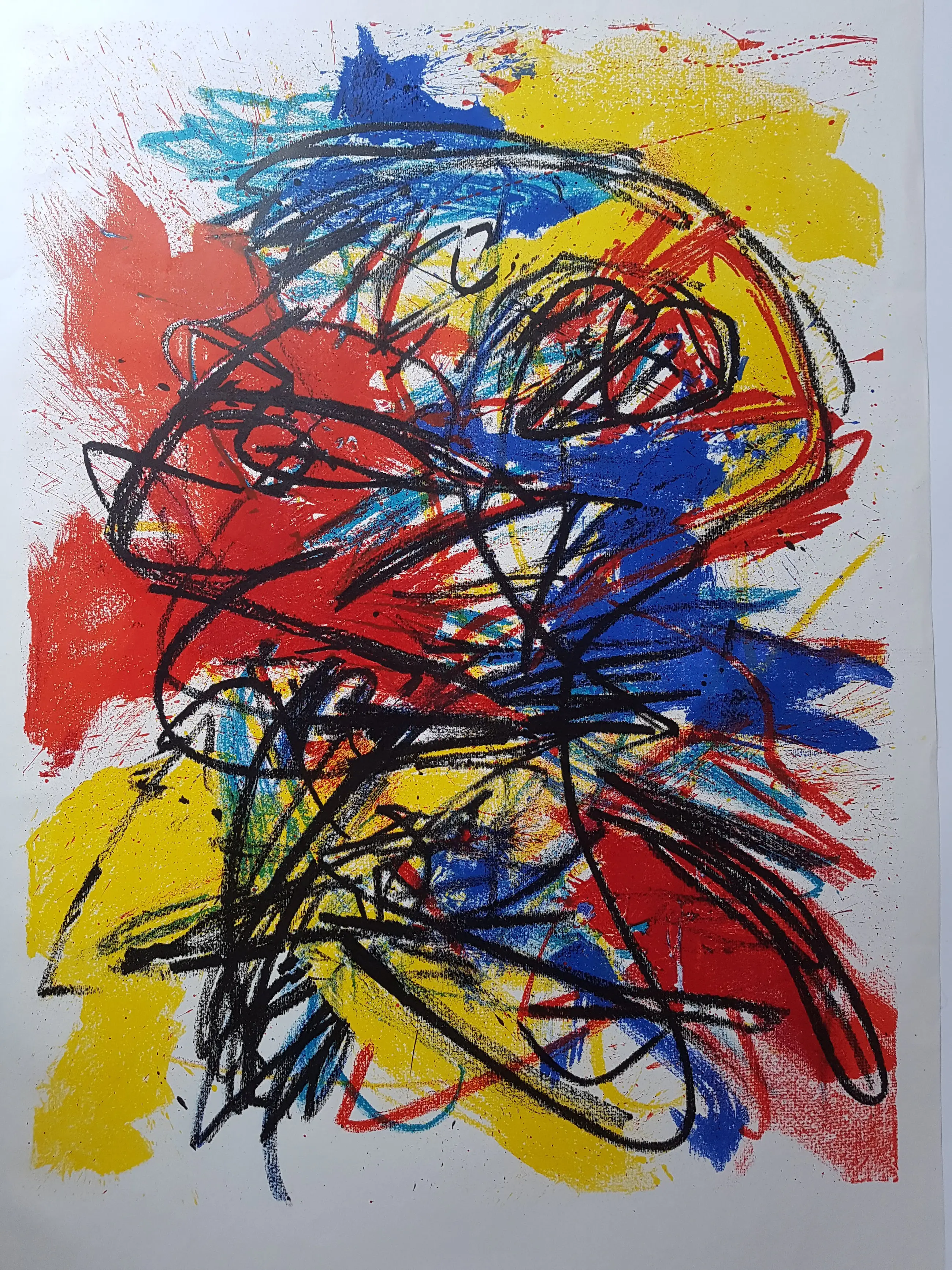 Lithographed cardboard binding in color lithography designed by Appel, signed in the print 39 x 27 cm 48 pages with images by Ed van der Elsken. Contains 2 separately inserted color lithographs measuring 26 x 38 cm and two unfolded large colour lithographs of 90 x 60 cm