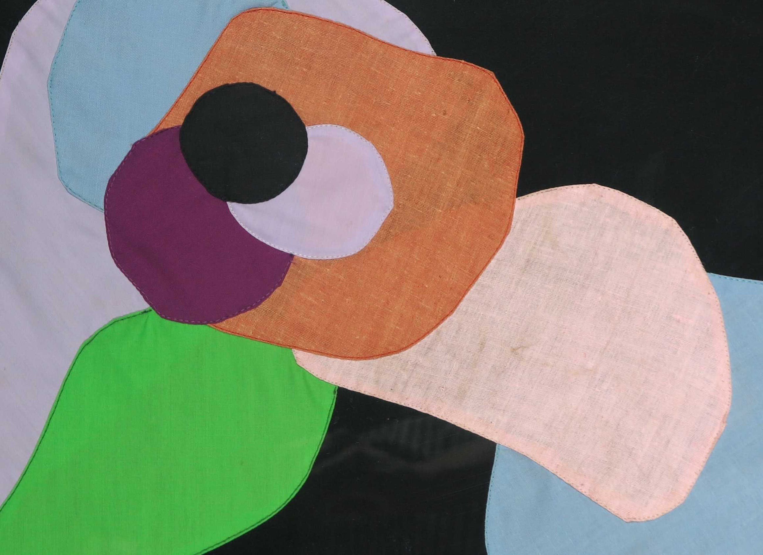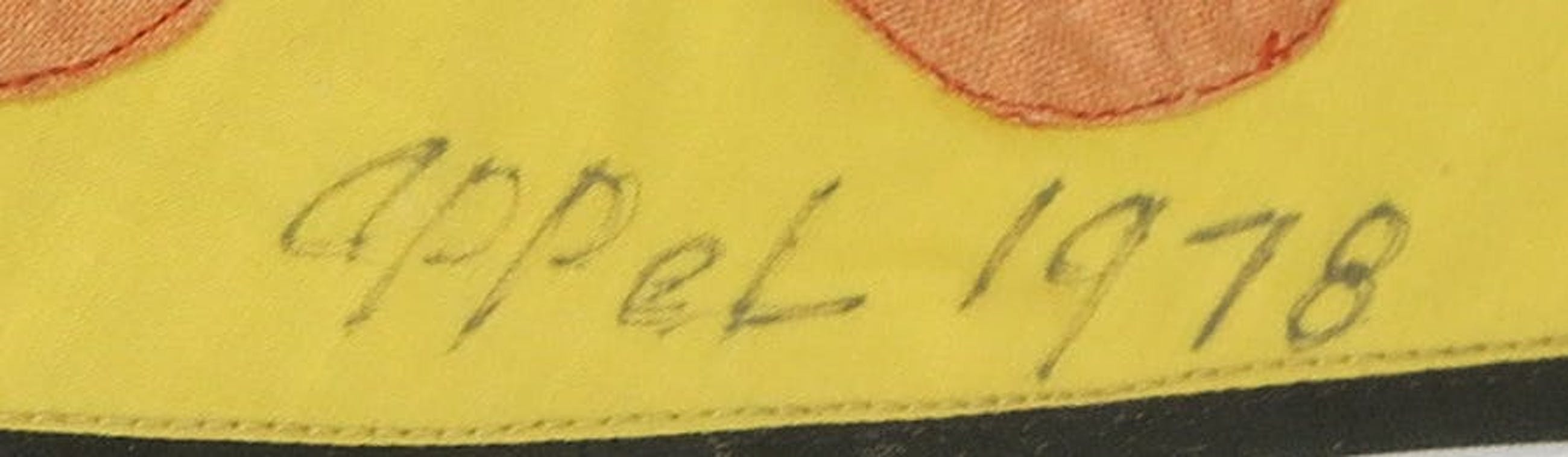 Er zijn slechts enkele van dit soort unieke originele werken in textiel gemaakt. In 1977-1978 woonde Appel tussen New York en Monaco. Met zijn vriendin Henny Sutopo, die hij 5 jaar eerder ontmoette en met wie hij naar Azië en Zuid-Amerika reisde, verkent hij het gebruik van stof in de grafische kunsten. Ze maakten samen verschillende werken in textiel, o.a. dit werk in 1978. In dat jaar presenteerden ze ook een wandtapijt dat ze maakten voor de universiteit van New York.