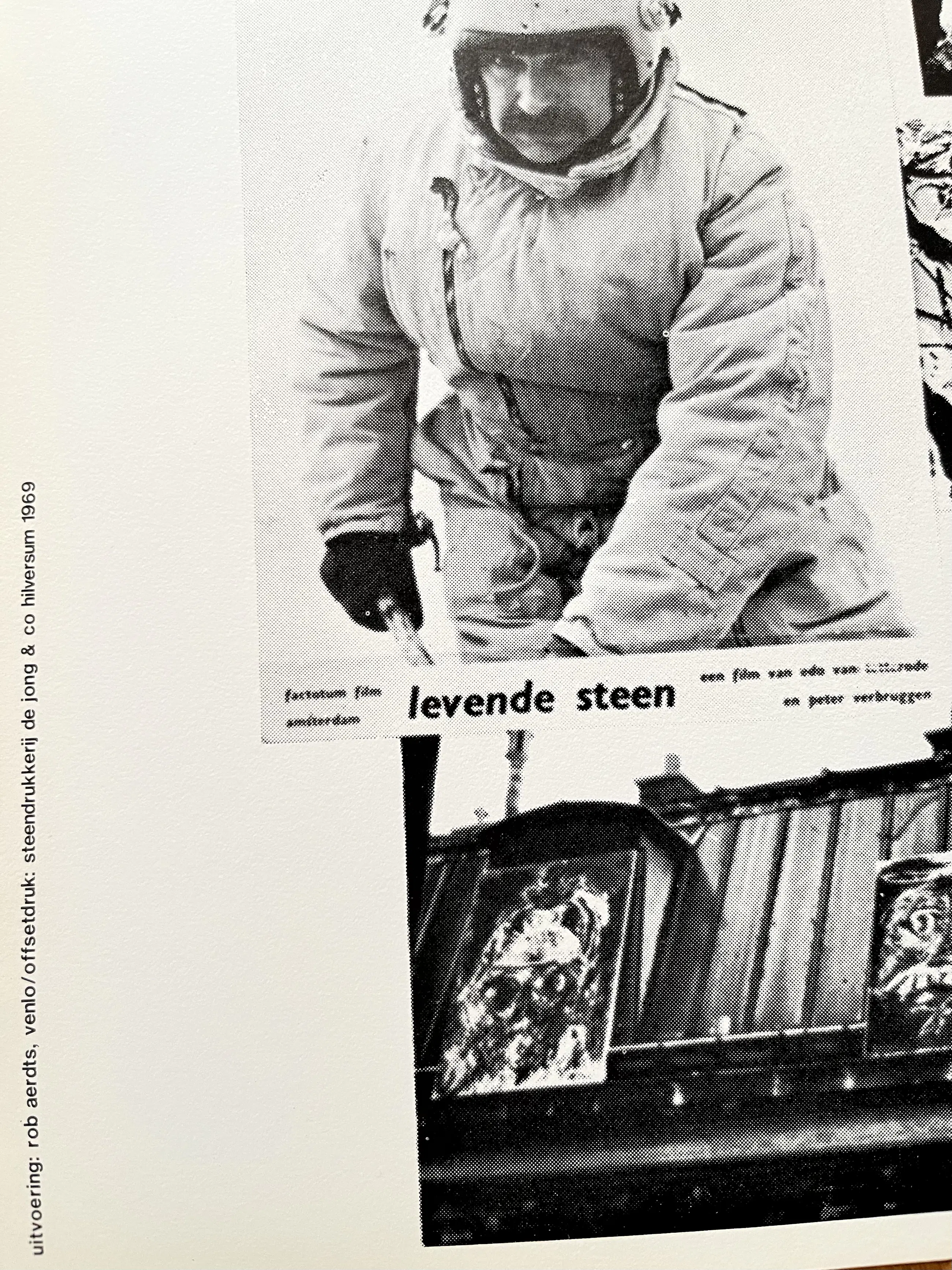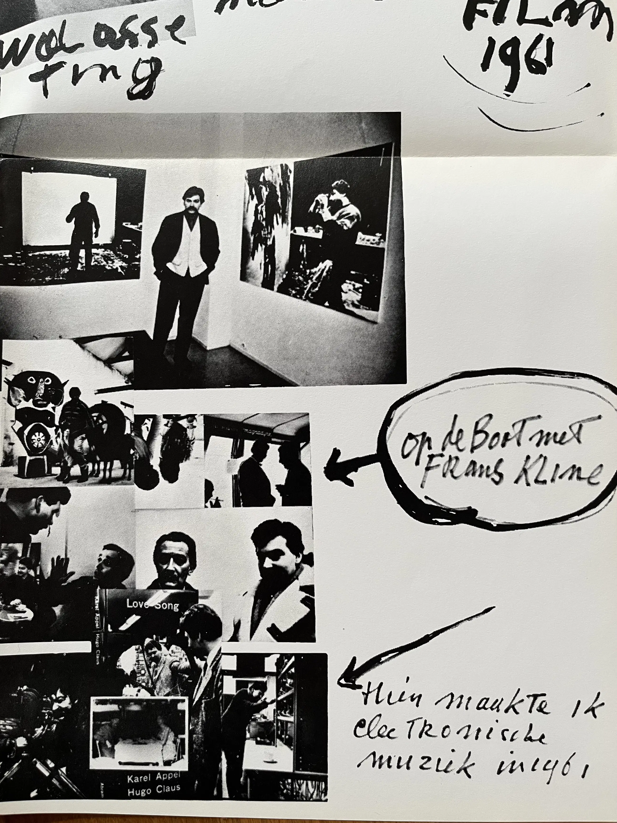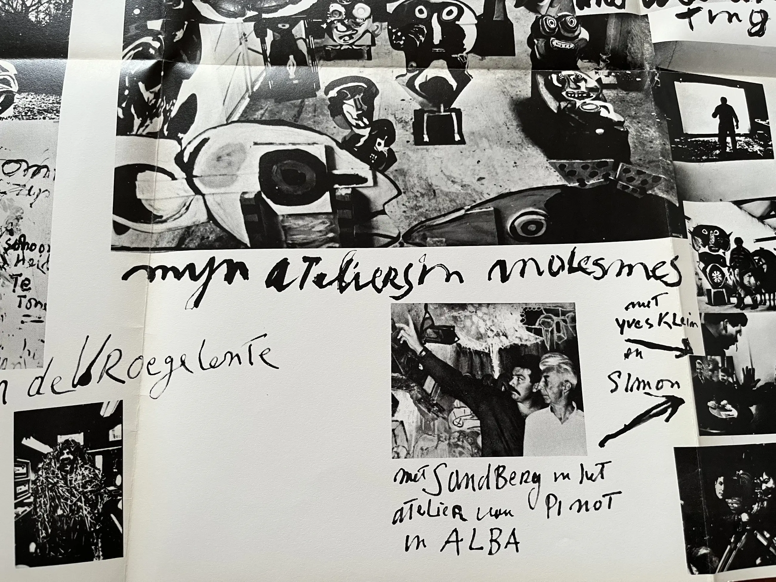 Een grote geprinte fotocollage waarin Karel Appel diverse mensen afbeeld en waarin hij verteld over gebeurtenissen in zijn kunstenaarsbestaan. Het grote blad uit 1969 lag opgevouwen in een doos uit de collectie van mijn overleden vriend. Het blad is, jammer genoeg NIET door Karel Appel gesigneerd, maar door TAJIRI langs een foto, waarop hij is afgebeeld. Over het blad lopen zichtbare rechte vouwen, omdat het blad op die wijze is uitgebracht en bewaard. Afmeting helemaal uitgeklapt 114 x 86 cm. Opgevouwen 29 x 29 cm.