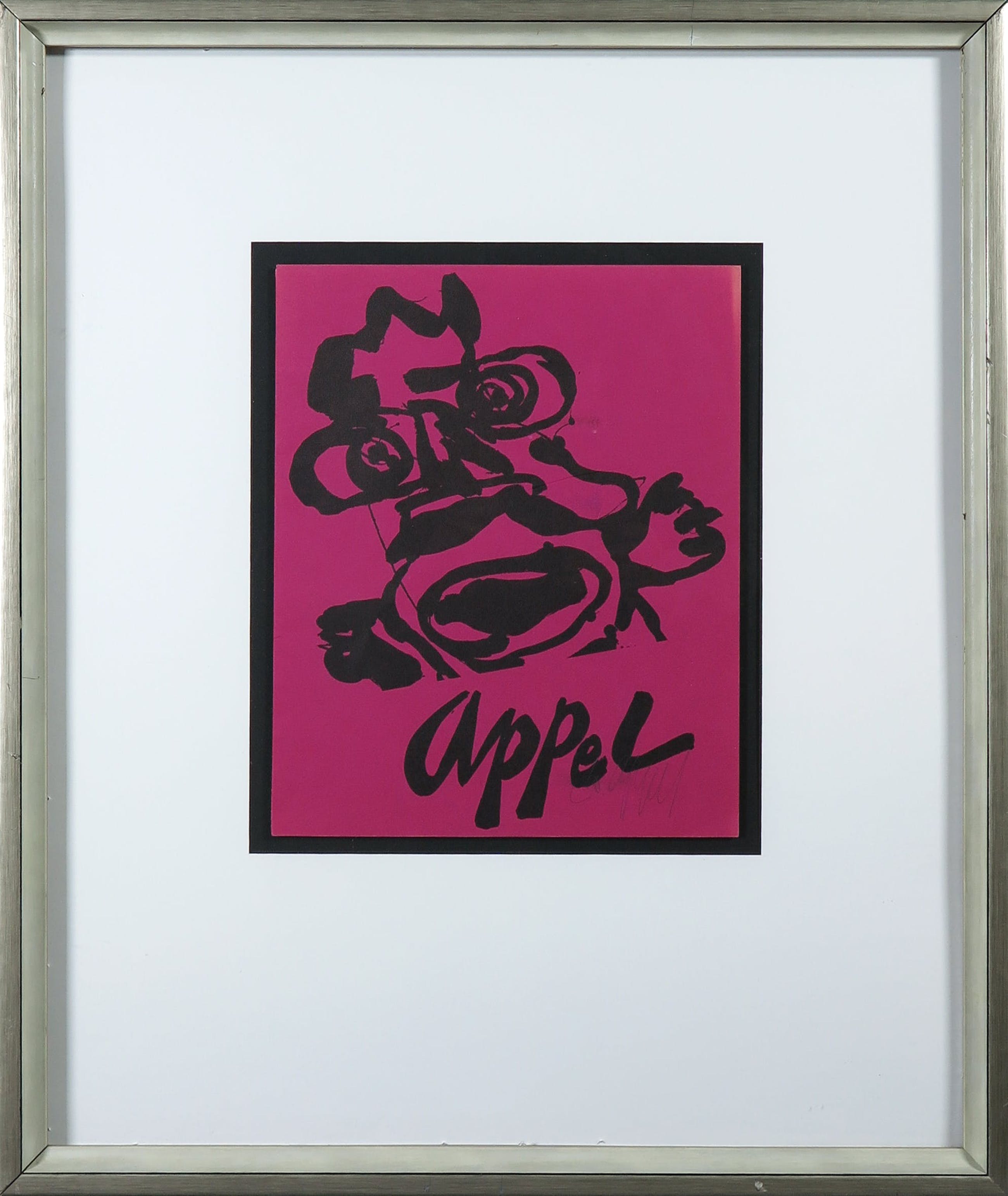 Ingelijste litho van Karel Appel uit de uitgave Ariel 44, uitgebracht door Galerie Ariel te Parijs. De litho is rechtsonder gesigneerd en betreft het middenblad van de uitgave / tentoonstellingscatalogus die in 1977 werd uitgebracht. Dit item is inclusief deze uitgave.