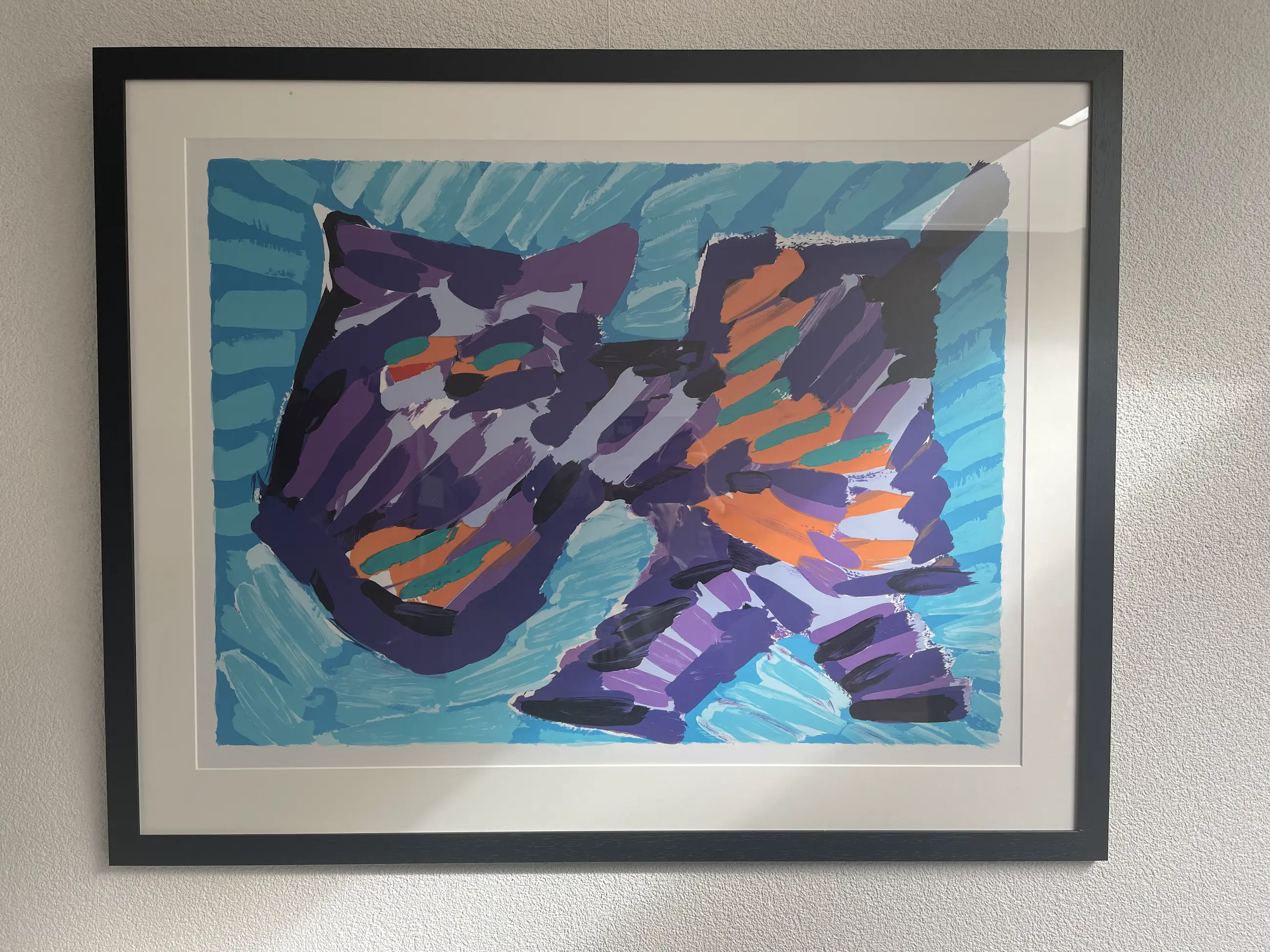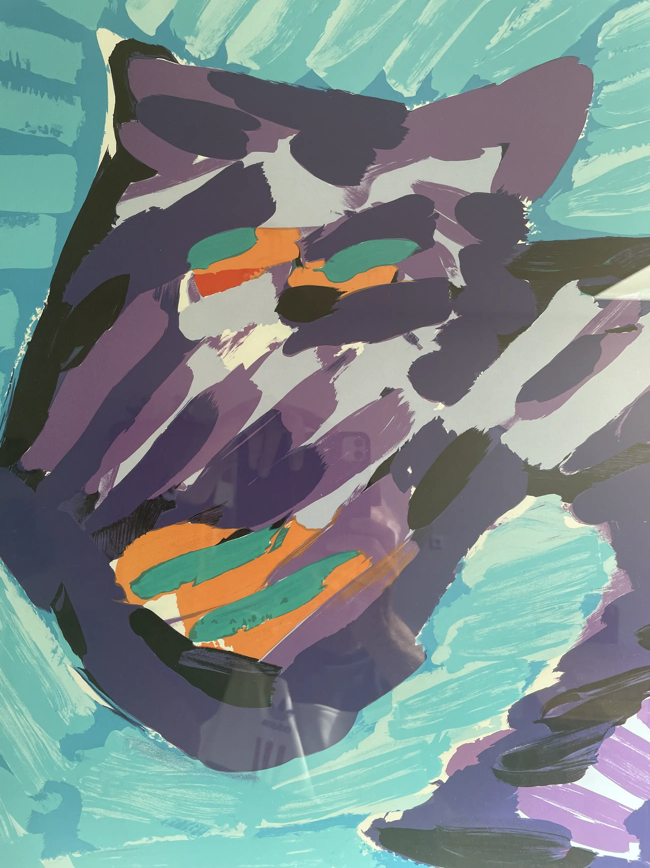 Een zeer bekend werk van Karel Appel " Happy Cat" - Alleen u een keertje geheel nieuw ingelijst door lijstenmakerij Daleman uit Leiden. Een kleurlithografie op papier - Uit (1978)